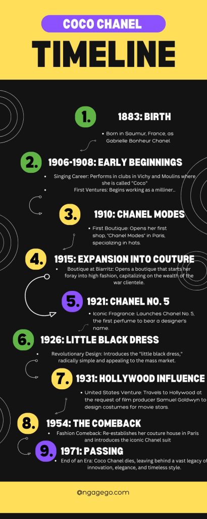 To truly appreciate the profound impact Gabrielle “Coco” Chanel had on fashion and culture, it is essential to explore her journey from humble beginnings to becoming a global icon. This timeline provides a concise overview of Chanel’s pivotal moments and milestones that shaped her career and, subsequently, the world of haute couture. Each entry highlights a step in her evolution from a young singer nicknamed “Coco” to the revolutionary designer who redefined femininity with her timeless designs and innovative ideas. Join us as we trace the footsteps of Coco Chanel through the significant events that not only crafted her legendary status but also transformed the fashion industry forever.