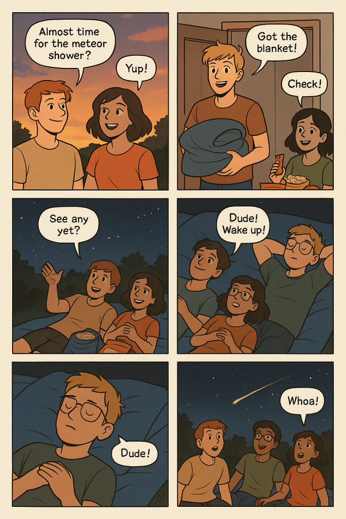 In a world that’s constantly buzzing — emails, deadlines, traffic, doomscrolling — watching meteors reminds you that you’re a tiny dot on a spinning rock in a vast universe… and that’s kinda beautiful.