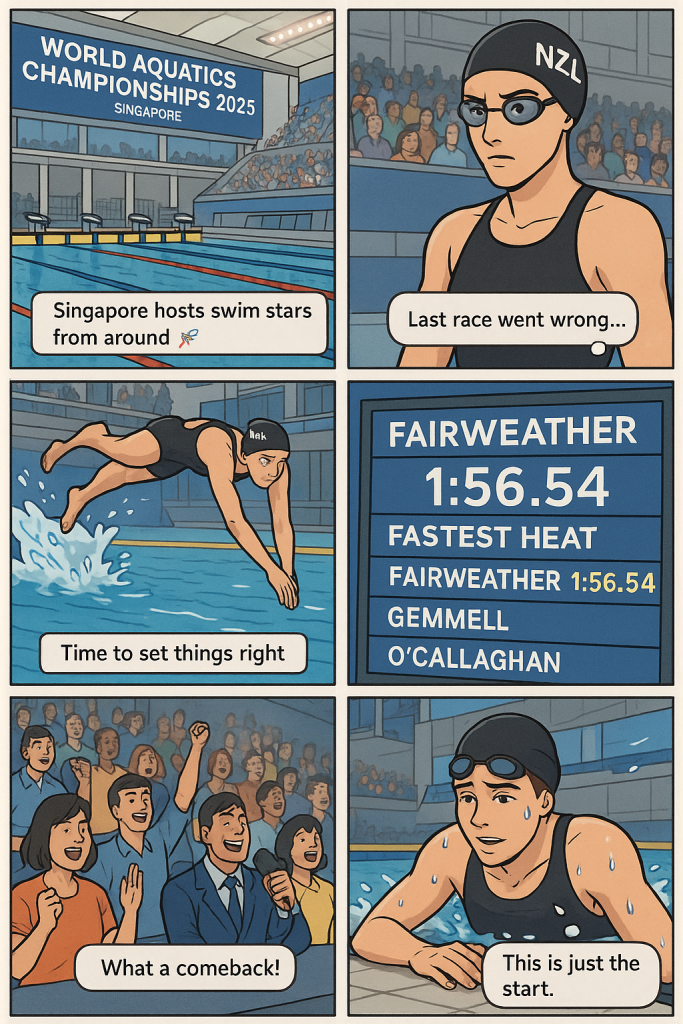 That was the exact moment New Zealand’s Erika Fairweather faced at the 2025 World Aquatics Championships in Singapore. After a heartbreaking disqualification in the women’s 400m freestyle, most swimmers might crumble under pressure. But Erika? She dove back in—and came out with fire.