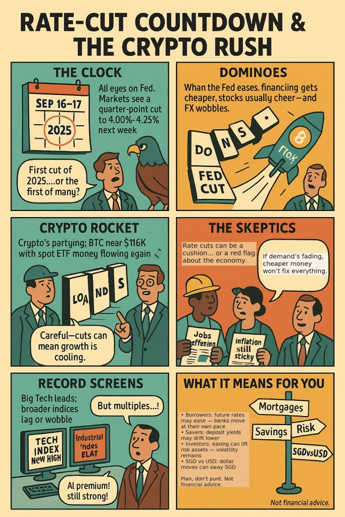 - The event: The U.S. Federal Reserve’s Sept 16–17 policy meeting (press conference right after). Markets lean toward a 0.25% cut, the first since late 2024, even as the Fed navigates unusual political noise.
