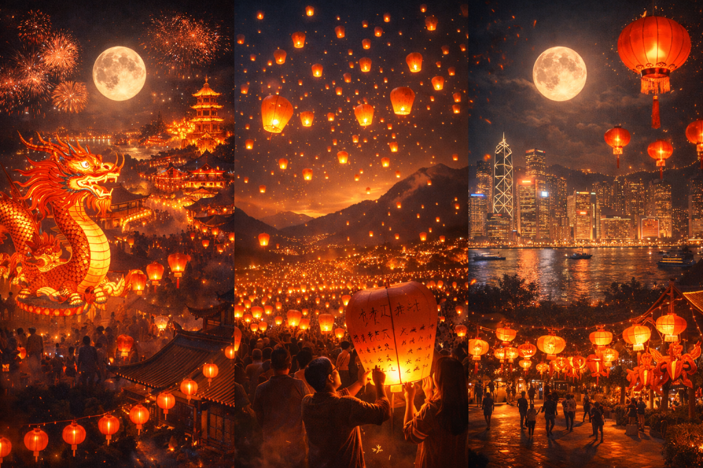 In Hong Kong, lantern carnivals are often staged in parks and along Victoria Harbour. The juxtaposition of traditional lantern art against a neon skyline creates a fusion of heritage and modernity.