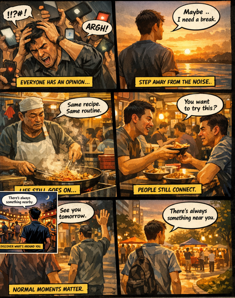 A shared meal, a short conversation, a familiar greeting — these are not solutions to global challenges, but they offer something different.