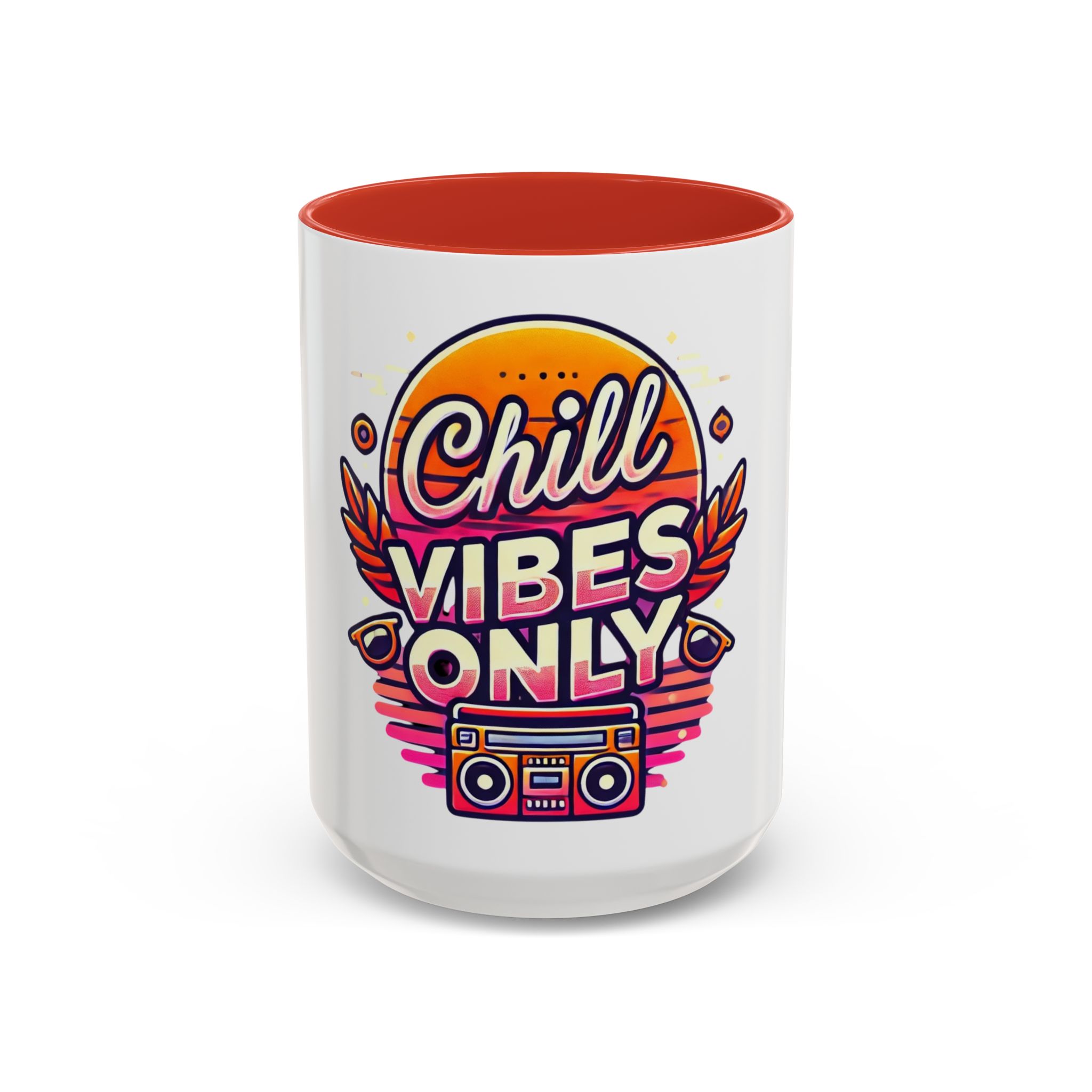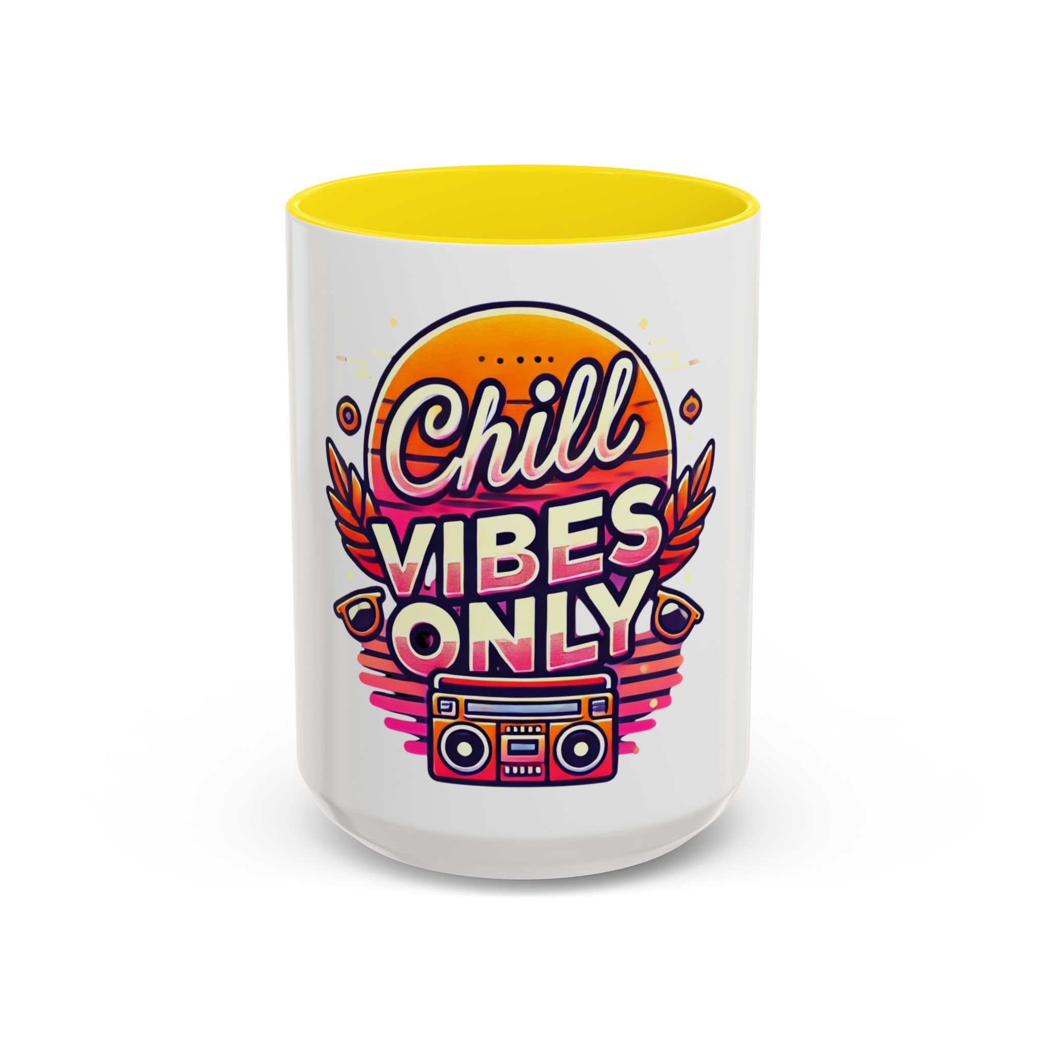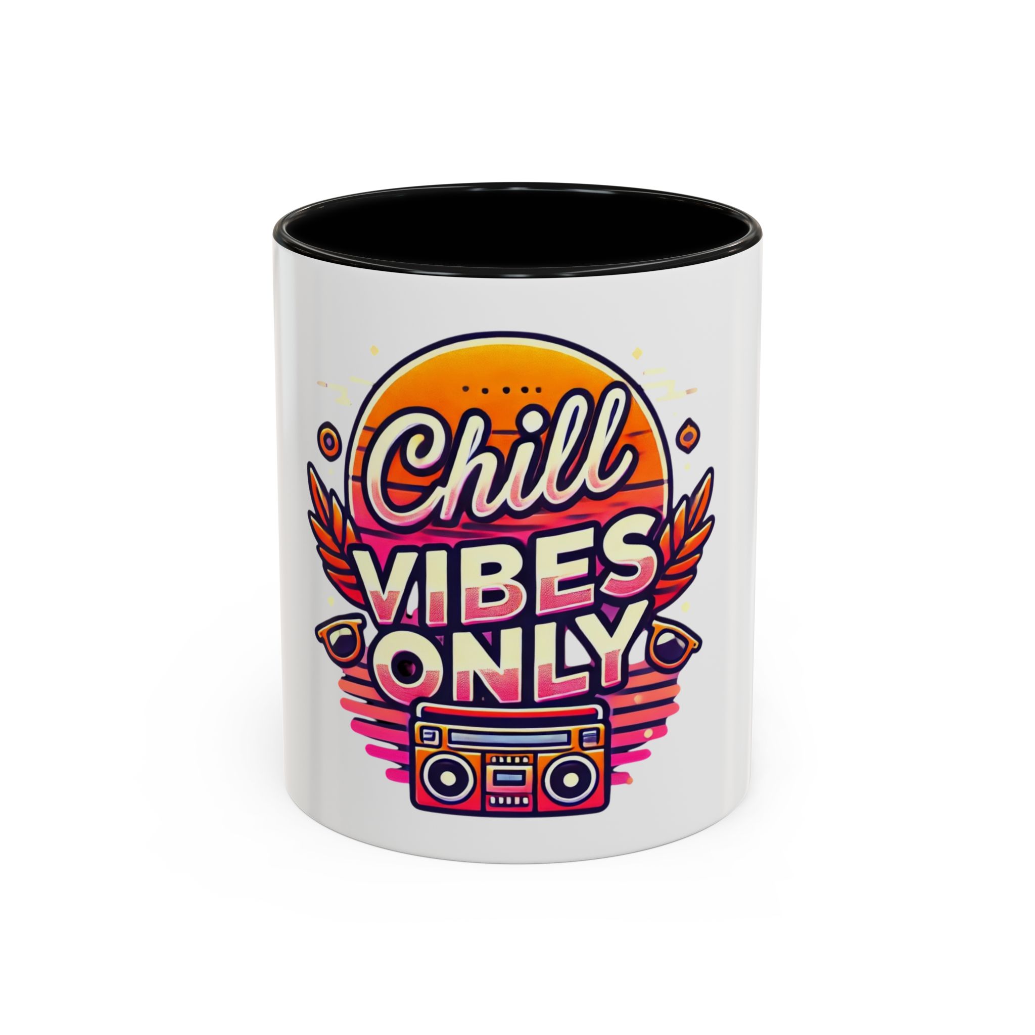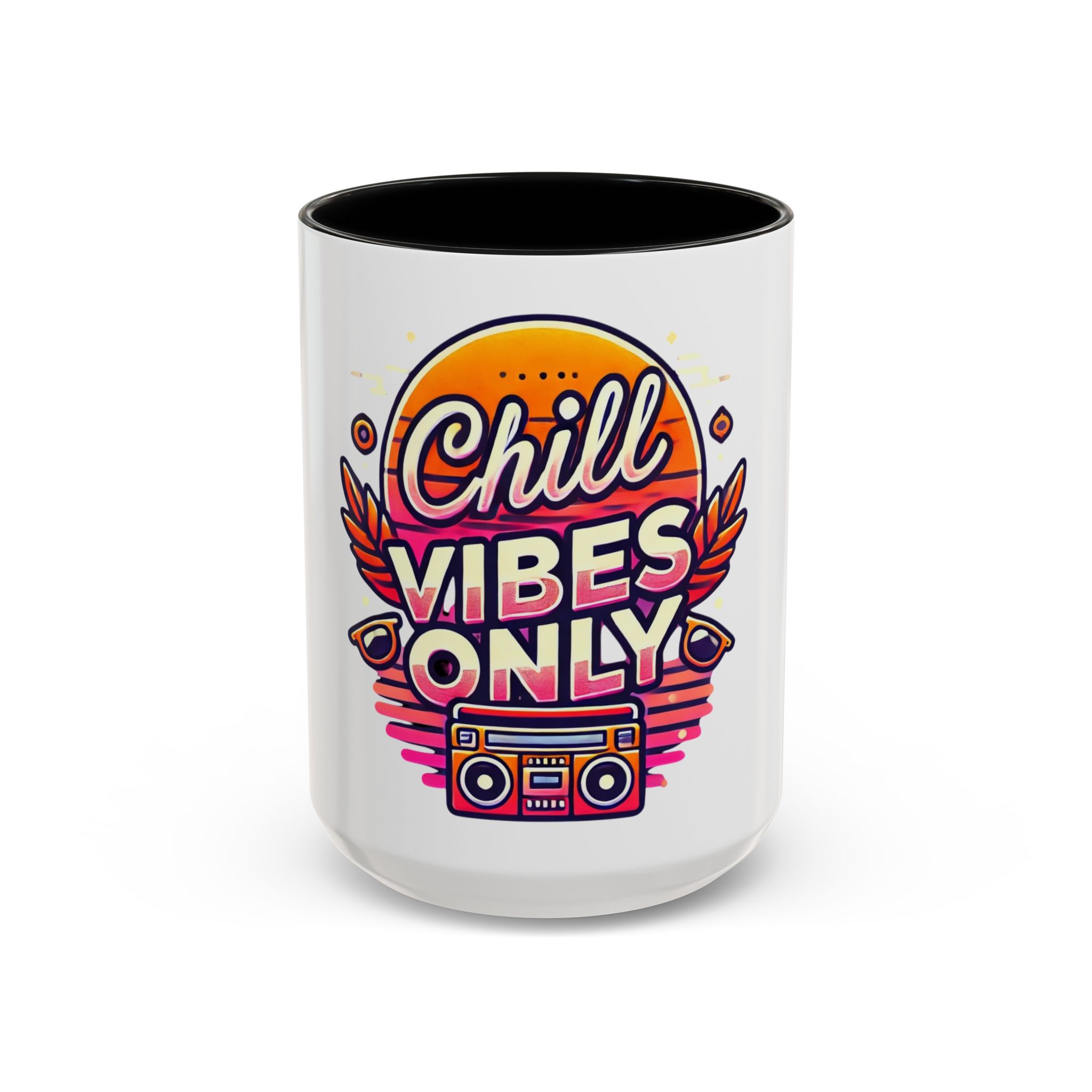 Meet your next favorite morning companion, the “Chill Vibes Only” mug. This mug brings the perfect blend of style and functionality to elevate your coffee or tea ritual. Available in two generous sizes, 11oz (0.33 l) and 15oz (0.44 l), this mug offers ample space for your favorite brew. Made with white ceramic and sporting a sleek glossy finish with eye-catching contrast, this mug is a bliss both to use and to look at. The ergonomic C-shaped handle provides a comfortable grip, while the lead and BPA-free construction guarantee peace of mind with every sip. This mug is a must-have for anyone who appreciates great music and good times. Ideal for gifting or adding a splash of color to your day!