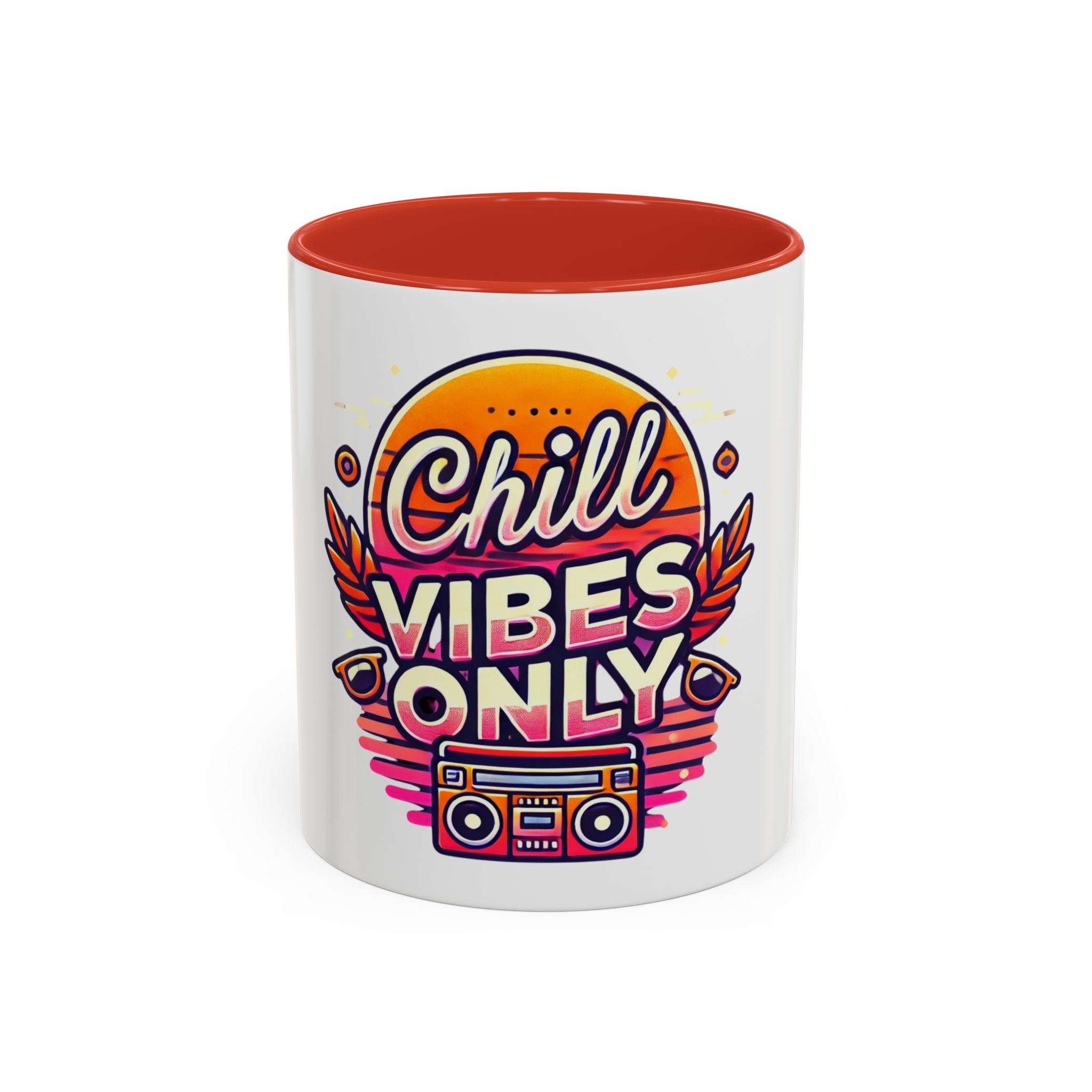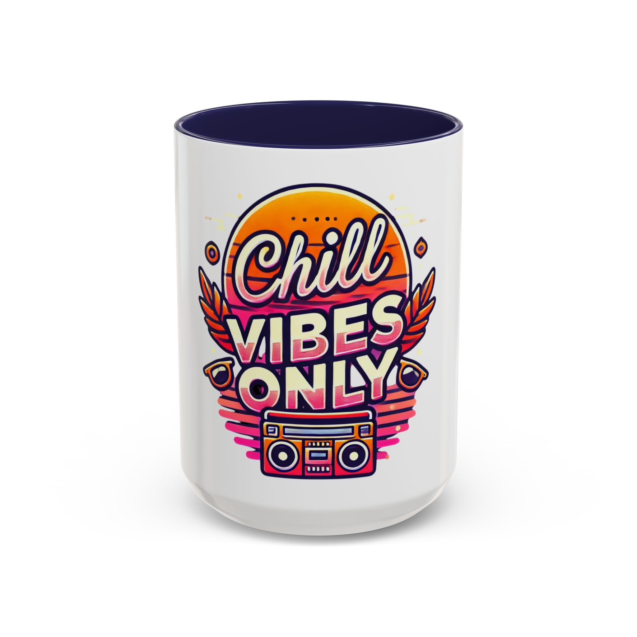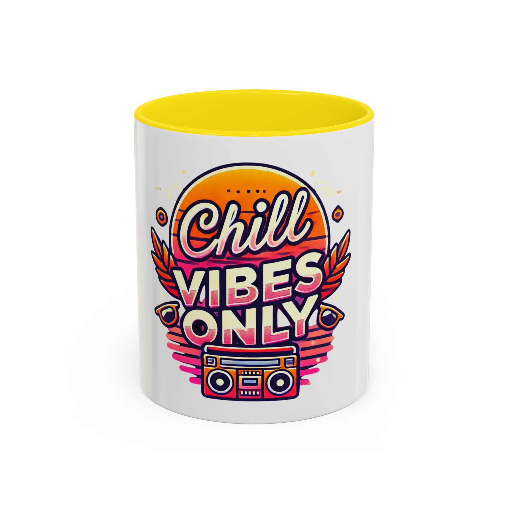 Meet your next favorite morning companion, the “Chill Vibes Only” mug. This mug brings the perfect blend of style and functionality to elevate your coffee or tea ritual. Available in two generous sizes, 11oz (0.33 l) and 15oz (0.44 l), this mug offers ample space for your favorite brew. Made with white ceramic and sporting a sleek glossy finish with eye-catching contrast, this mug is a bliss both to use and to look at. The ergonomic C-shaped handle provides a comfortable grip, while the lead and BPA-free construction guarantee peace of mind with every sip. This mug is a must-have for anyone who appreciates great music and good times. Ideal for gifting or adding a splash of color to your day!