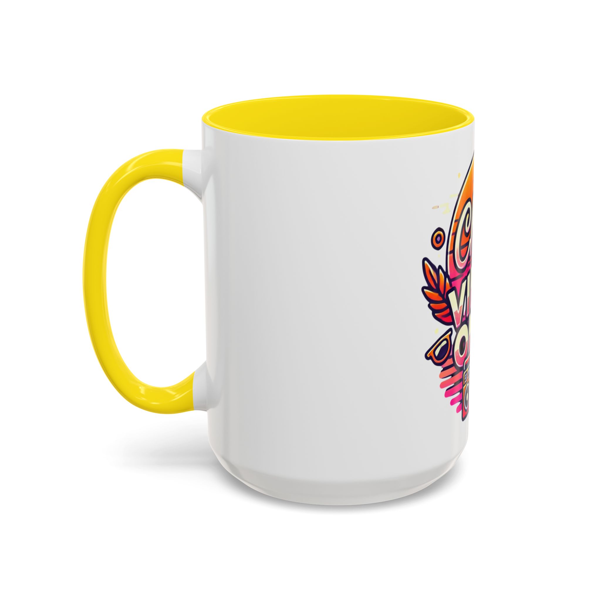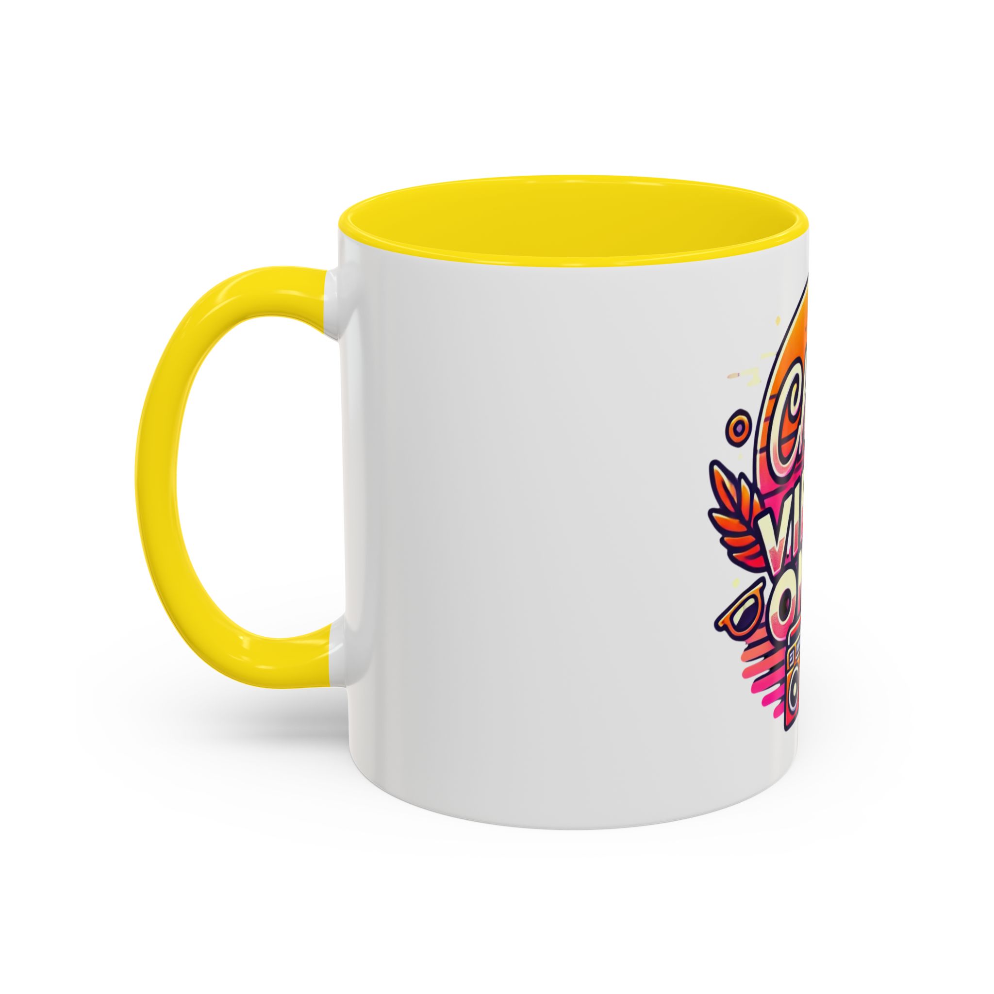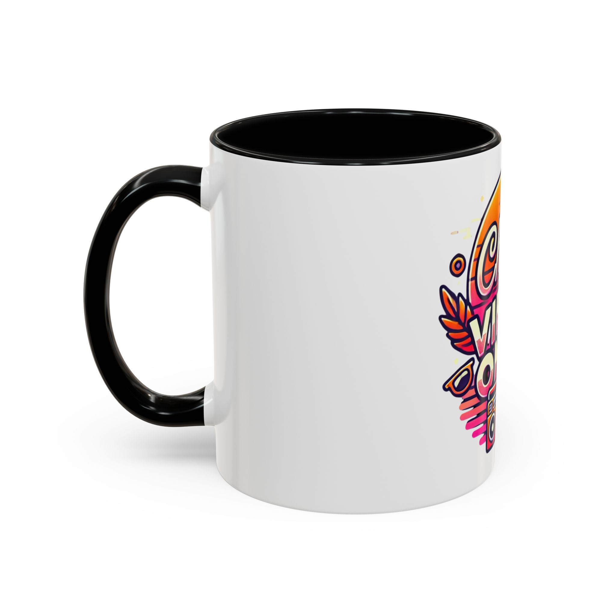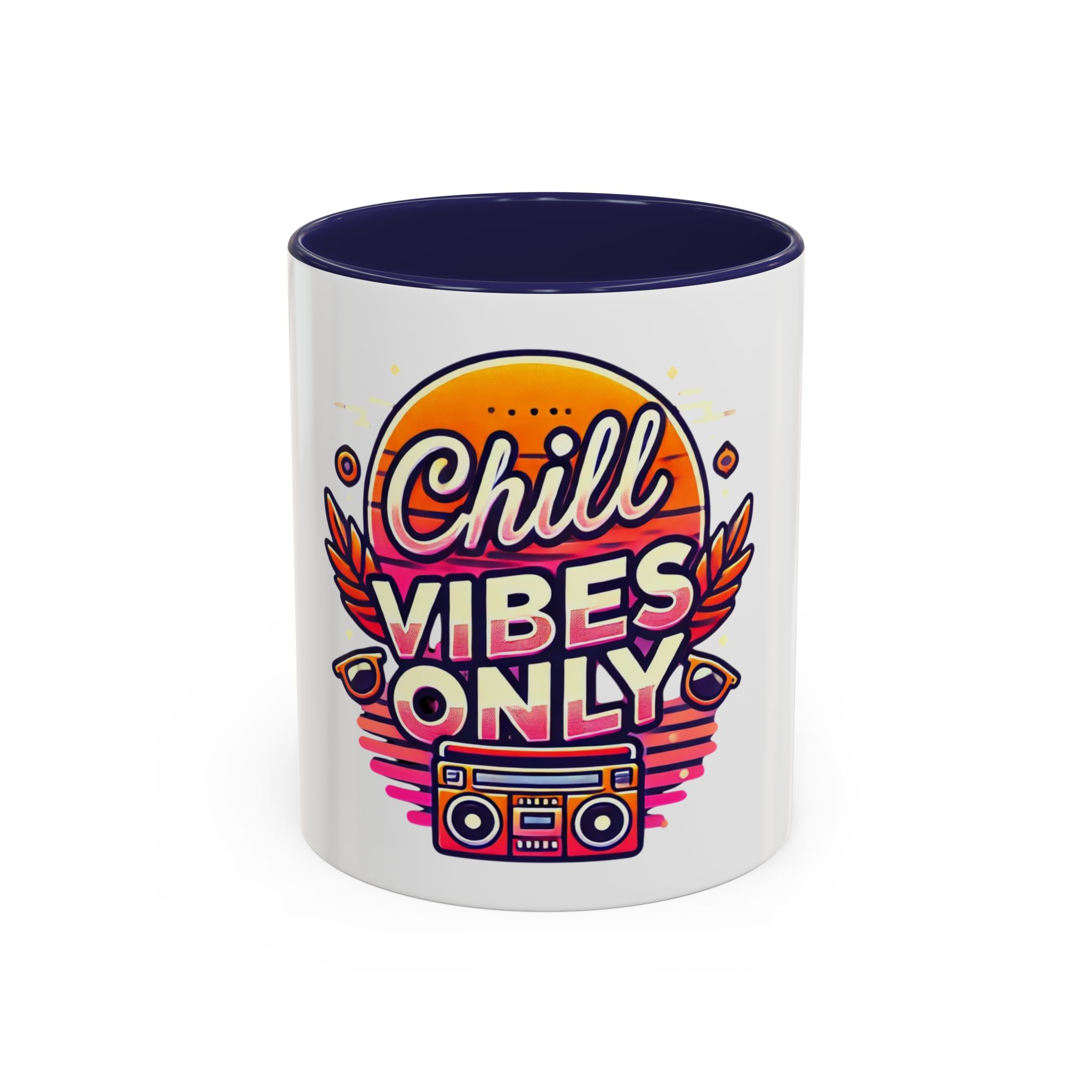 Meet your next favorite morning companion, the “Chill Vibes Only” mug. This mug brings the perfect blend of style and functionality to elevate your coffee or tea ritual. Available in two generous sizes, 11oz (0.33 l) and 15oz (0.44 l), this mug offers ample space for your favorite brew. Made with white ceramic and sporting a sleek glossy finish with eye-catching contrast, this mug is a bliss both to use and to look at. The ergonomic C-shaped handle provides a comfortable grip, while the lead and BPA-free construction guarantee peace of mind with every sip. This mug is a must-have for anyone who appreciates great music and good times. Ideal for gifting or adding a splash of color to your day!