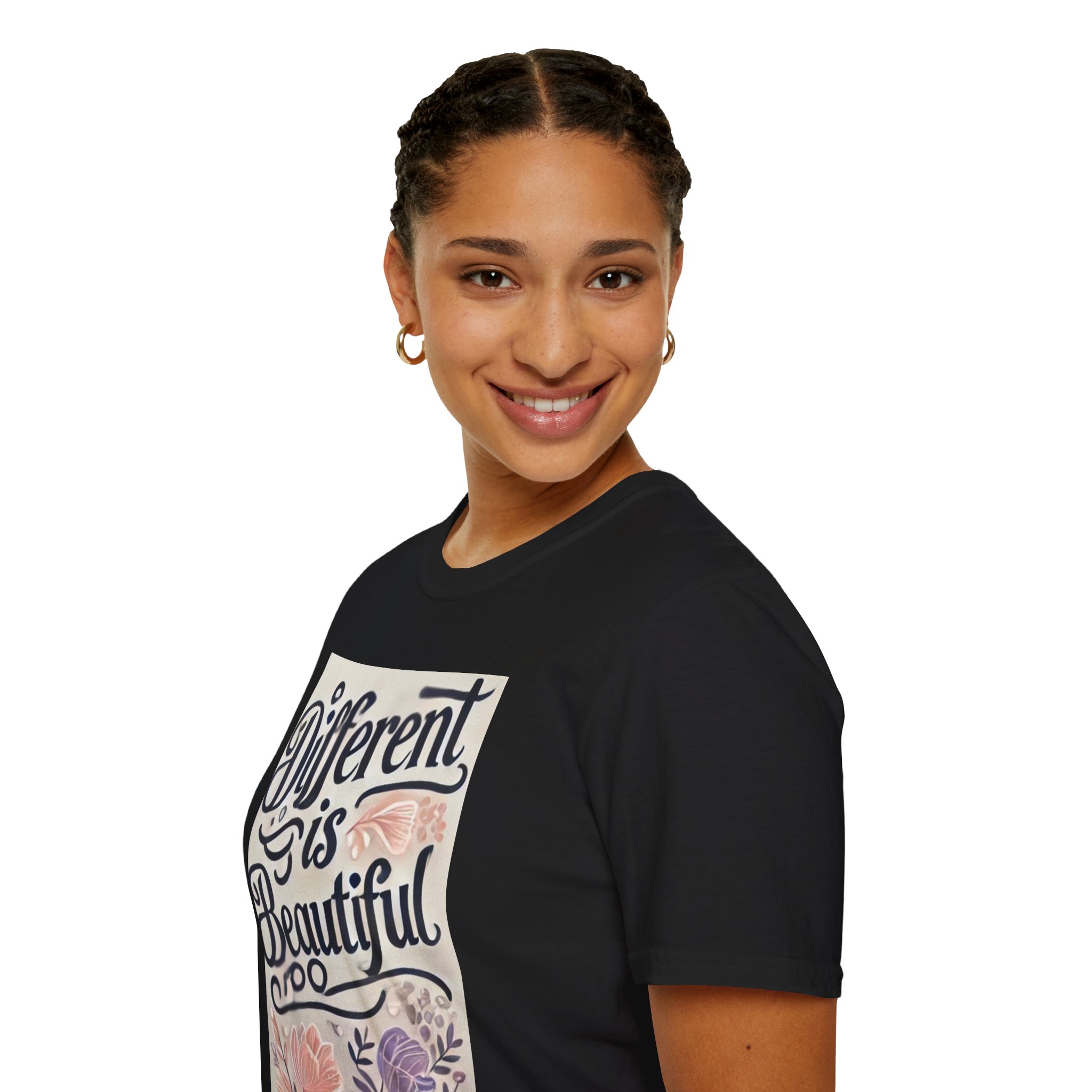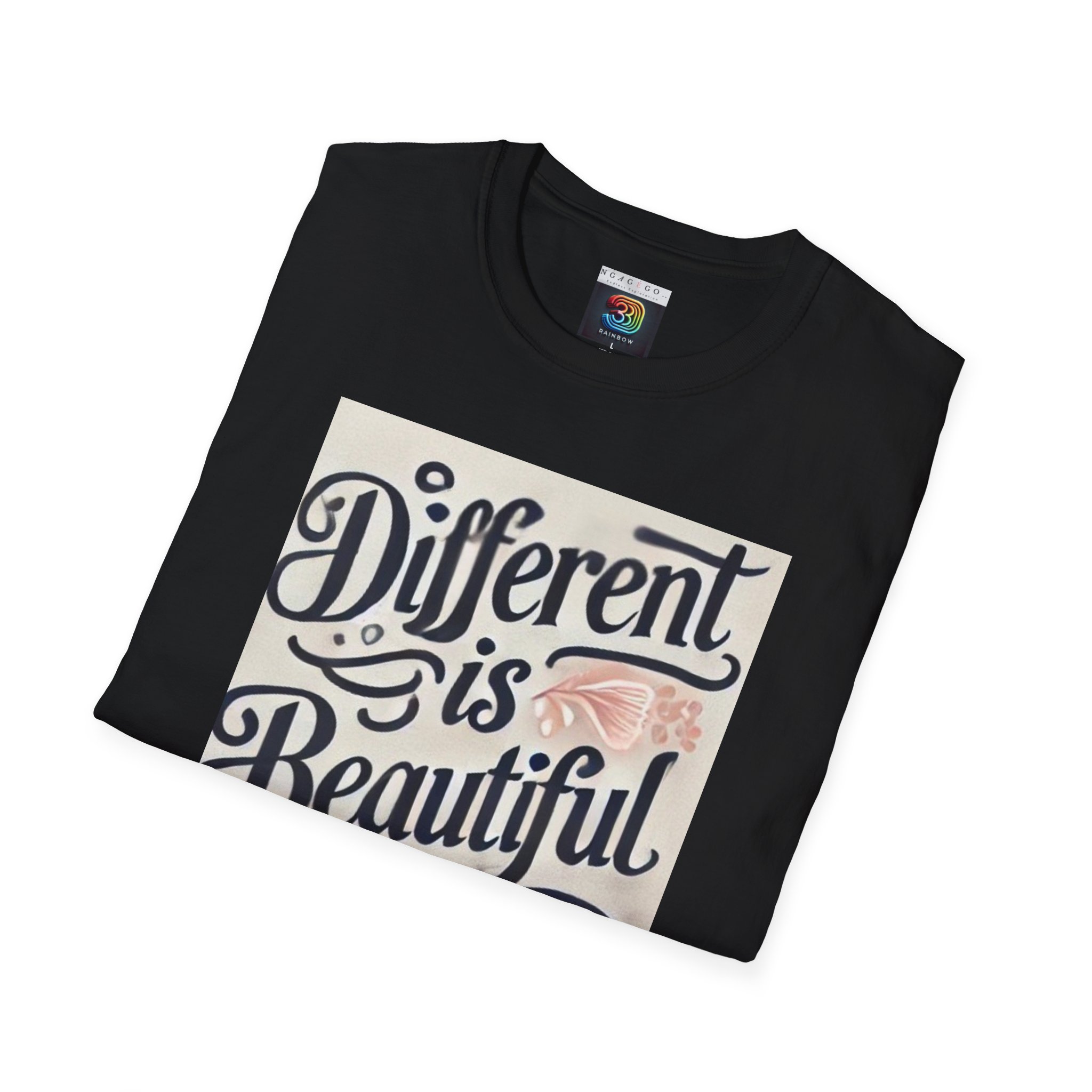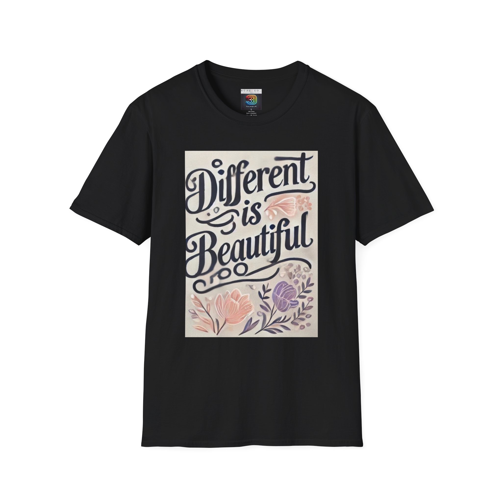 The “Different is beautiful” unisex soft-style t-shirt puts a new spin on casual comfort. Made from very soft materials, this tee is 100% cotton for solid colors. Heather colors and sports grey include polyester. The shoulders have twill tape for improved durability. There are no side seams. The collar is made with ribbed knitting to prevent curling damage.