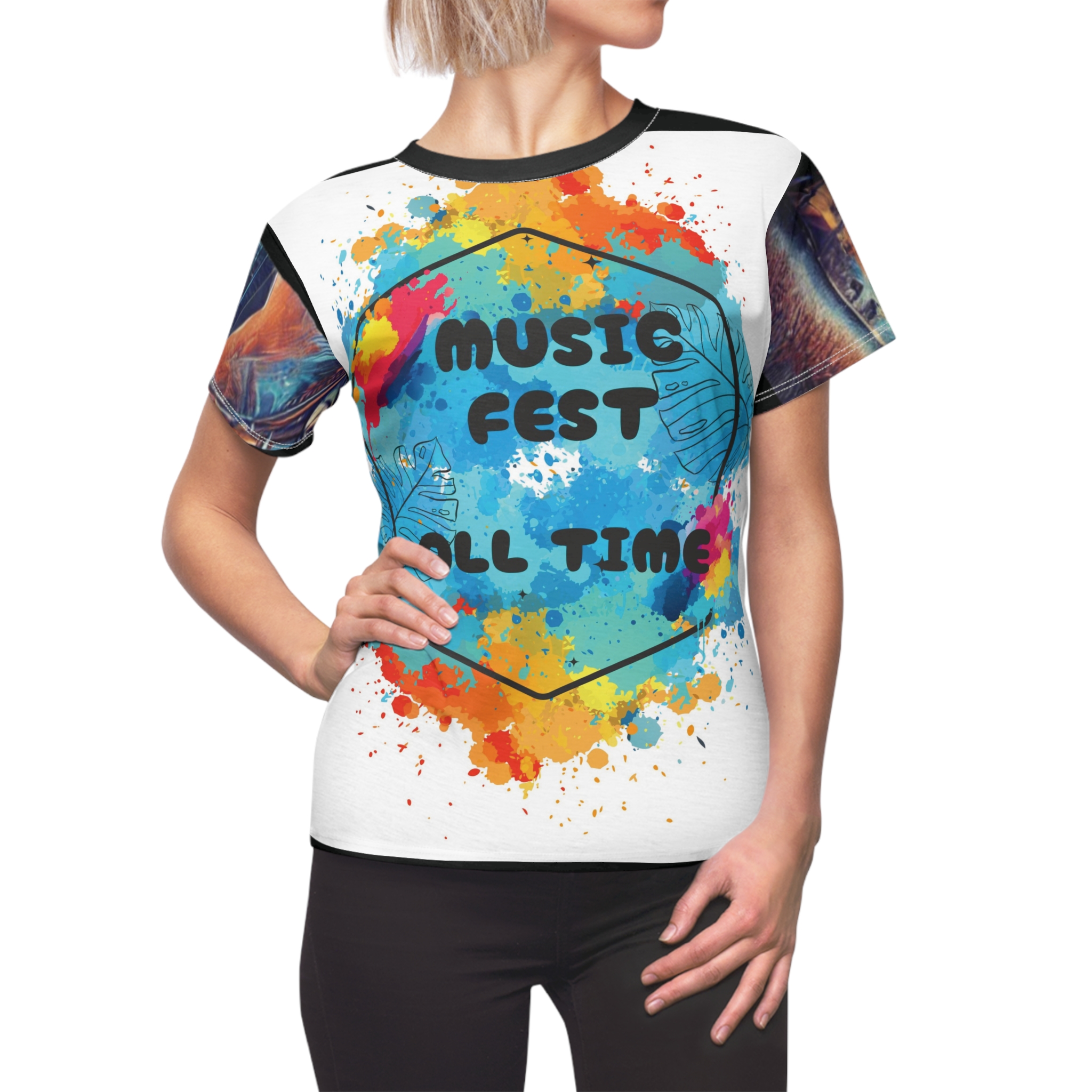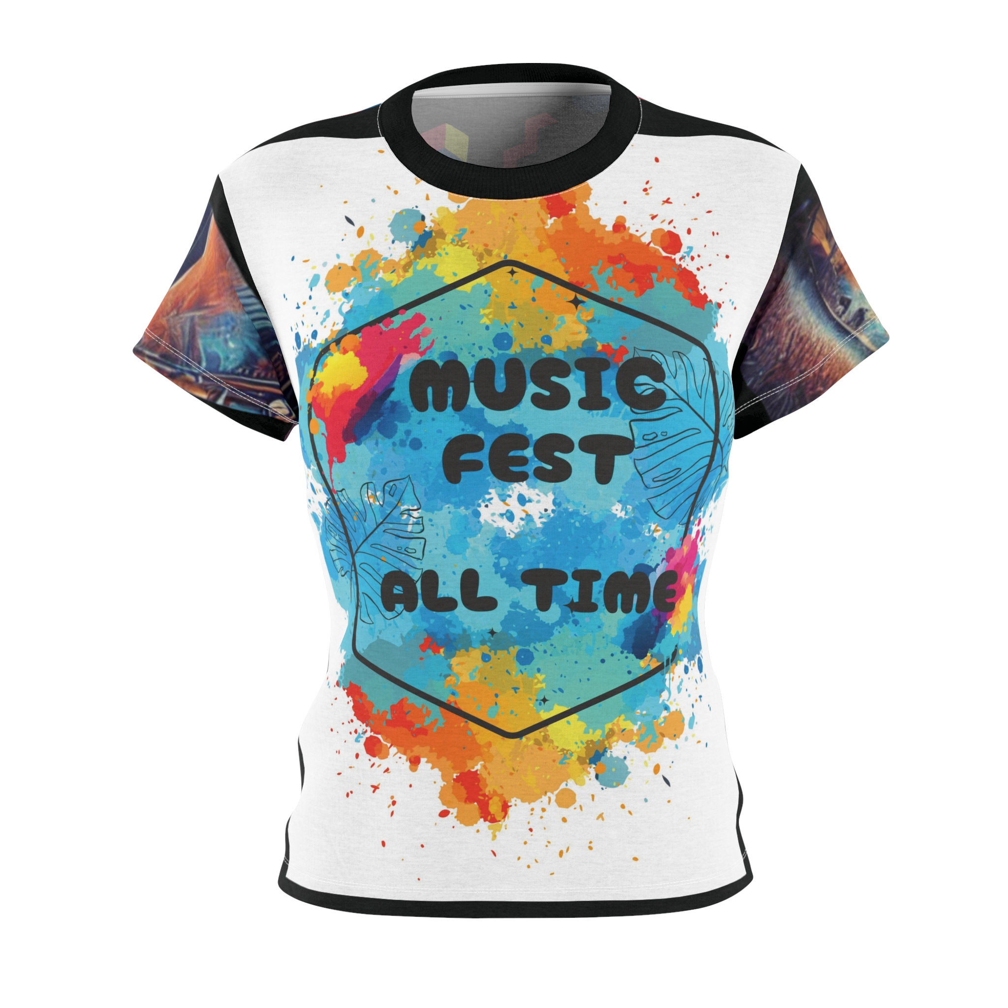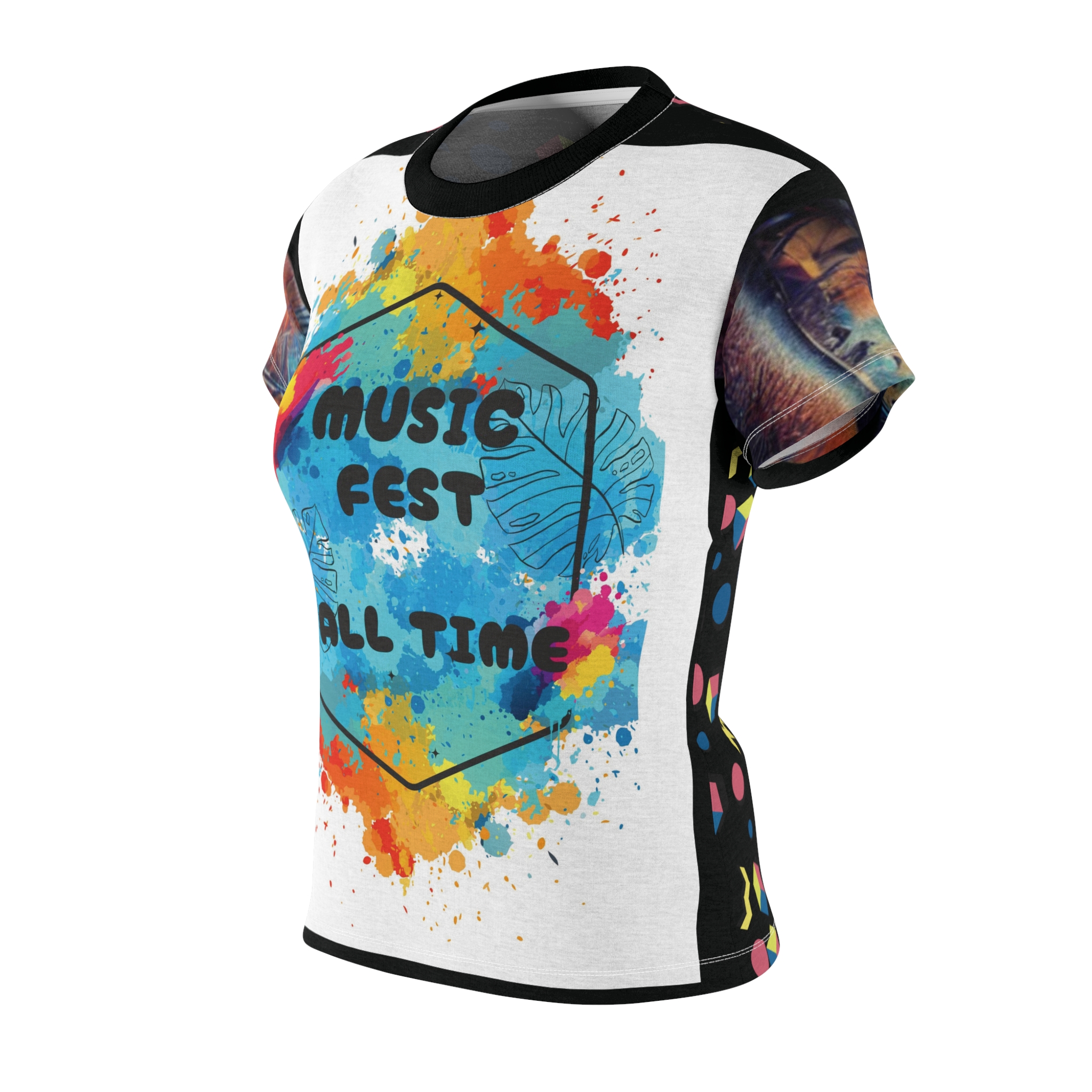 A women’s cut & sew tee with a special design for music lovers and concert outgoing lovers. This tee features lots of patterns and is perfect for a concert vibe. Great for casual outings and music events.