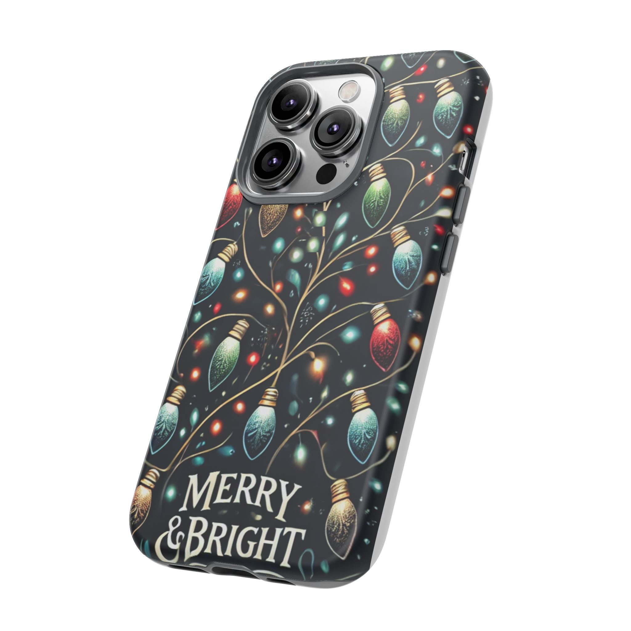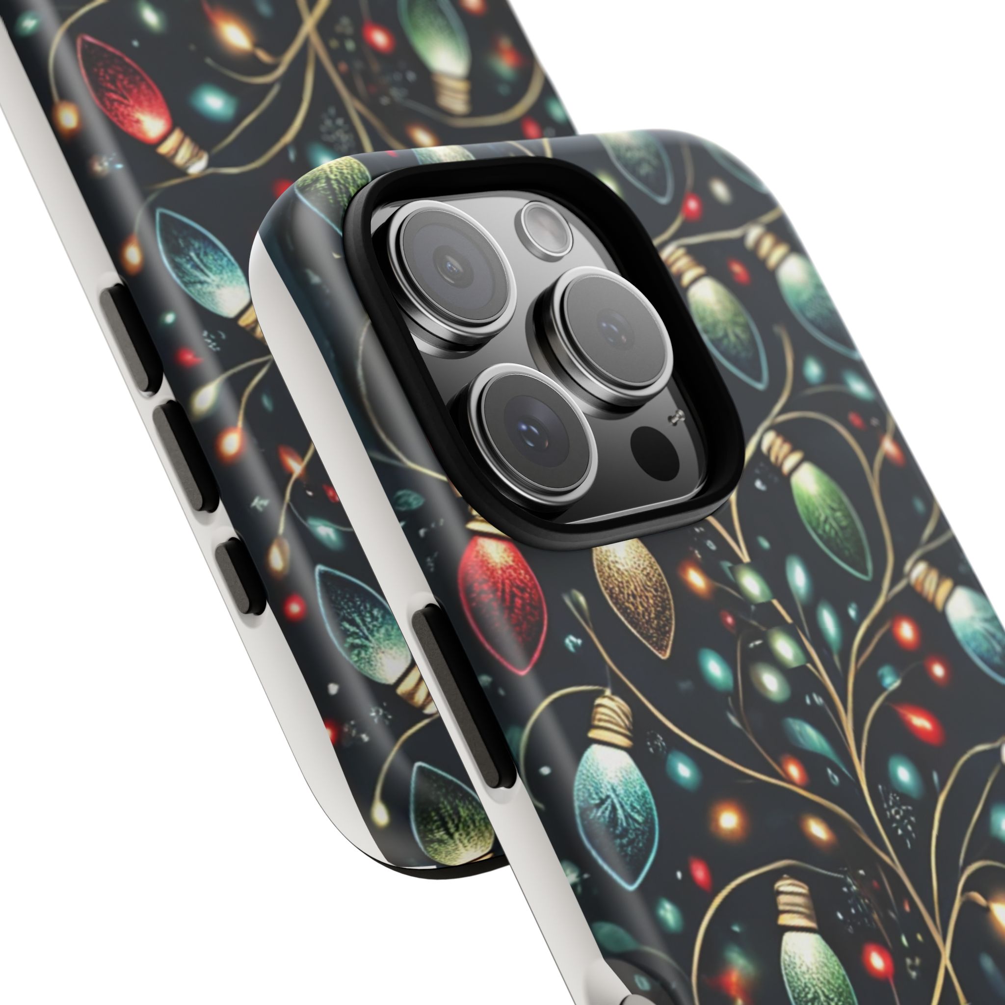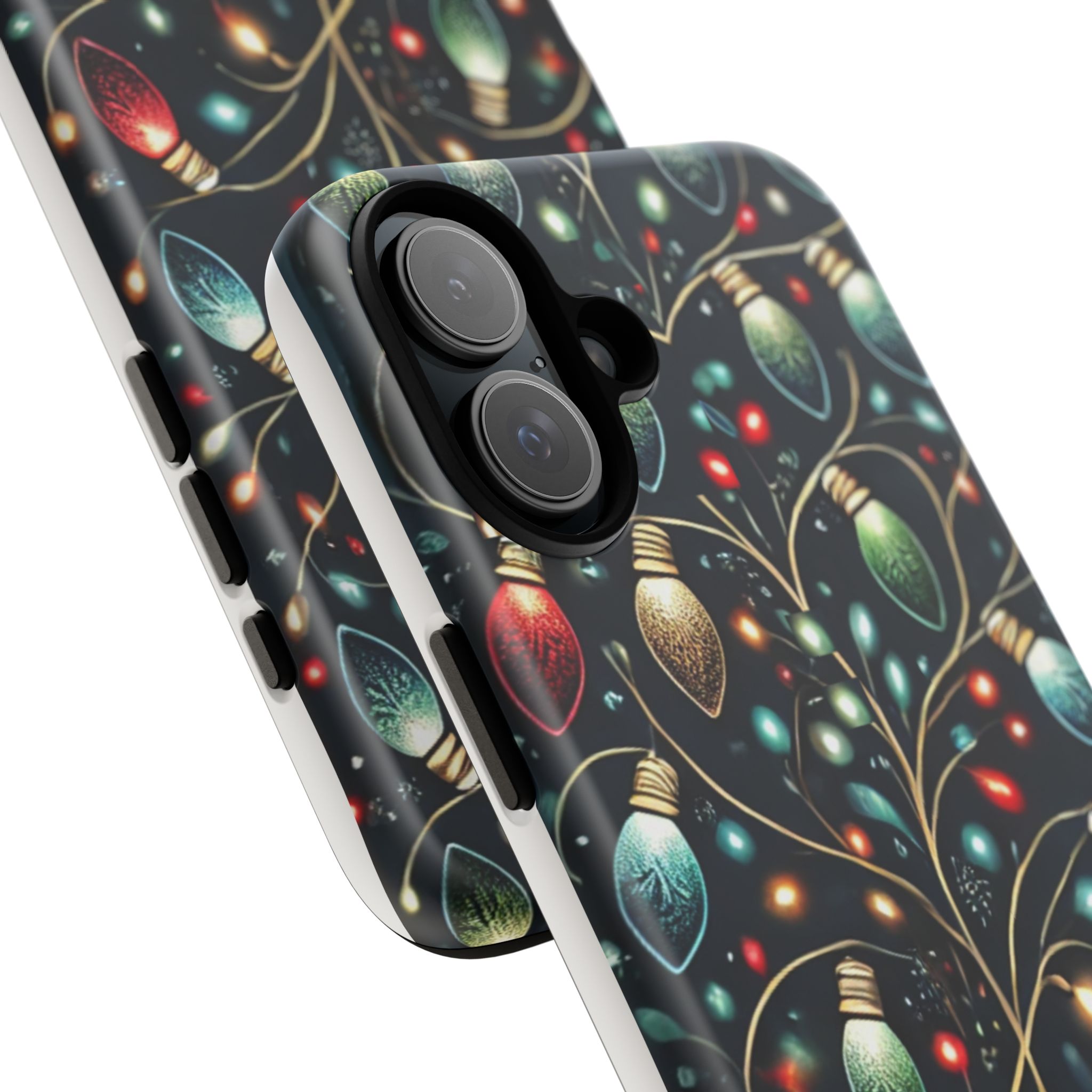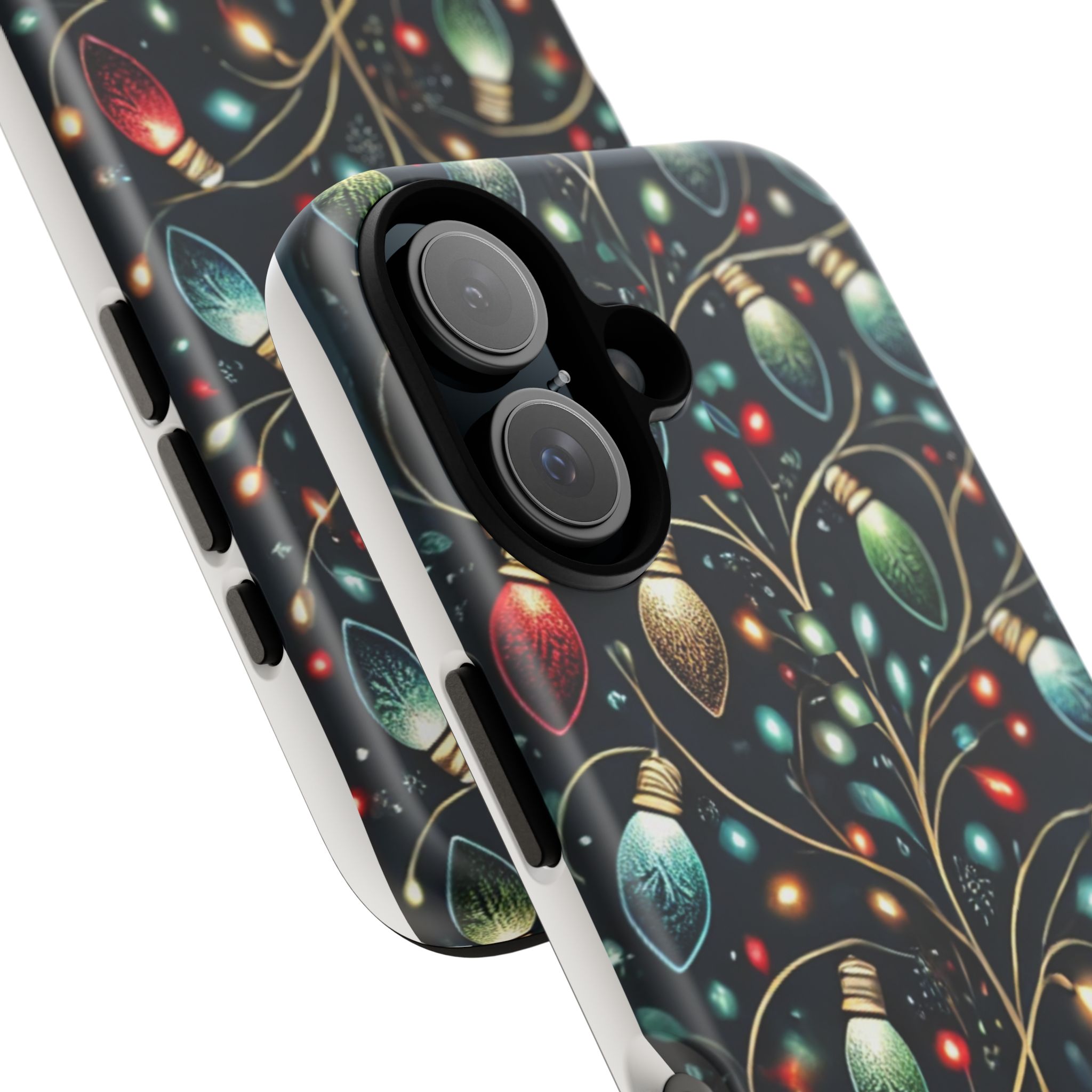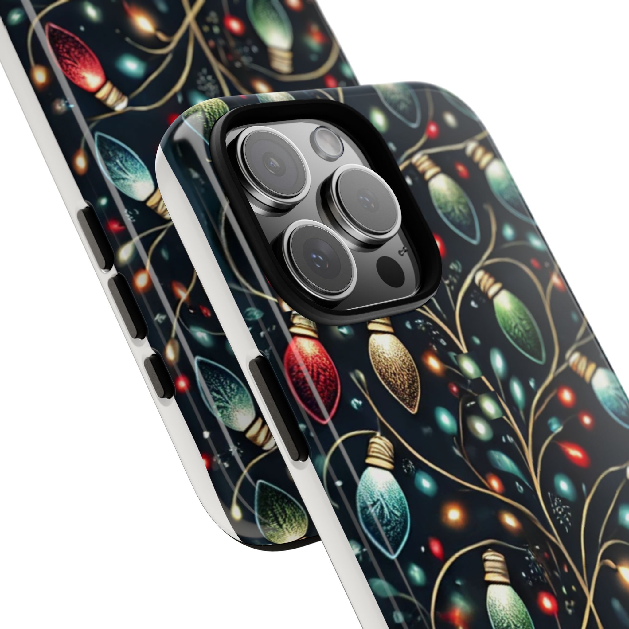 Vibrant Festive Lights Phone Cover featuring a colorful Christmas lights pattern on a dark background with a twinkling effect, adding a touch of holiday sparkle. Made of durable and impact-resistant materials, this phone case provides excellent protection against drops and tears. Ideal for adults looking to add a festive touch to their phone during the holiday season.