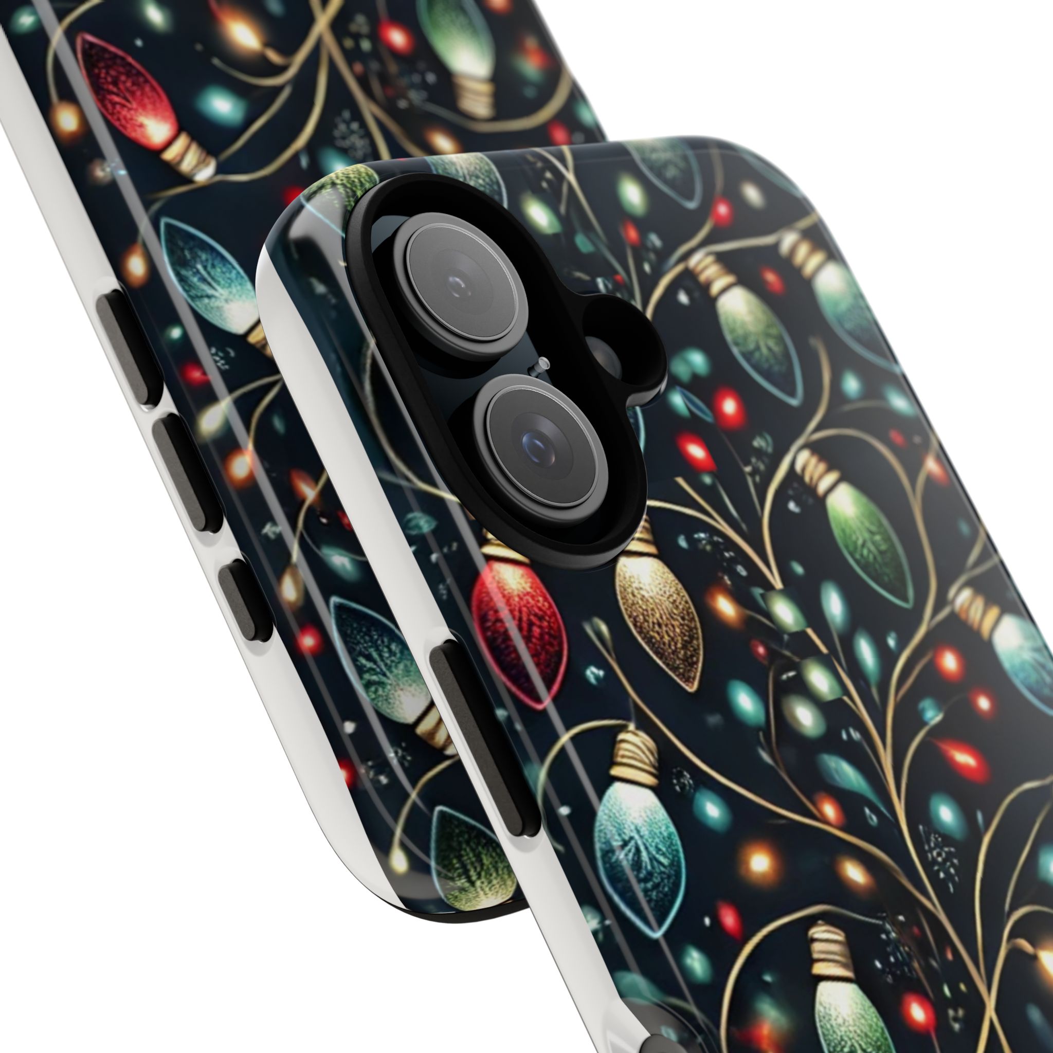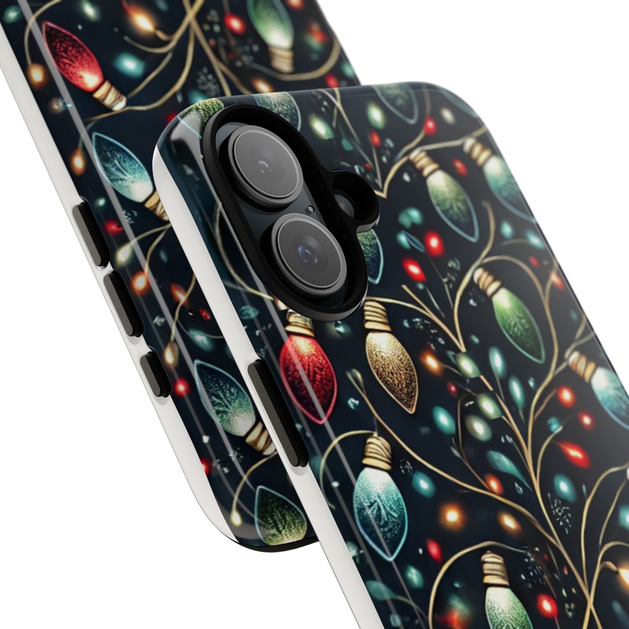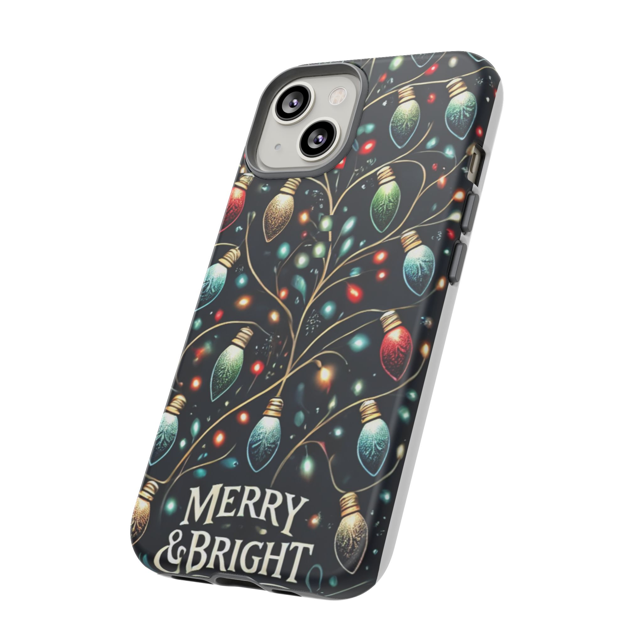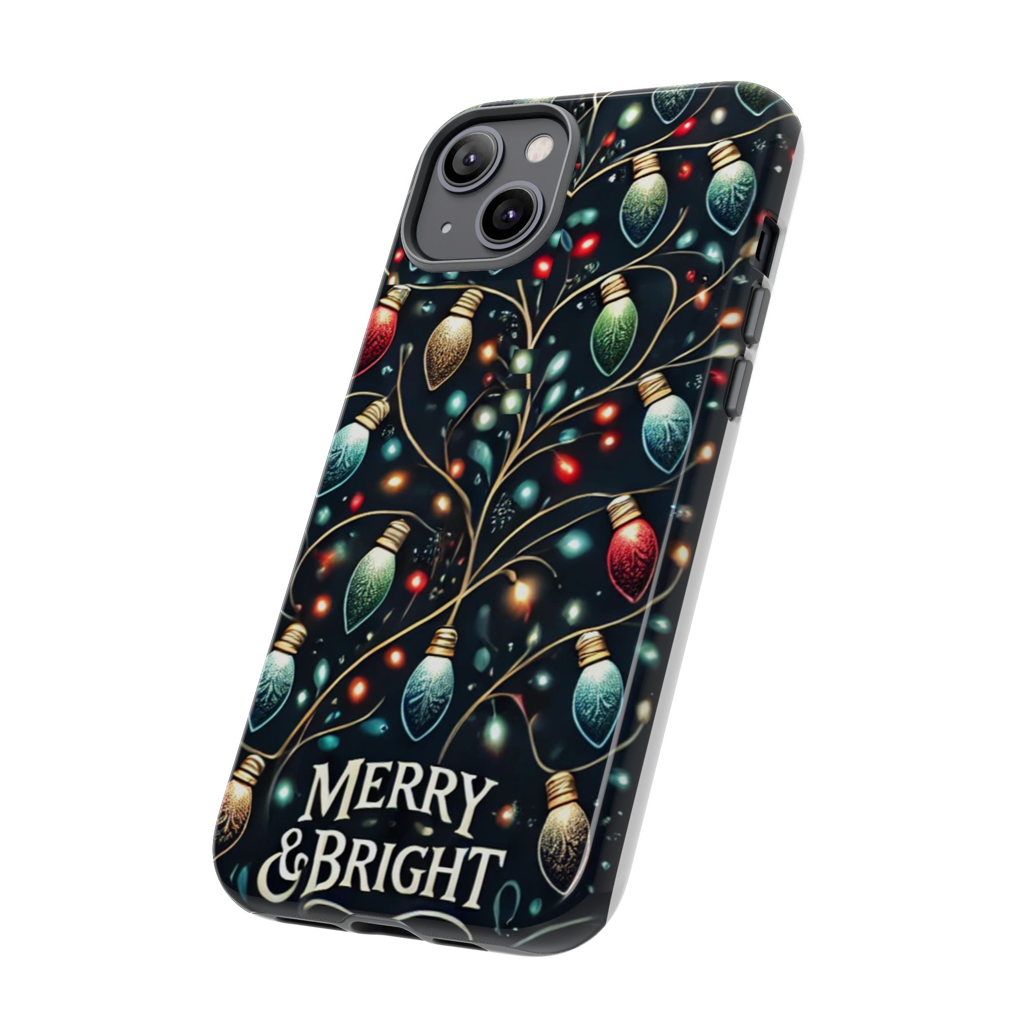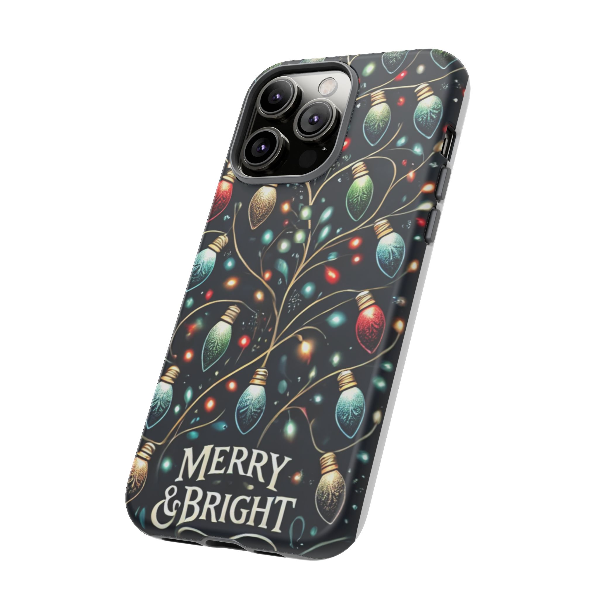 Vibrant Festive Lights Phone Cover featuring a colorful Christmas lights pattern on a dark background with a twinkling effect, adding a touch of holiday sparkle. Made of durable and impact-resistant materials, this phone case provides excellent protection against drops and tears. Ideal for adults looking to add a festive touch to their phone during the holiday season.