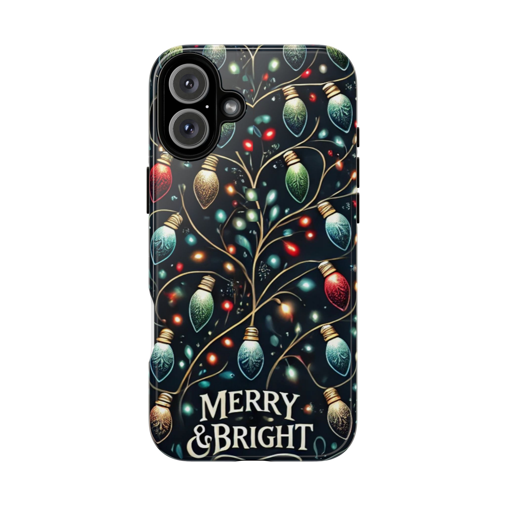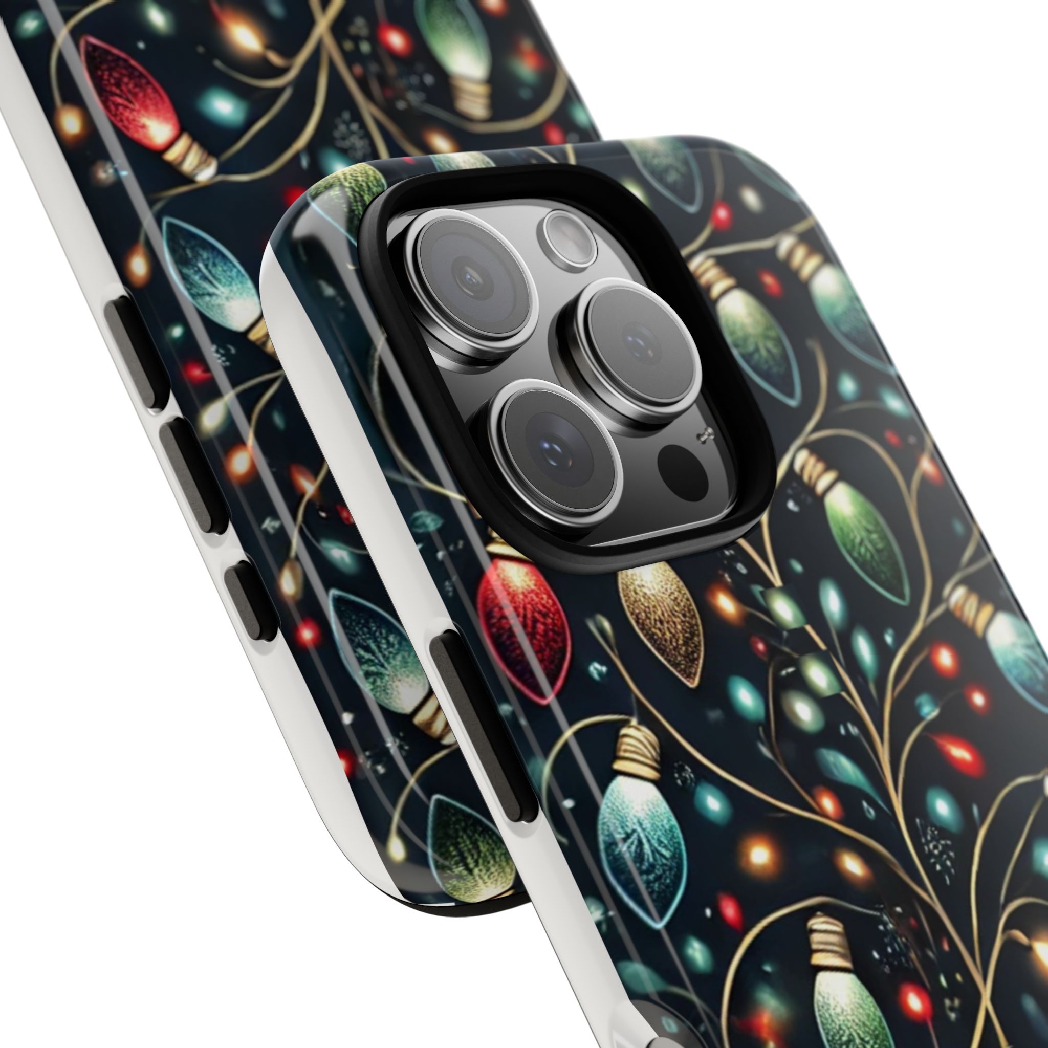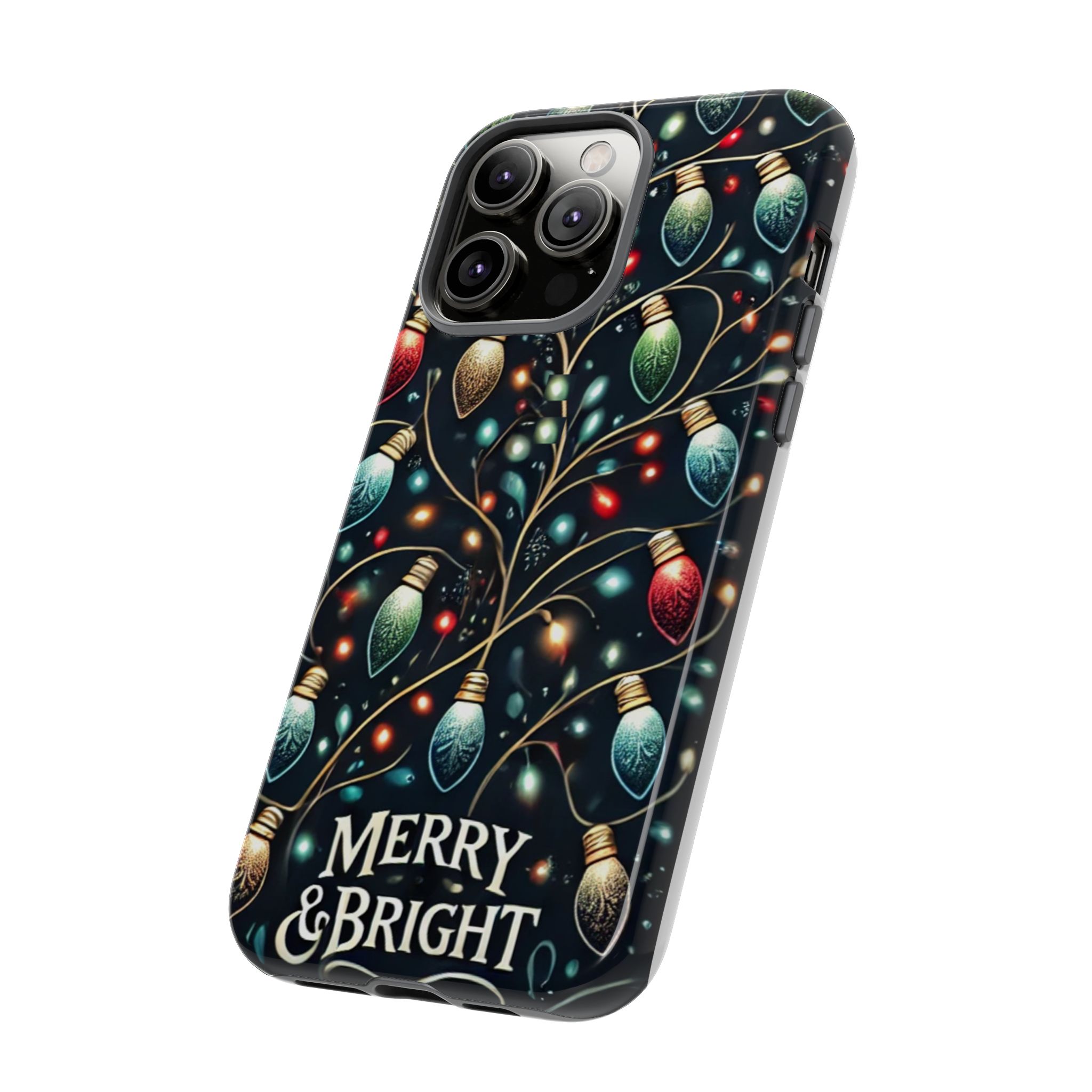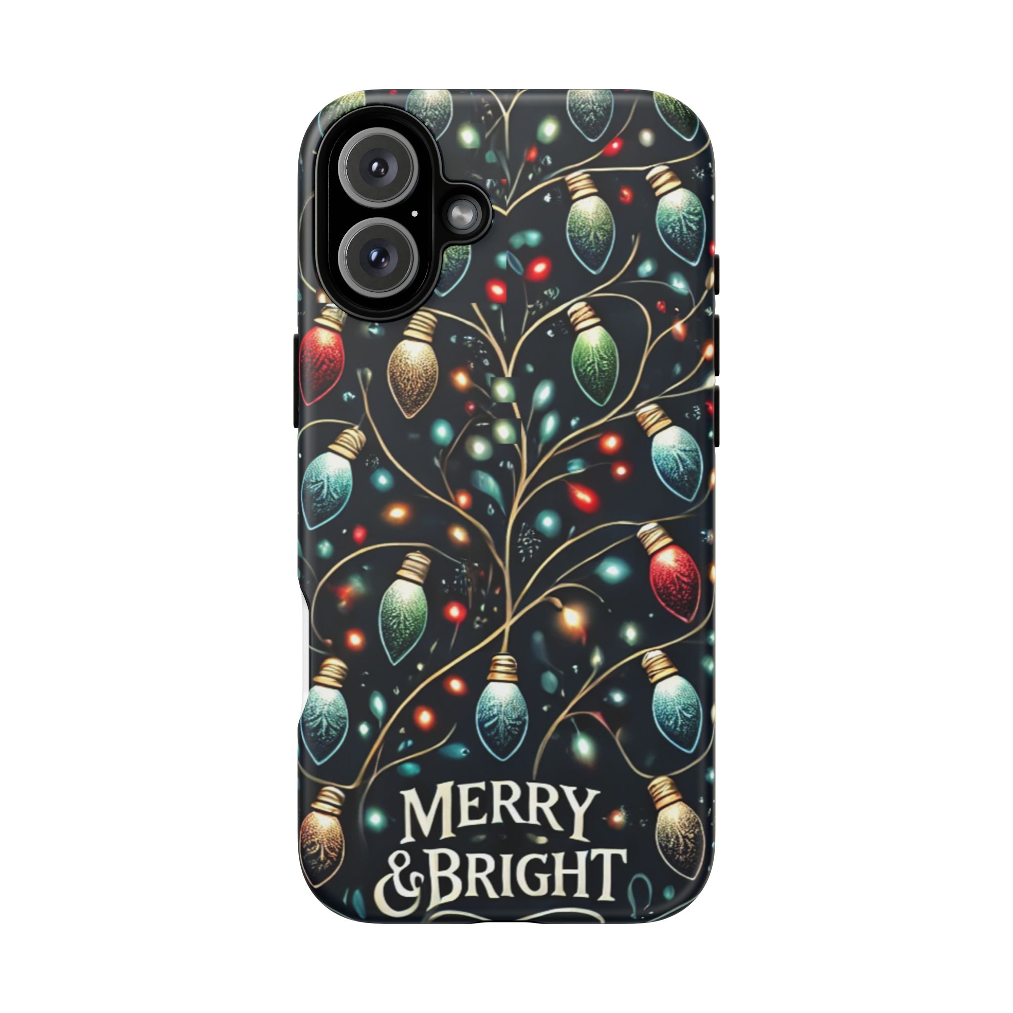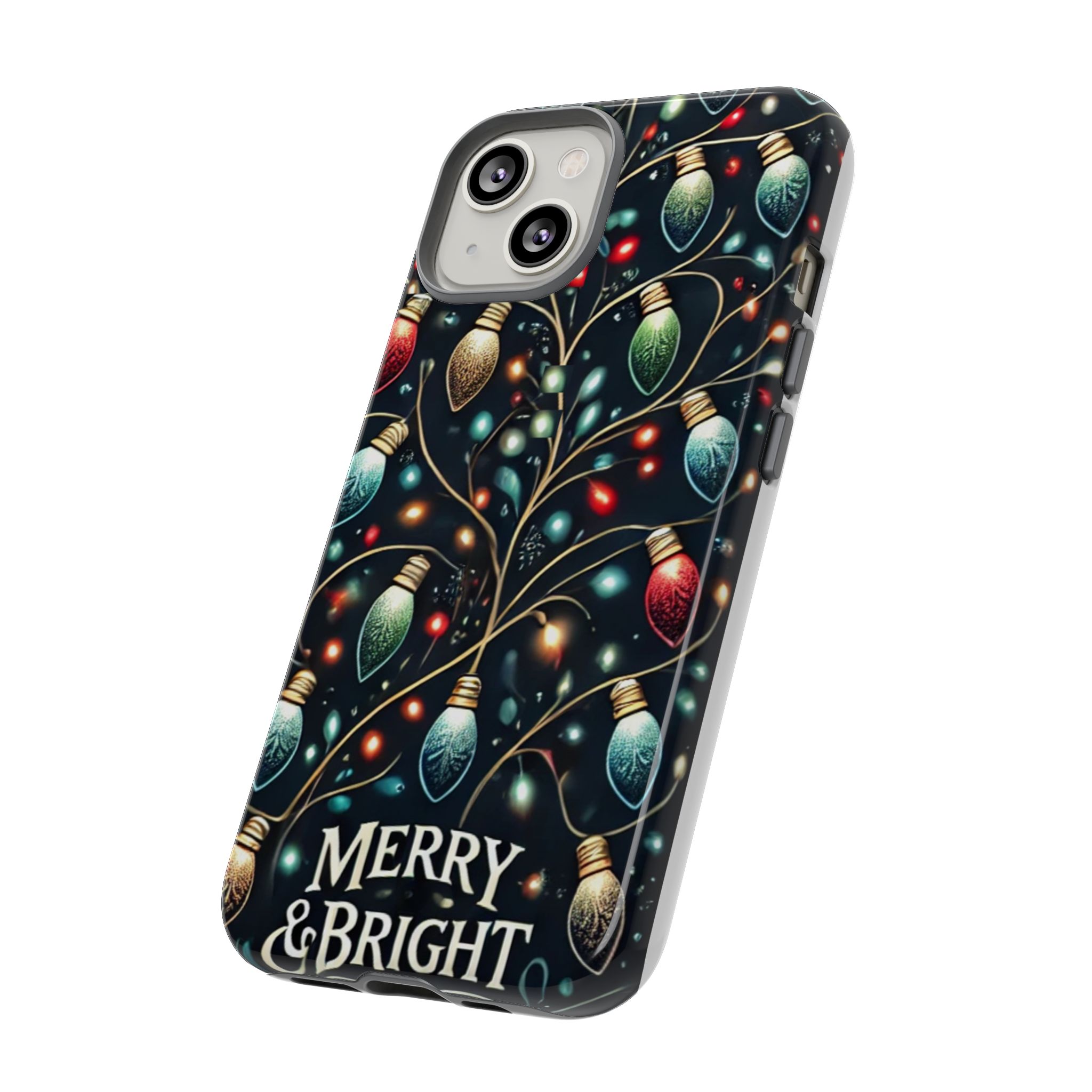 Vibrant Festive Lights Phone Cover featuring a colorful Christmas lights pattern on a dark background with a twinkling effect, adding a touch of holiday sparkle. Made of durable and impact-resistant materials, this phone case provides excellent protection against drops and tears. Ideal for adults looking to add a festive touch to their phone during the holiday season.