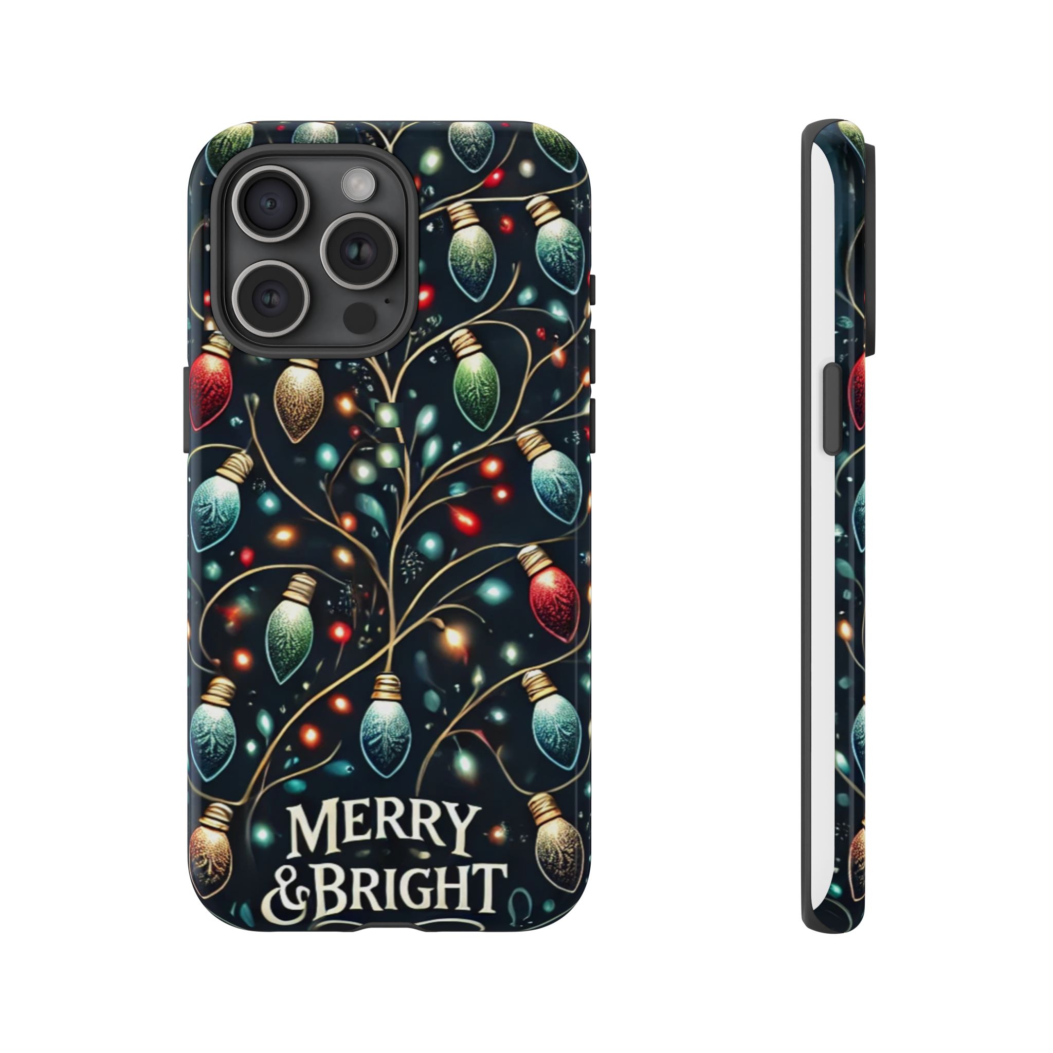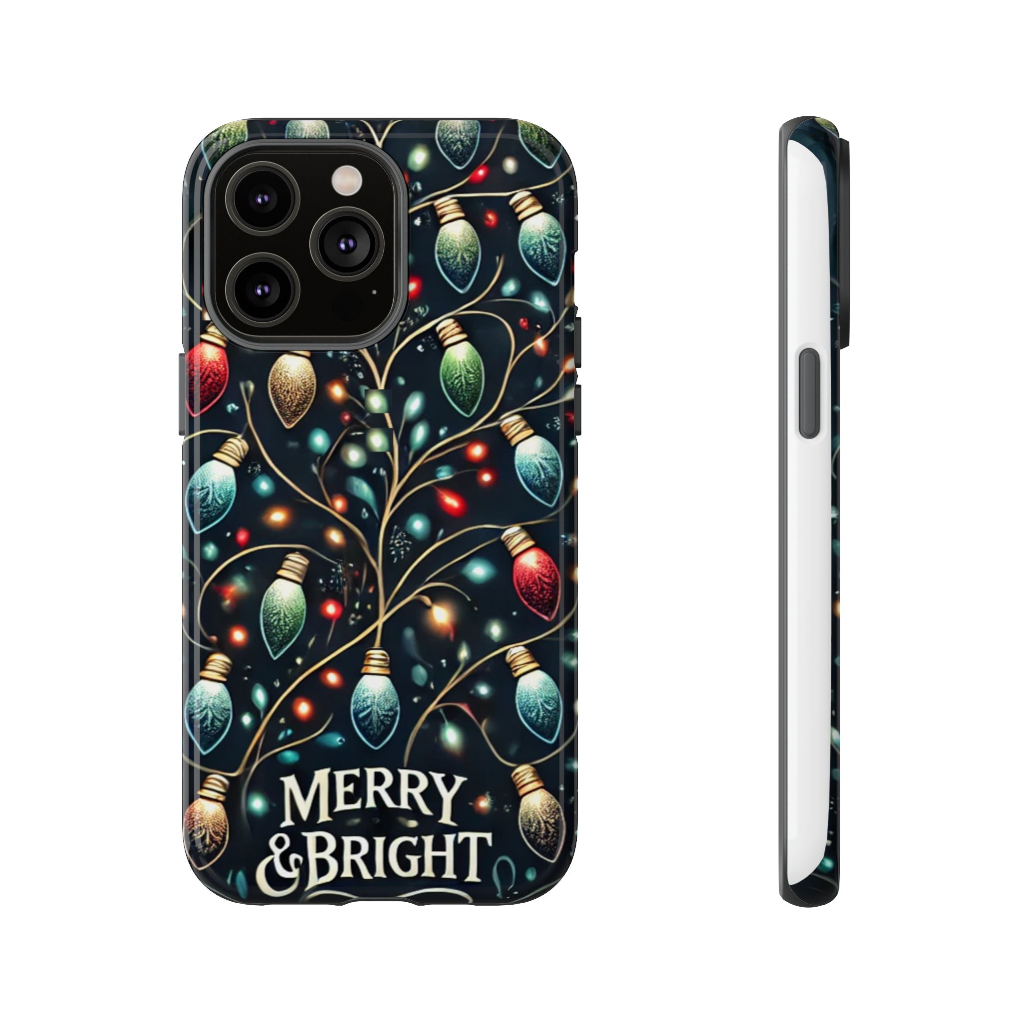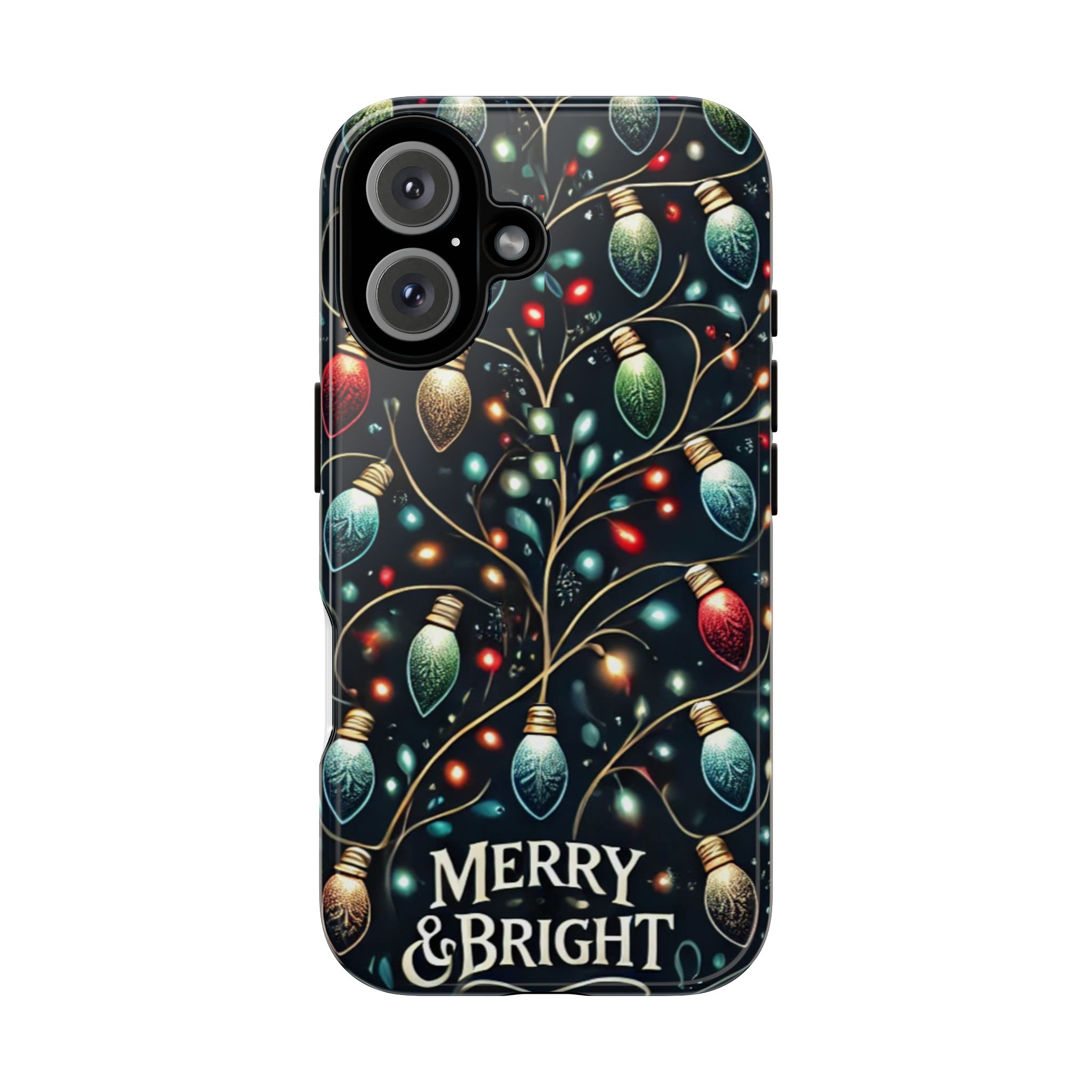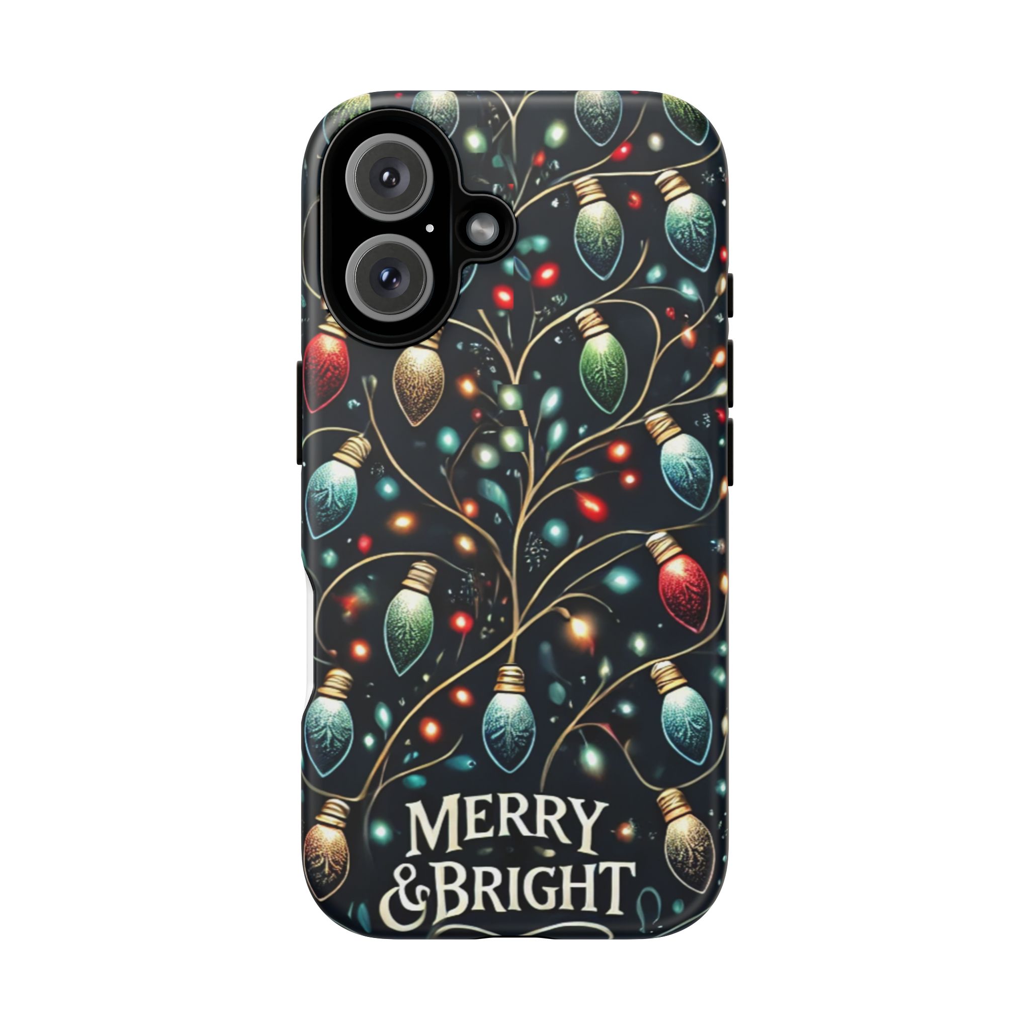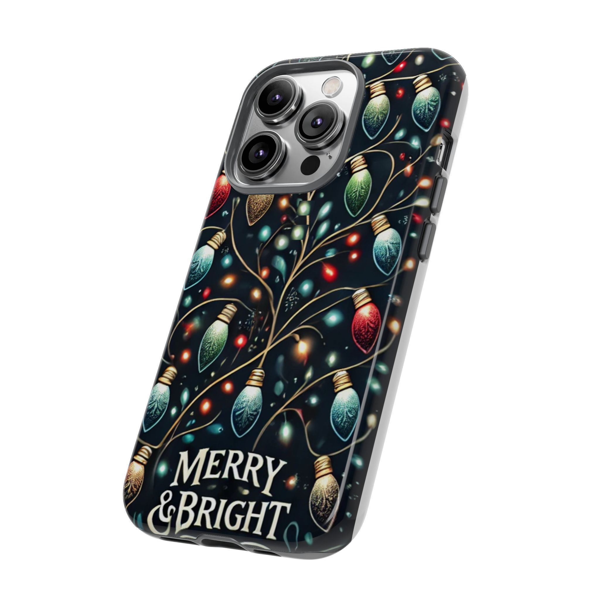 Vibrant Festive Lights Phone Cover featuring a colorful Christmas lights pattern on a dark background with a twinkling effect, adding a touch of holiday sparkle. Made of durable and impact-resistant materials, this phone case provides excellent protection against drops and tears. Ideal for adults looking to add a festive touch to their phone during the holiday season.