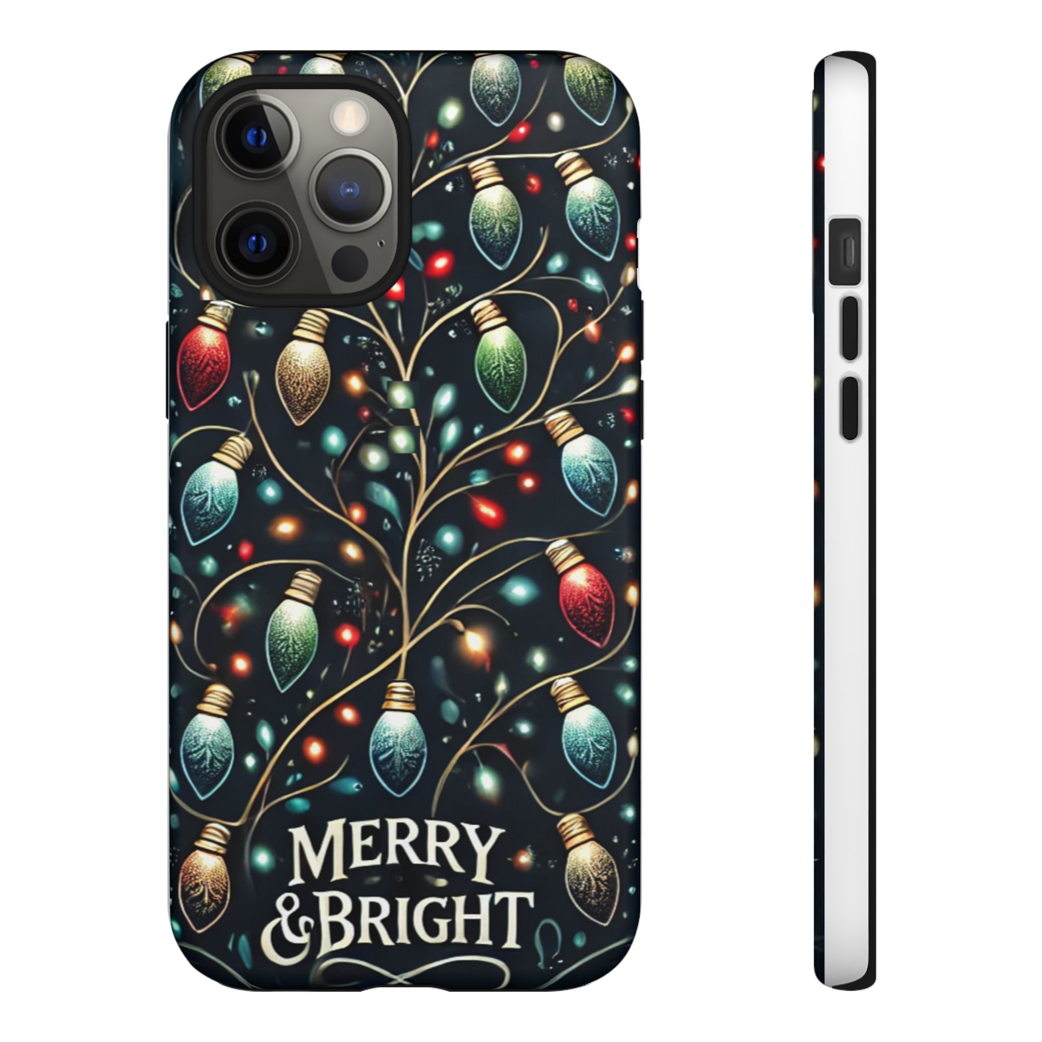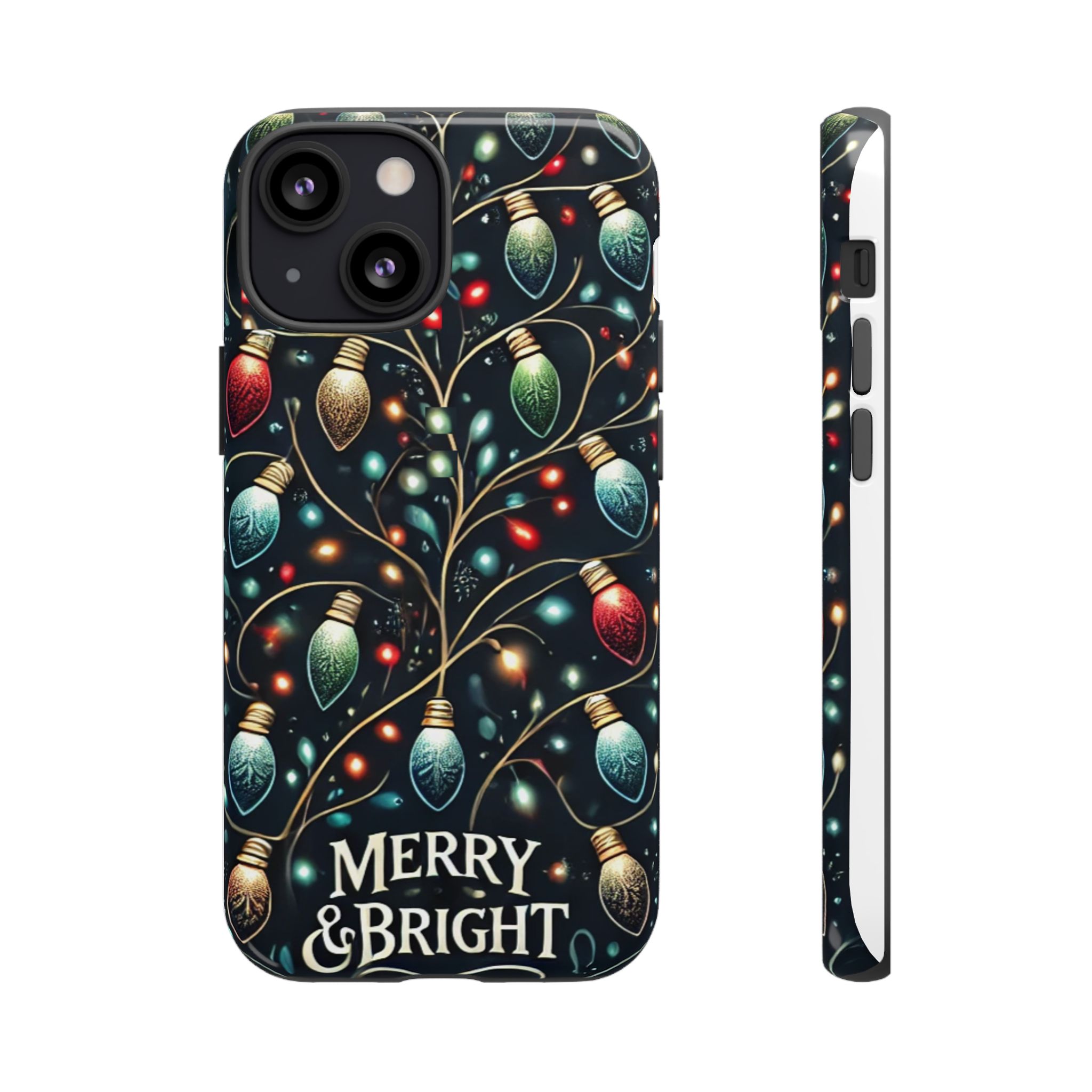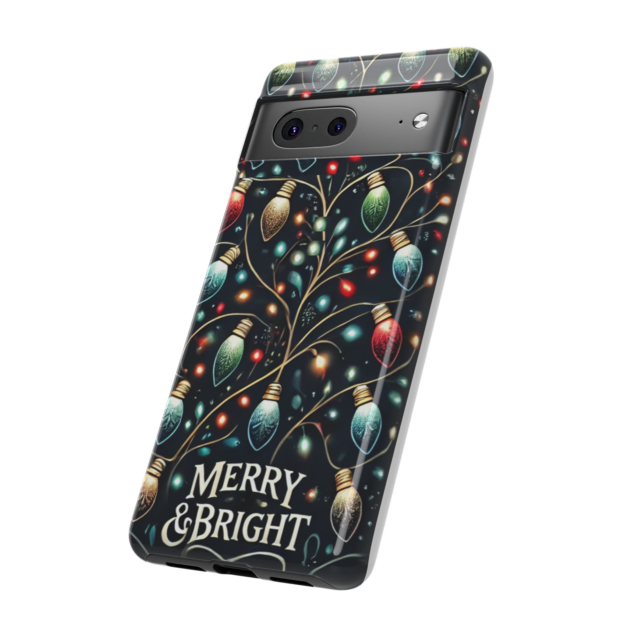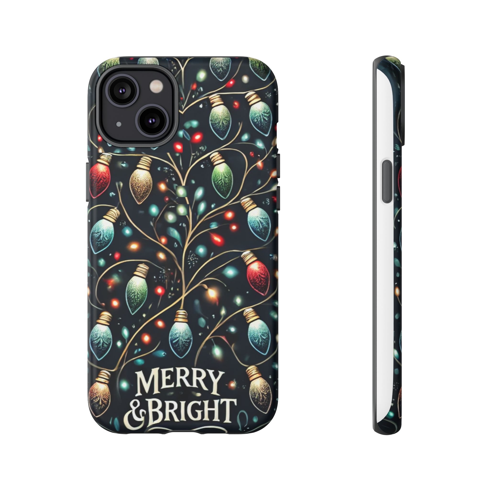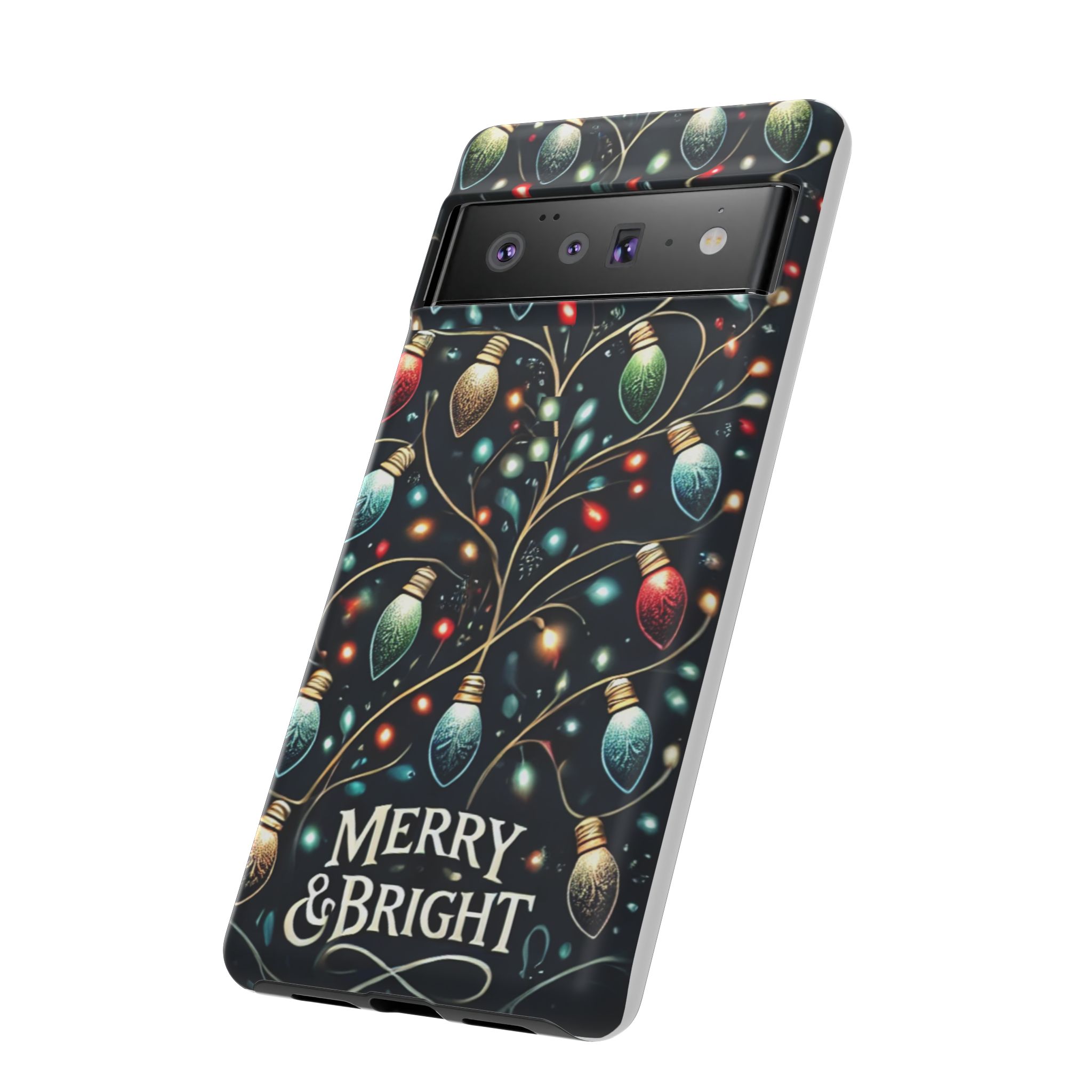 Vibrant Festive Lights Phone Cover featuring a colorful Christmas lights pattern on a dark background with a twinkling effect, adding a touch of holiday sparkle. Made of durable and impact-resistant materials, this phone case provides excellent protection against drops and tears. Ideal for adults looking to add a festive touch to their phone during the holiday season.