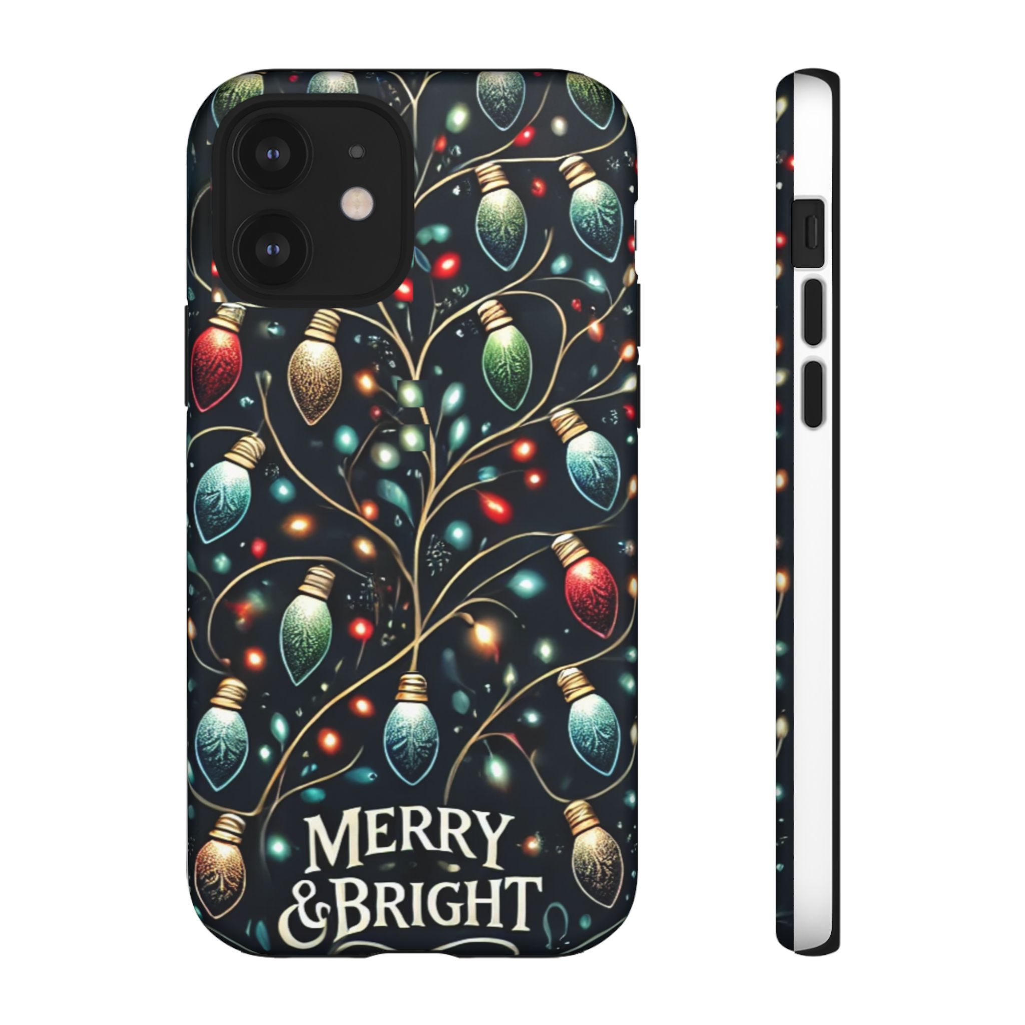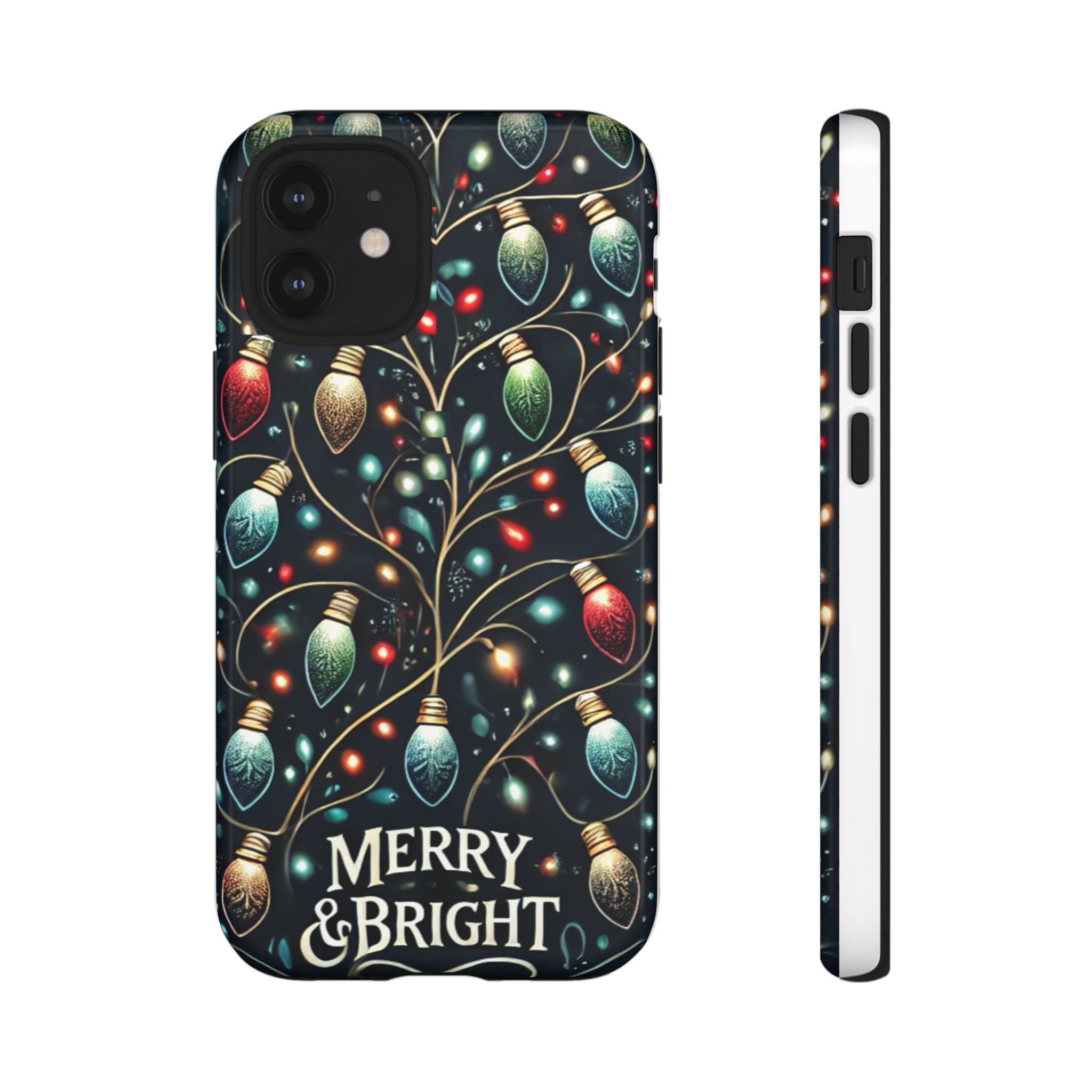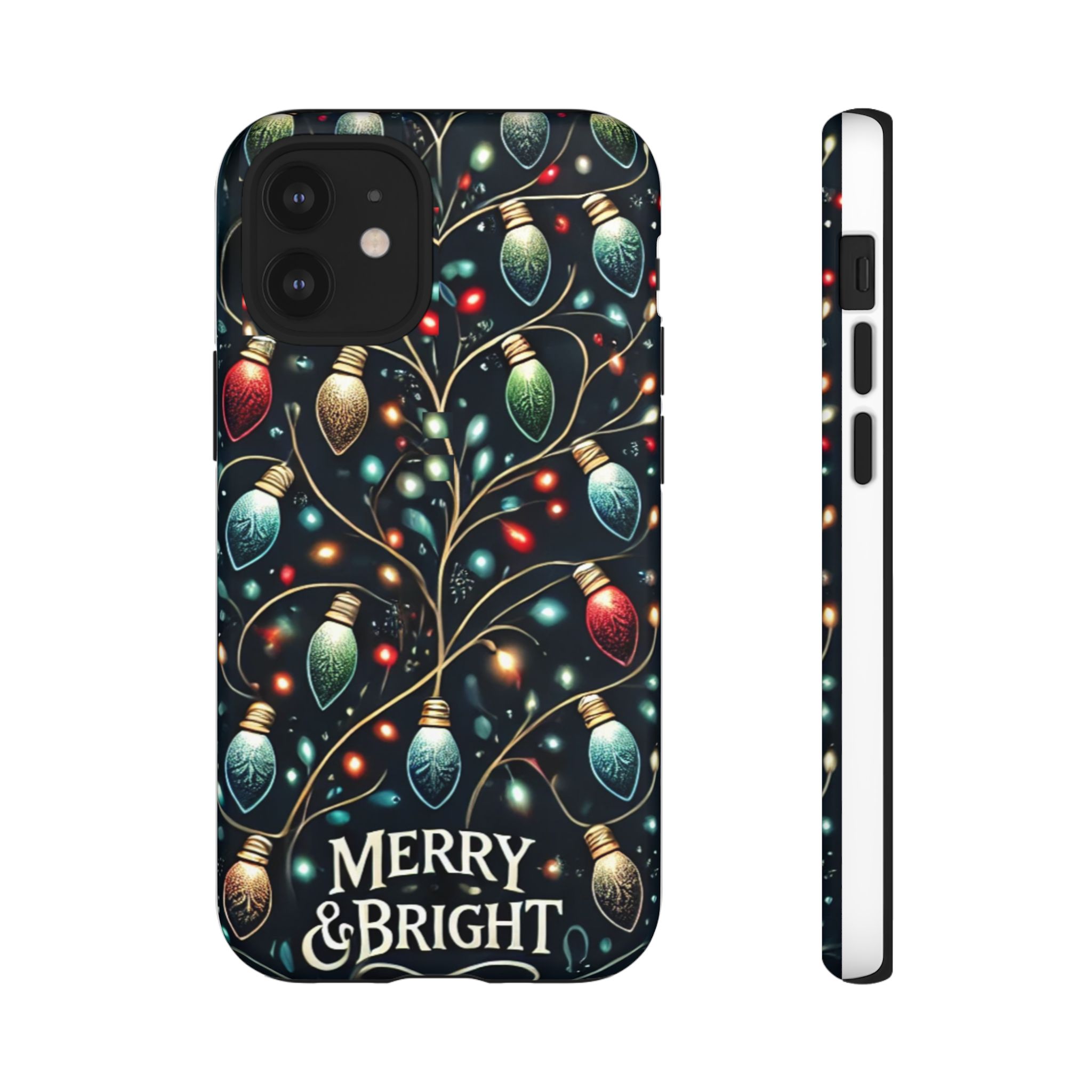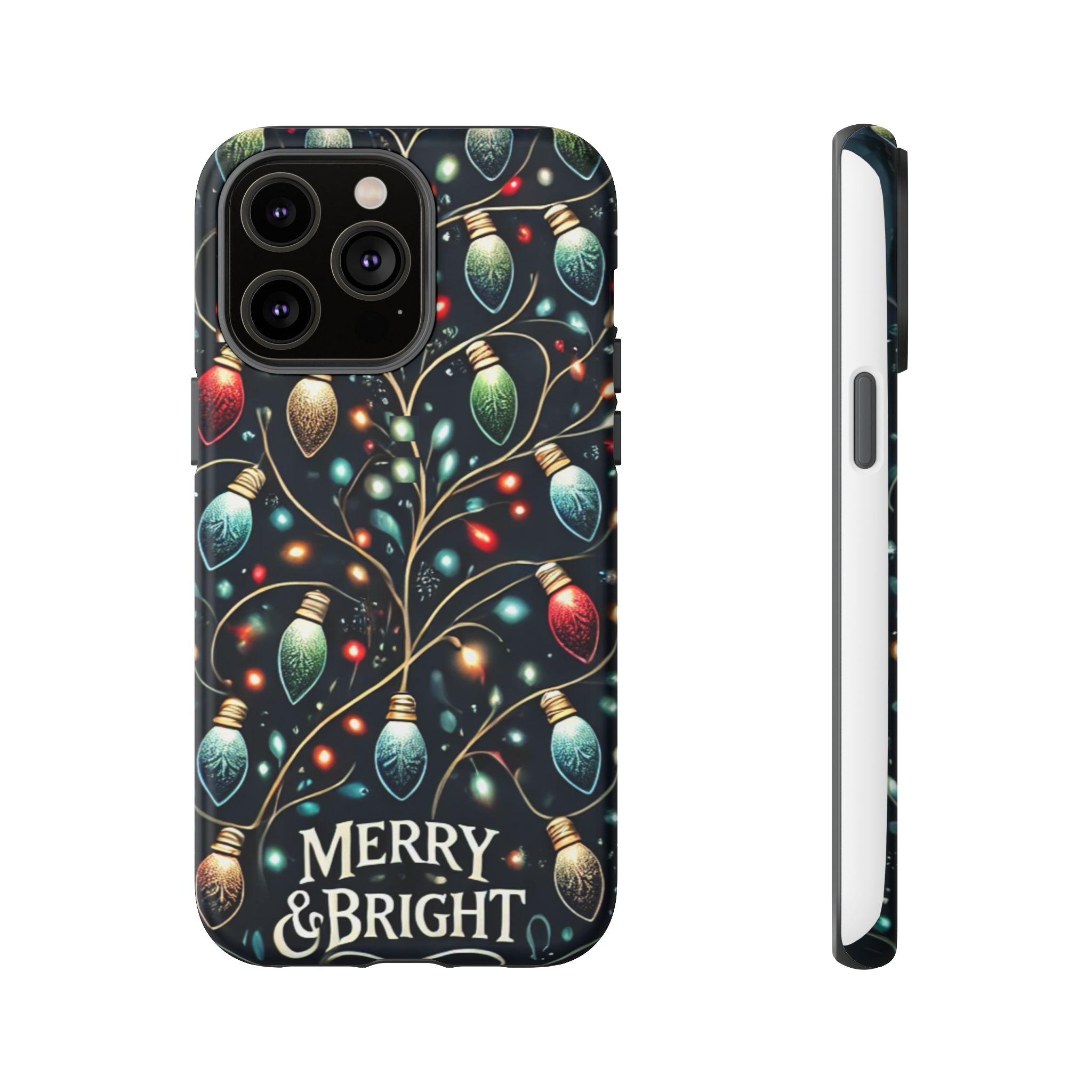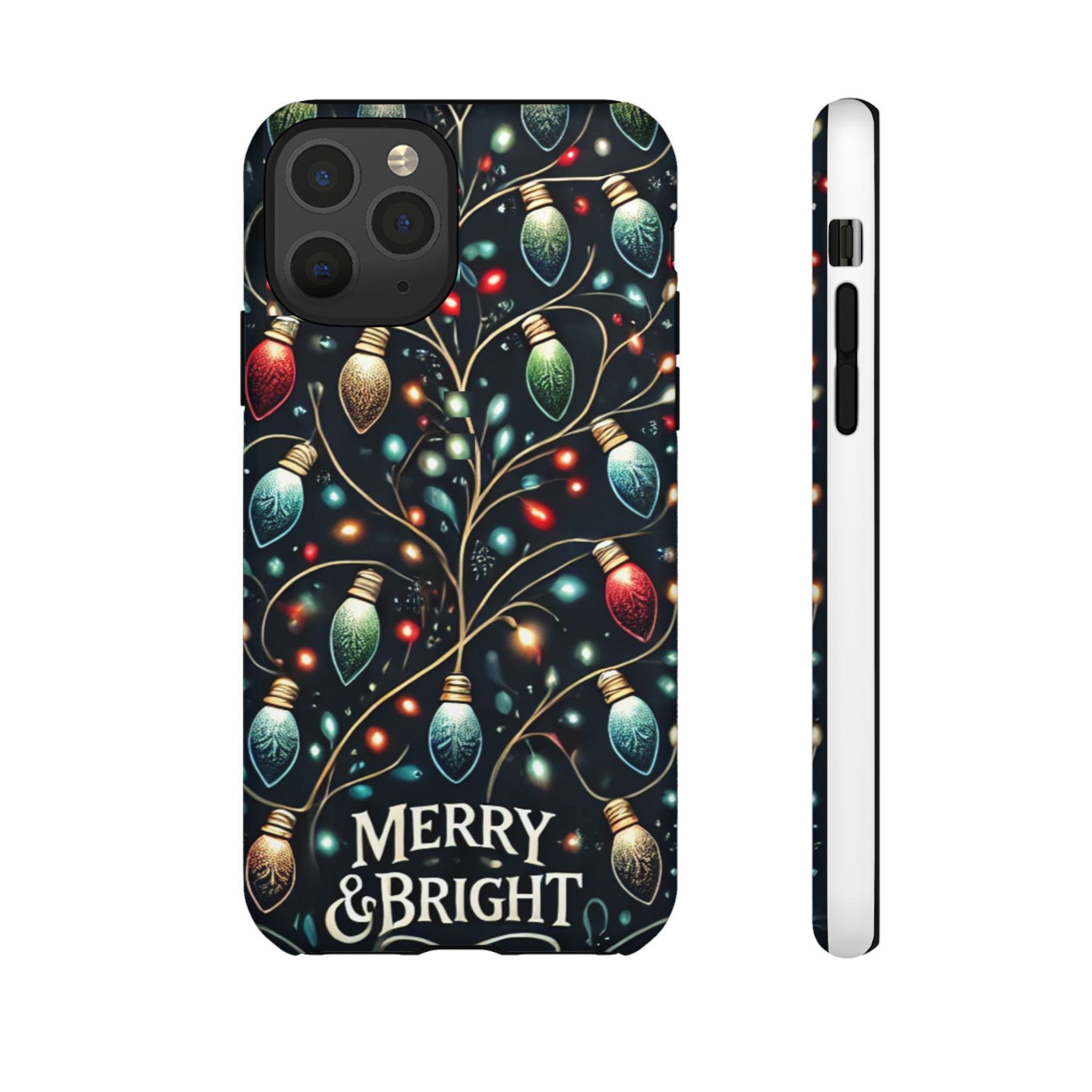 Vibrant Festive Lights Phone Cover featuring a colorful Christmas lights pattern on a dark background with a twinkling effect, adding a touch of holiday sparkle. Made of durable and impact-resistant materials, this phone case provides excellent protection against drops and tears. Ideal for adults looking to add a festive touch to their phone during the holiday season.