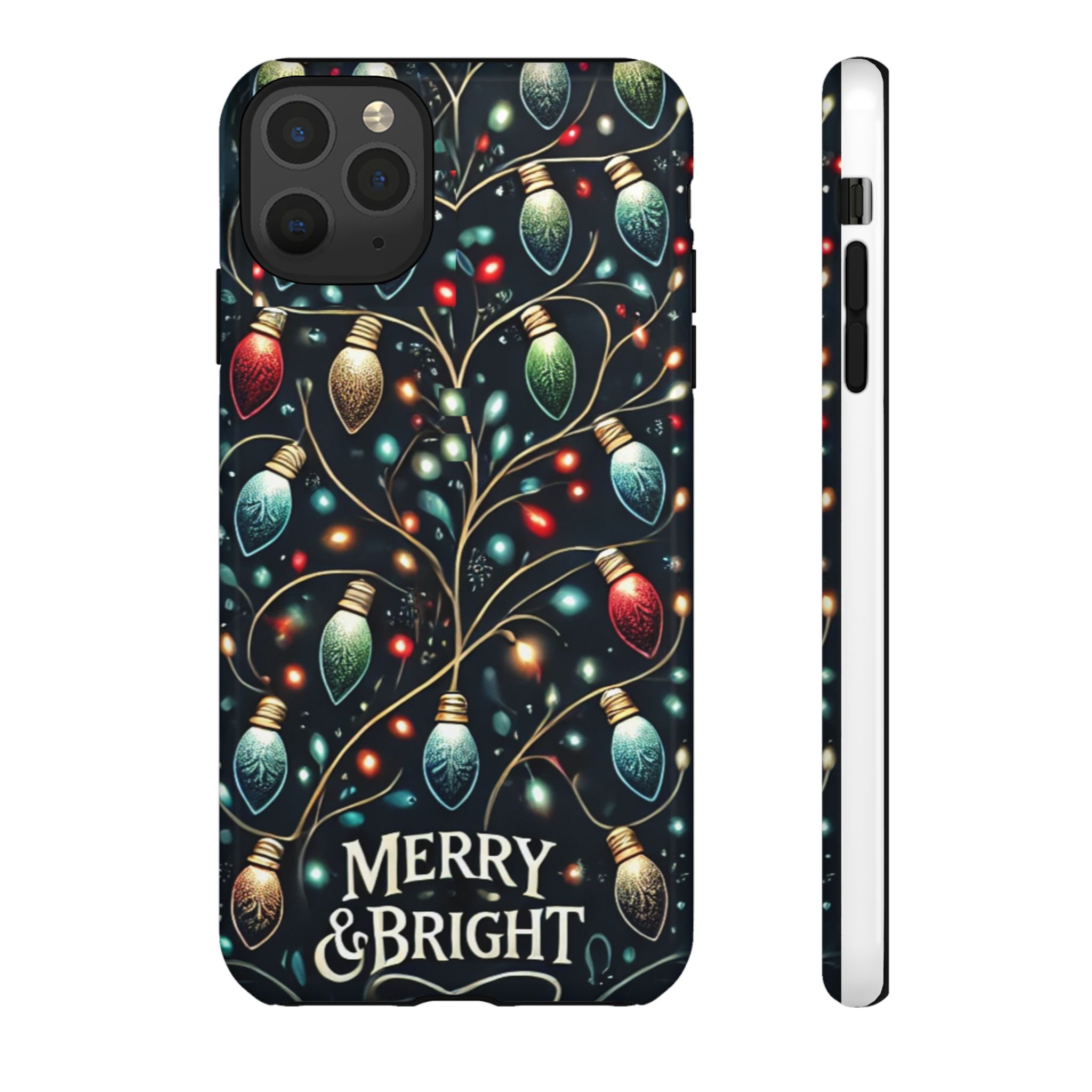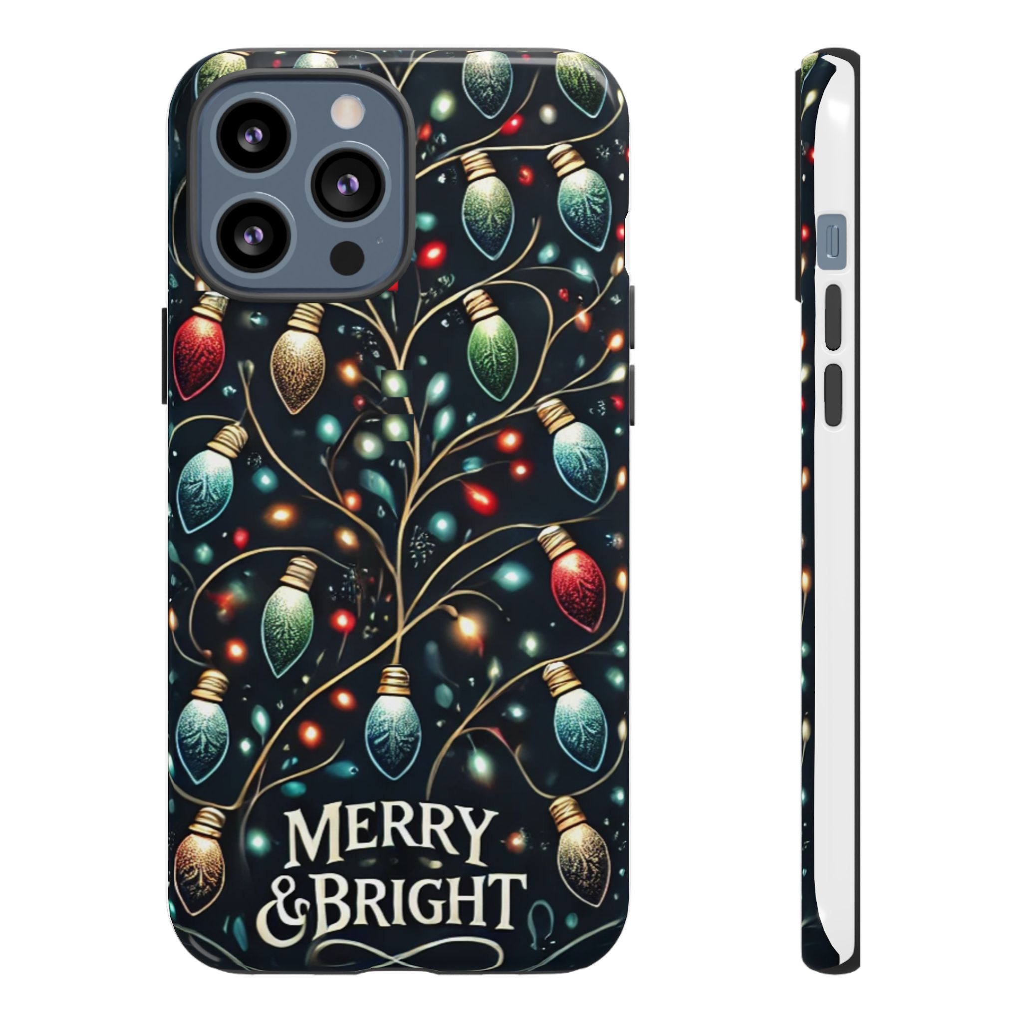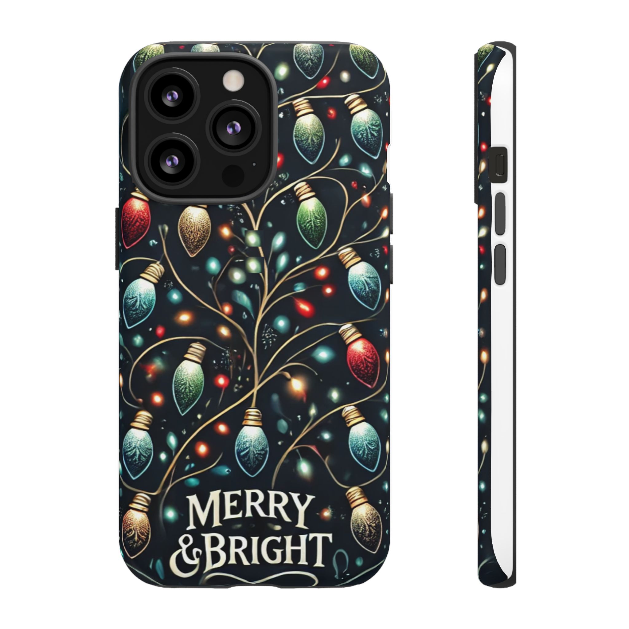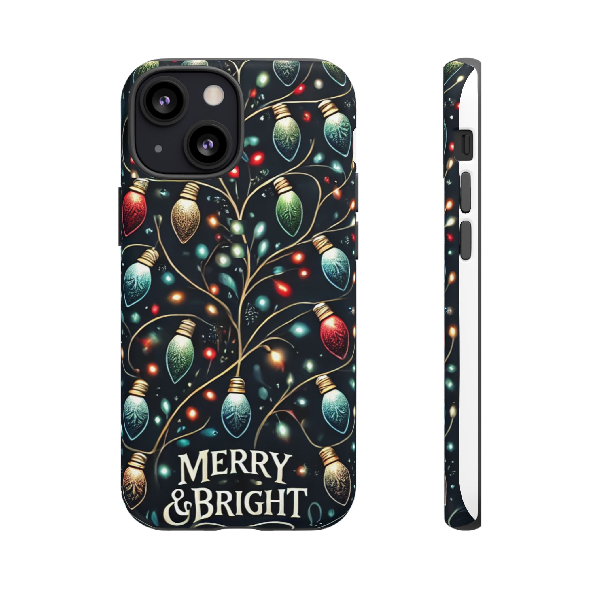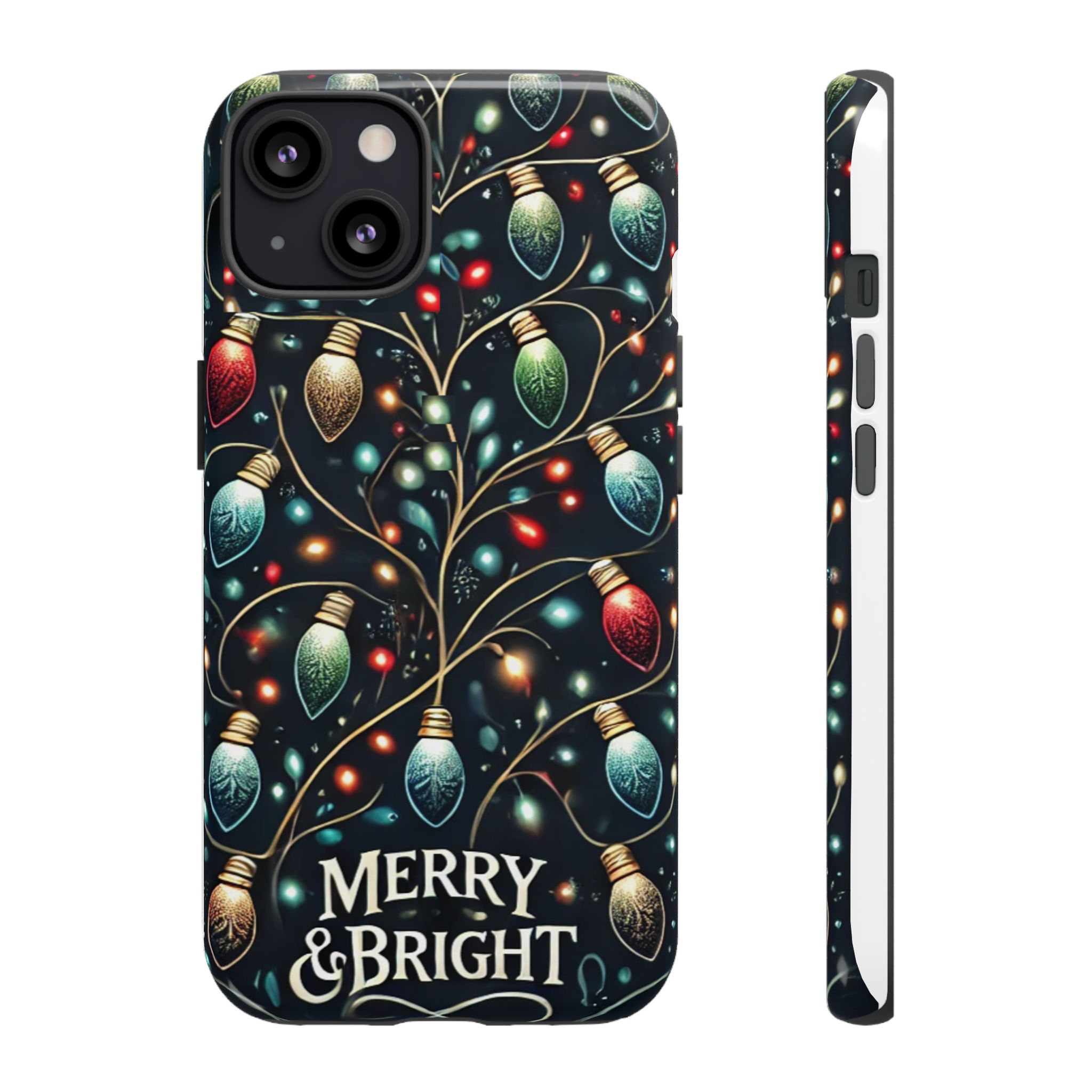Vibrant Festive Lights Phone Cover featuring a colorful Christmas lights pattern on a dark background with a twinkling effect, adding a touch of holiday sparkle. Made of durable and impact-resistant materials, this phone case provides excellent protection against drops and tears. Ideal for adults looking to add a festive touch to their phone during the holiday season.