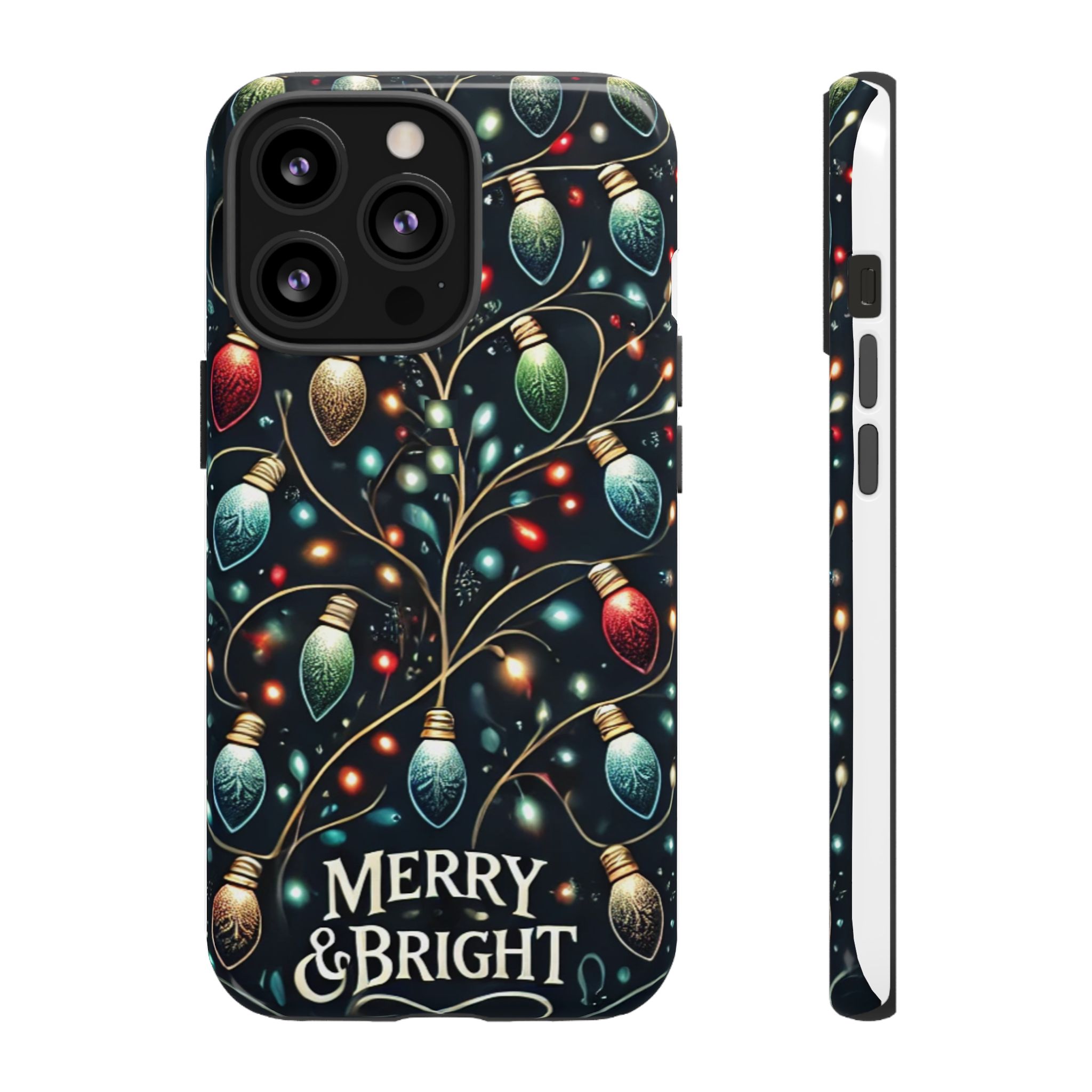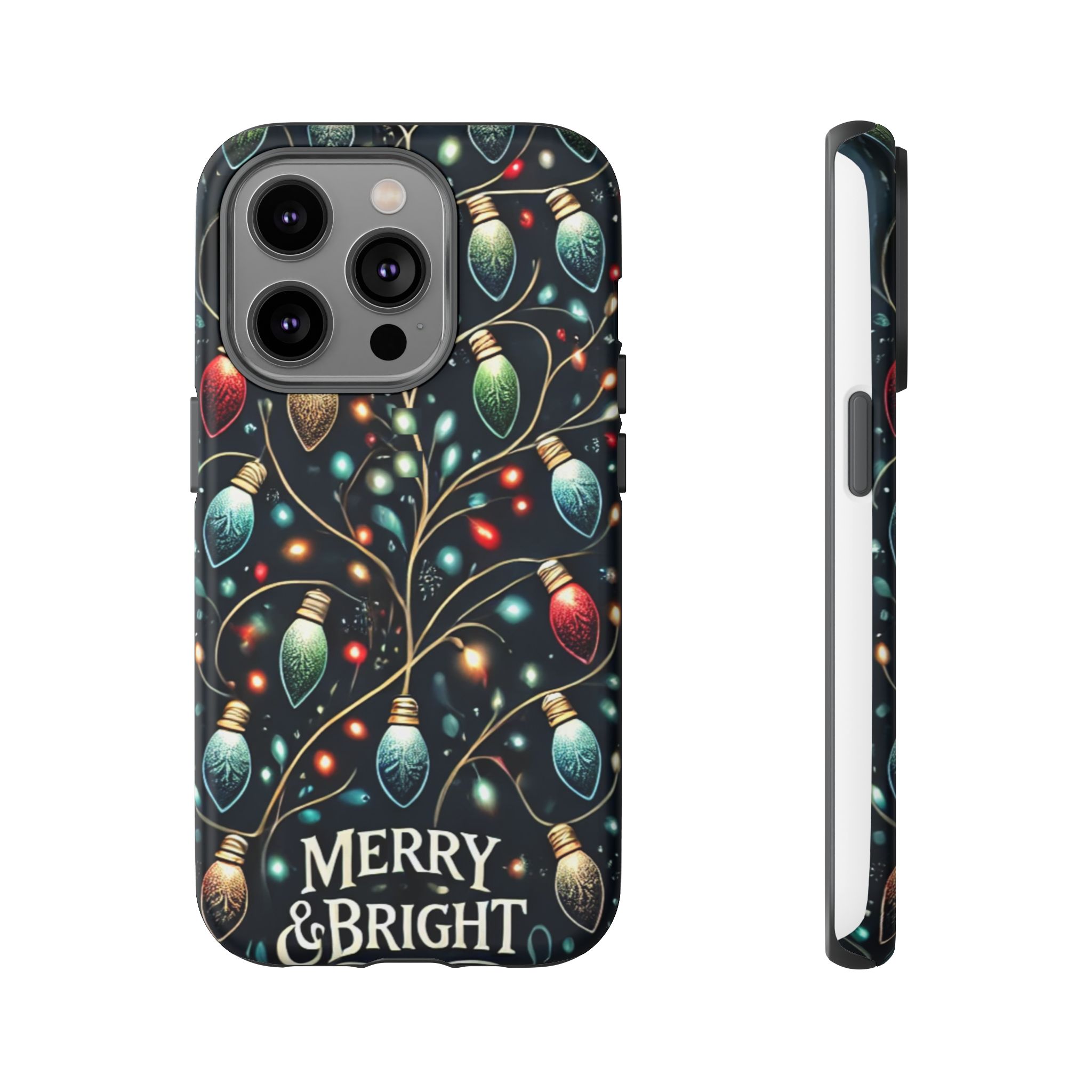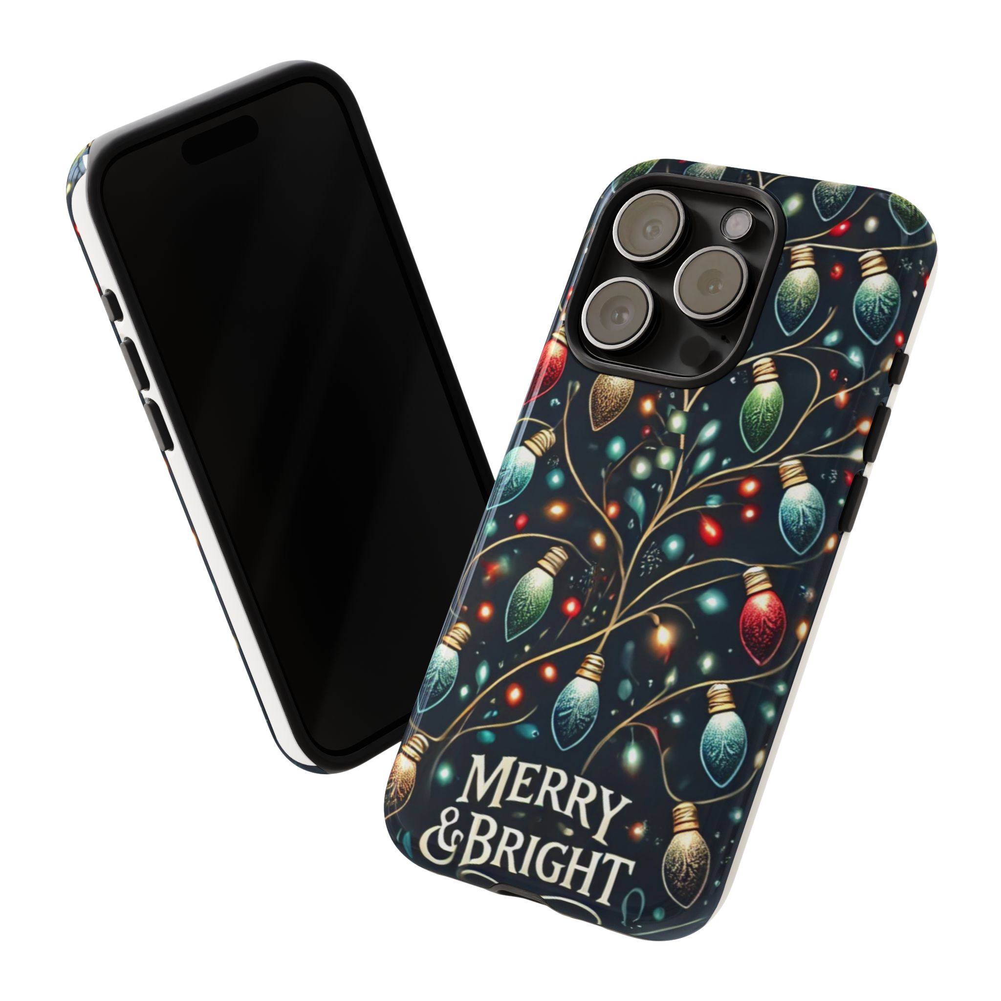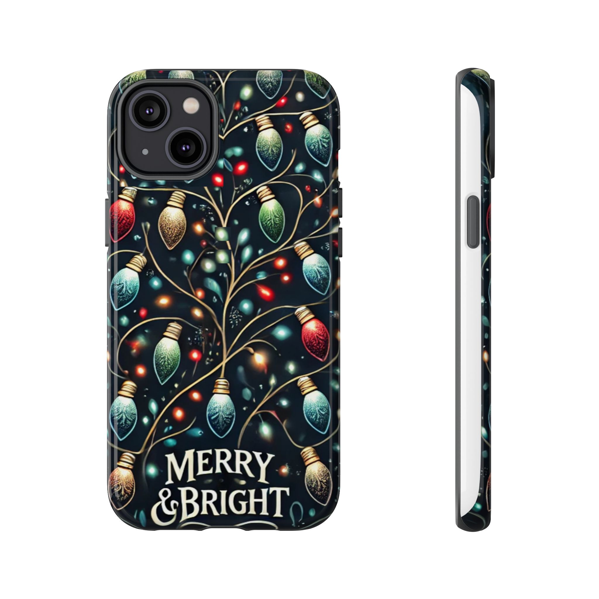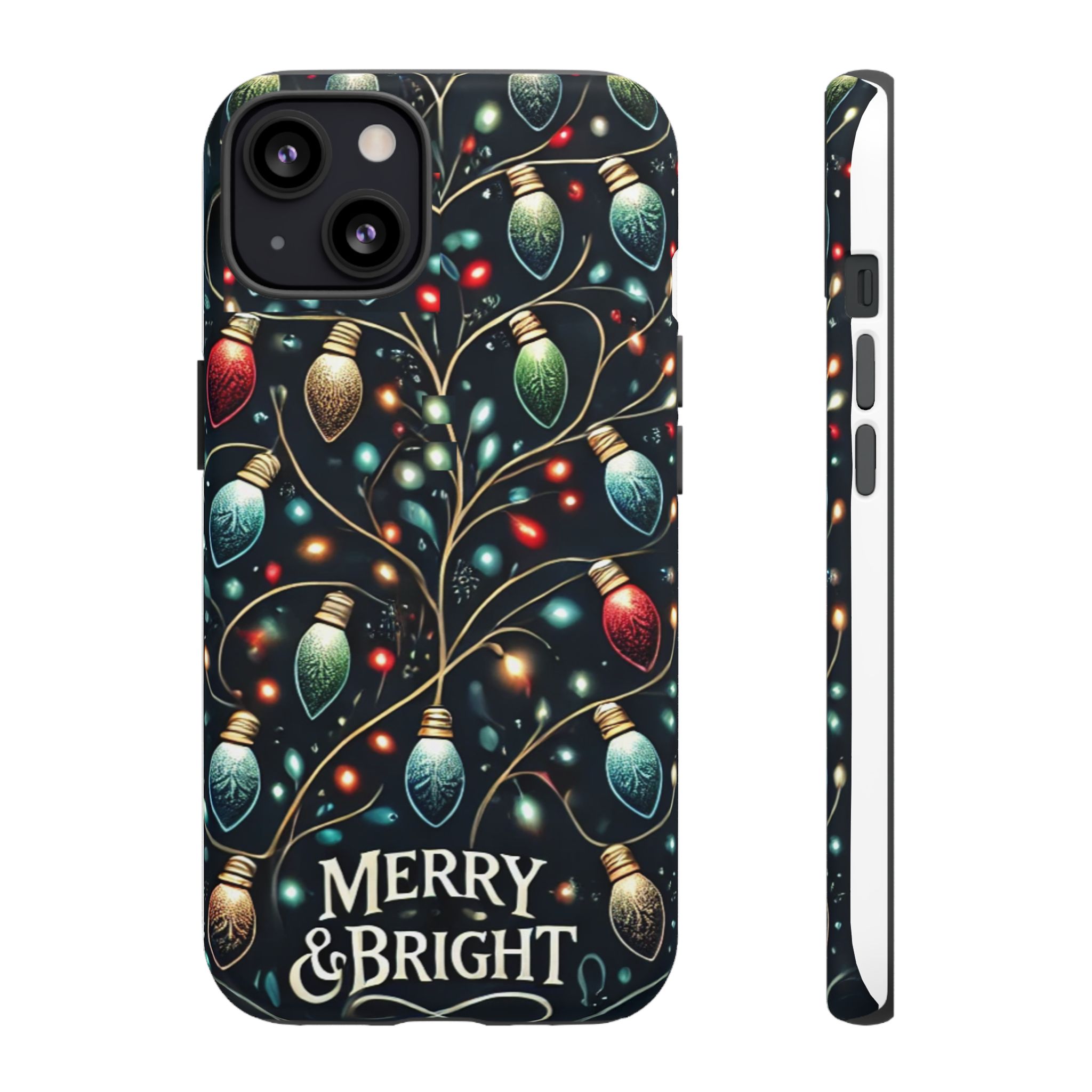 Vibrant Festive Lights Phone Cover featuring a colorful Christmas lights pattern on a dark background with a twinkling effect, adding a touch of holiday sparkle. Made of durable and impact-resistant materials, this phone case provides excellent protection against drops and tears. Ideal for adults looking to add a festive touch to their phone during the holiday season.