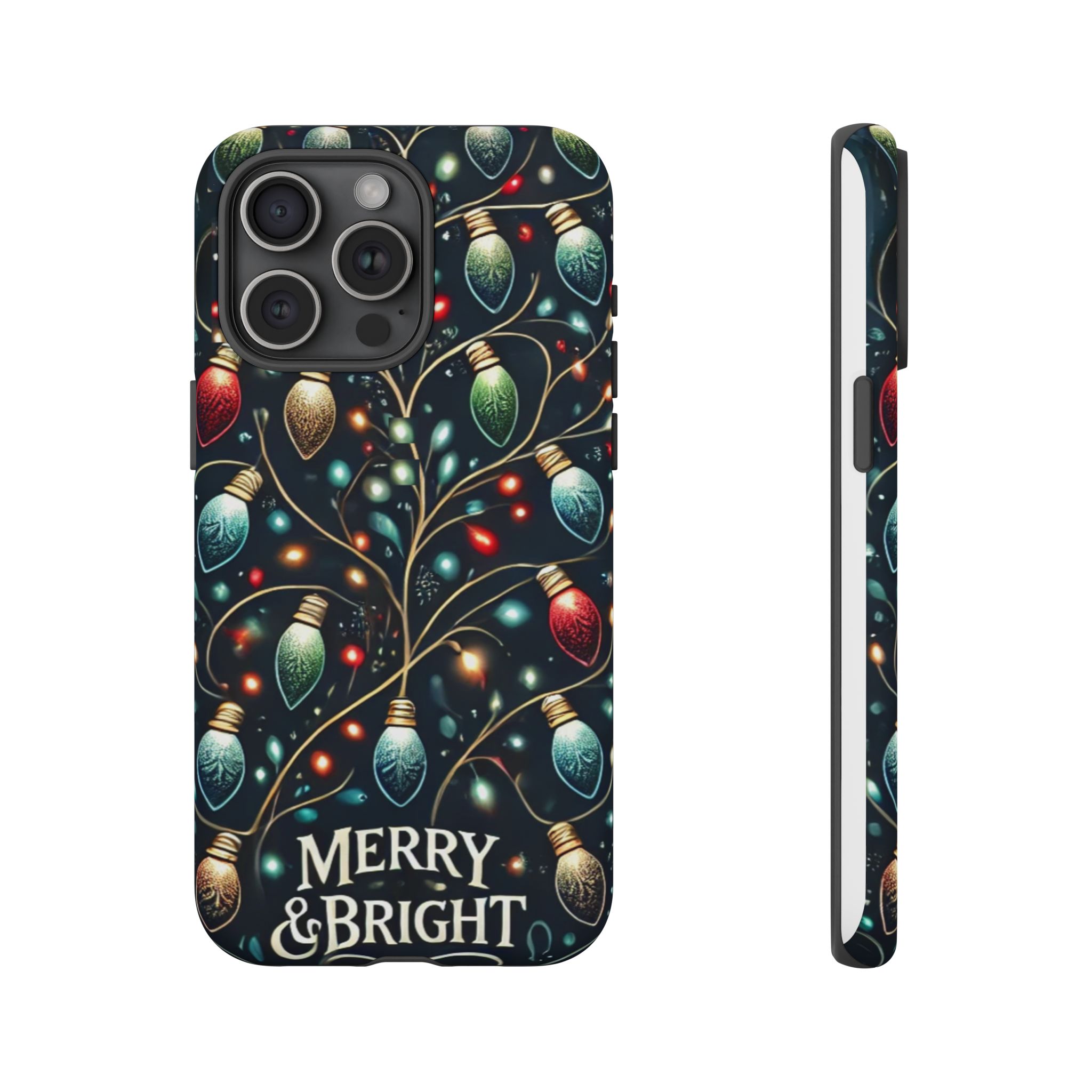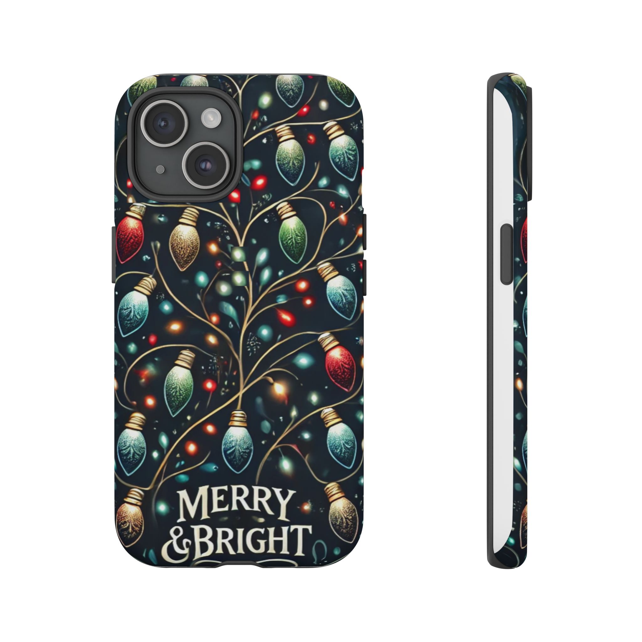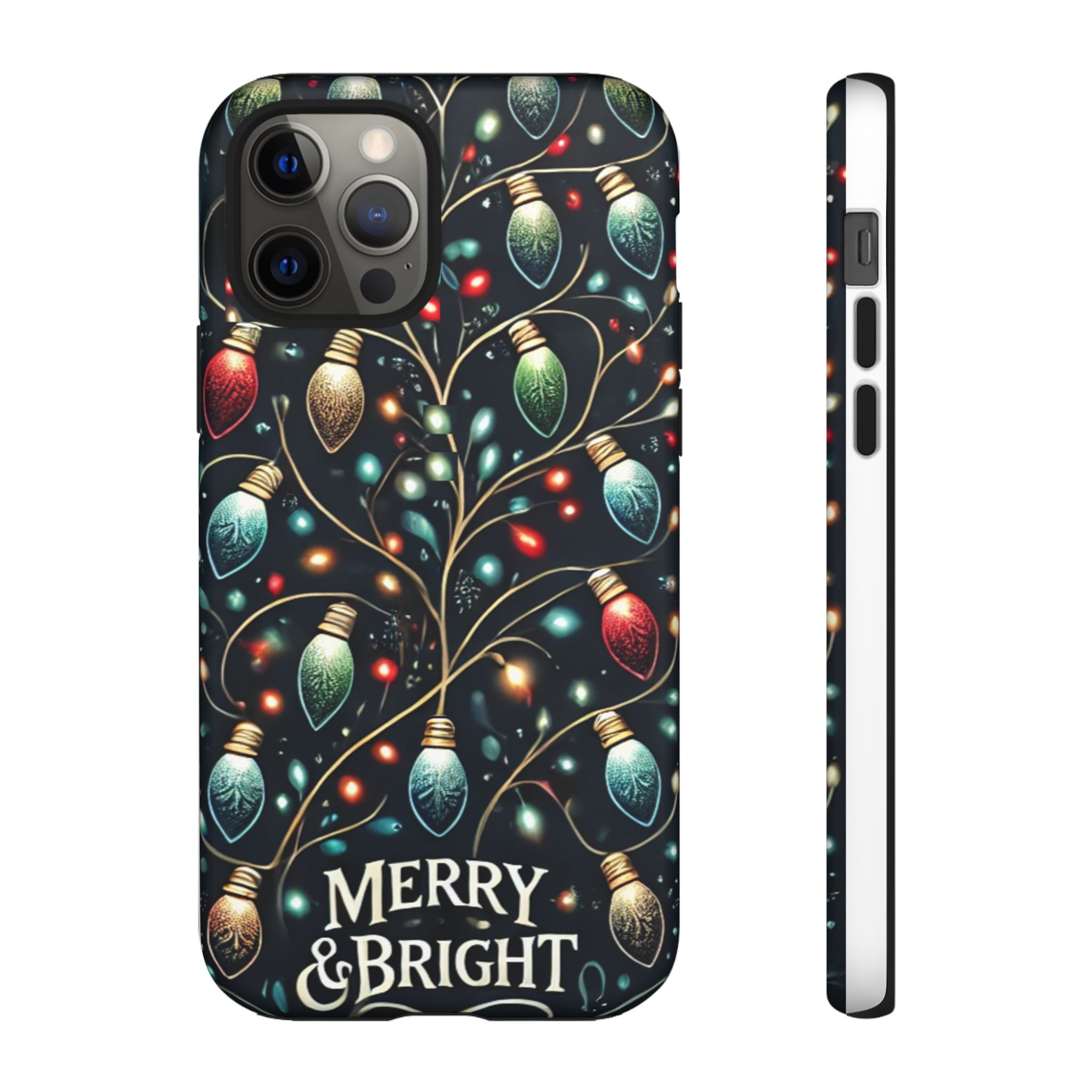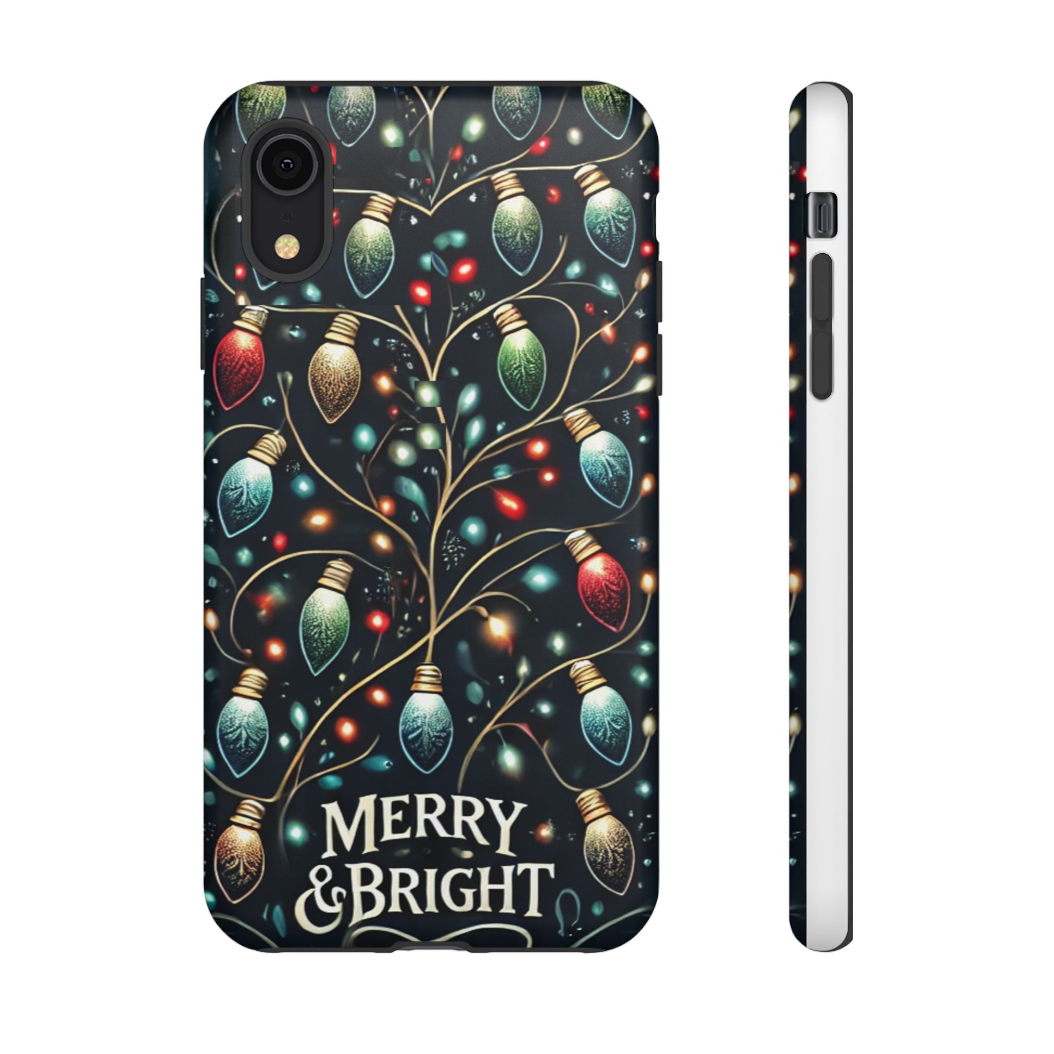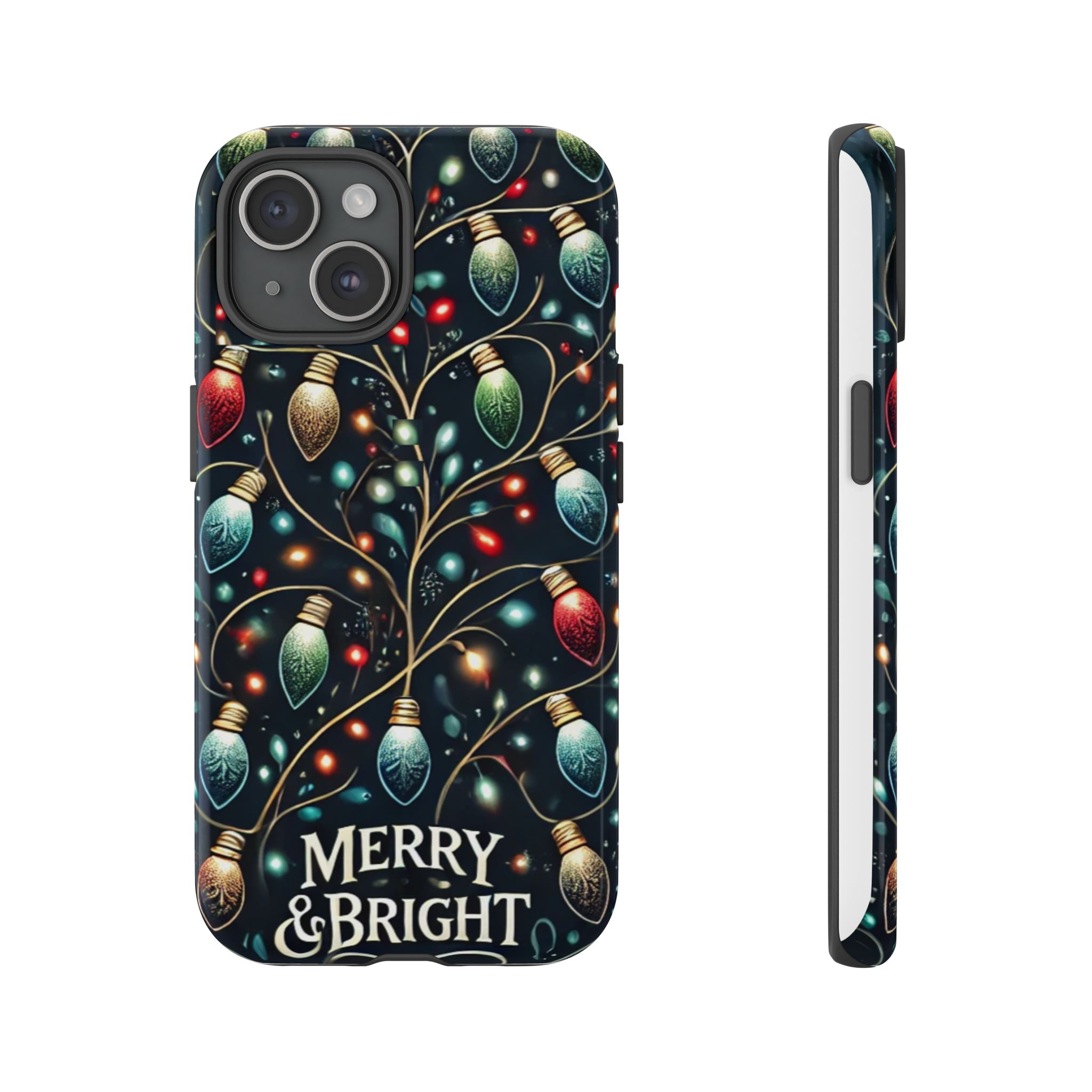 Vibrant Festive Lights Phone Cover featuring a colorful Christmas lights pattern on a dark background with a twinkling effect, adding a touch of holiday sparkle. Made of durable and impact-resistant materials, this phone case provides excellent protection against drops and tears. Ideal for adults looking to add a festive touch to their phone during the holiday season.
