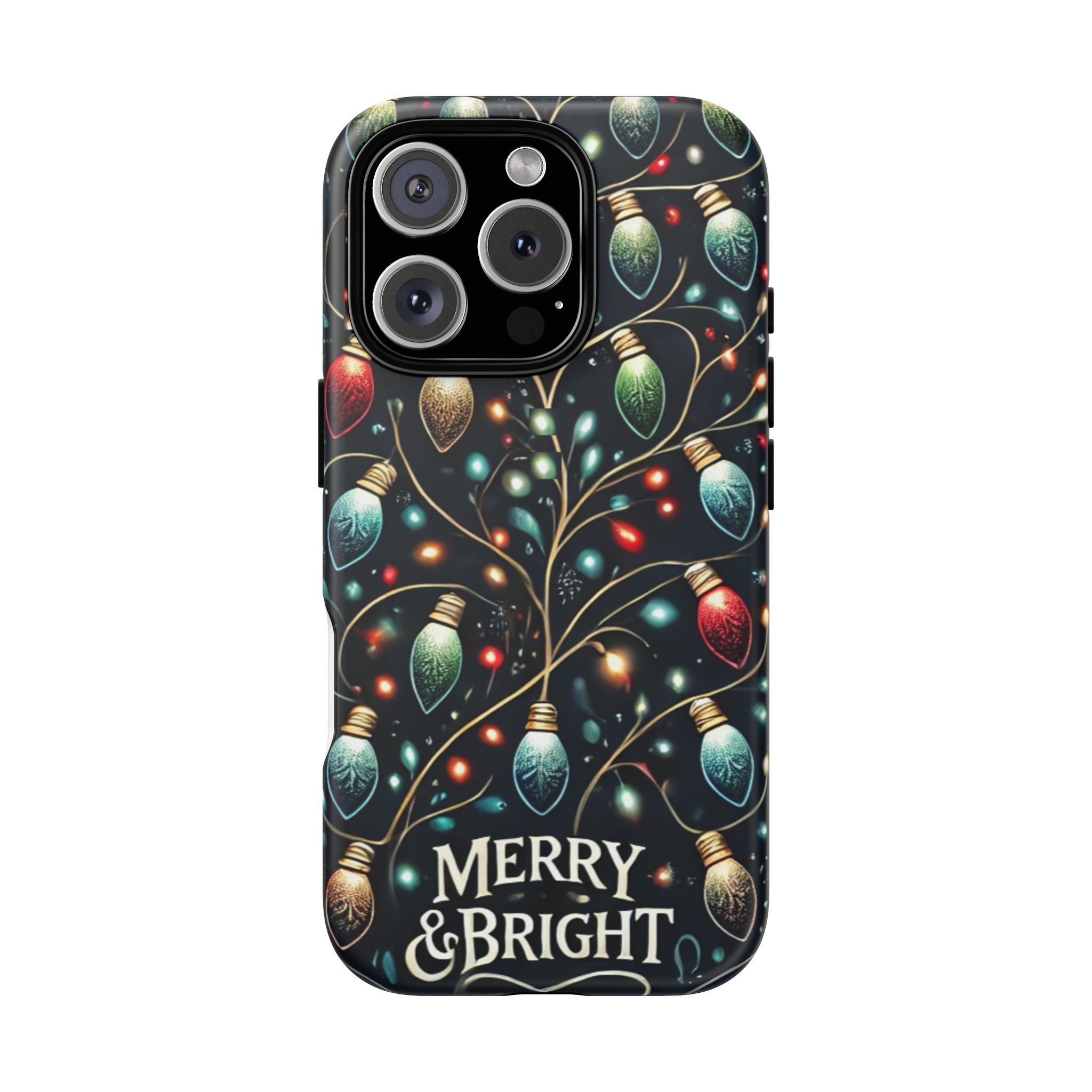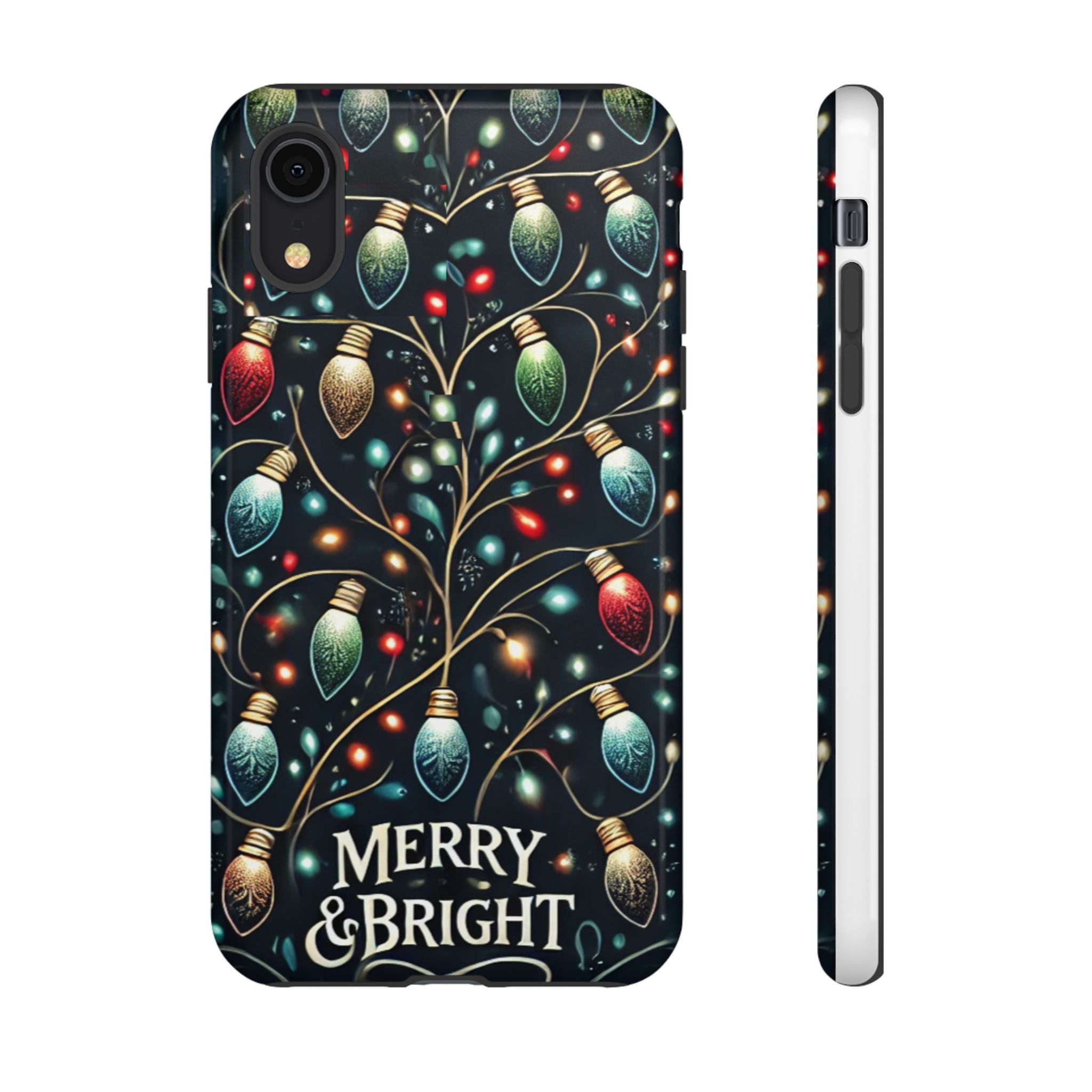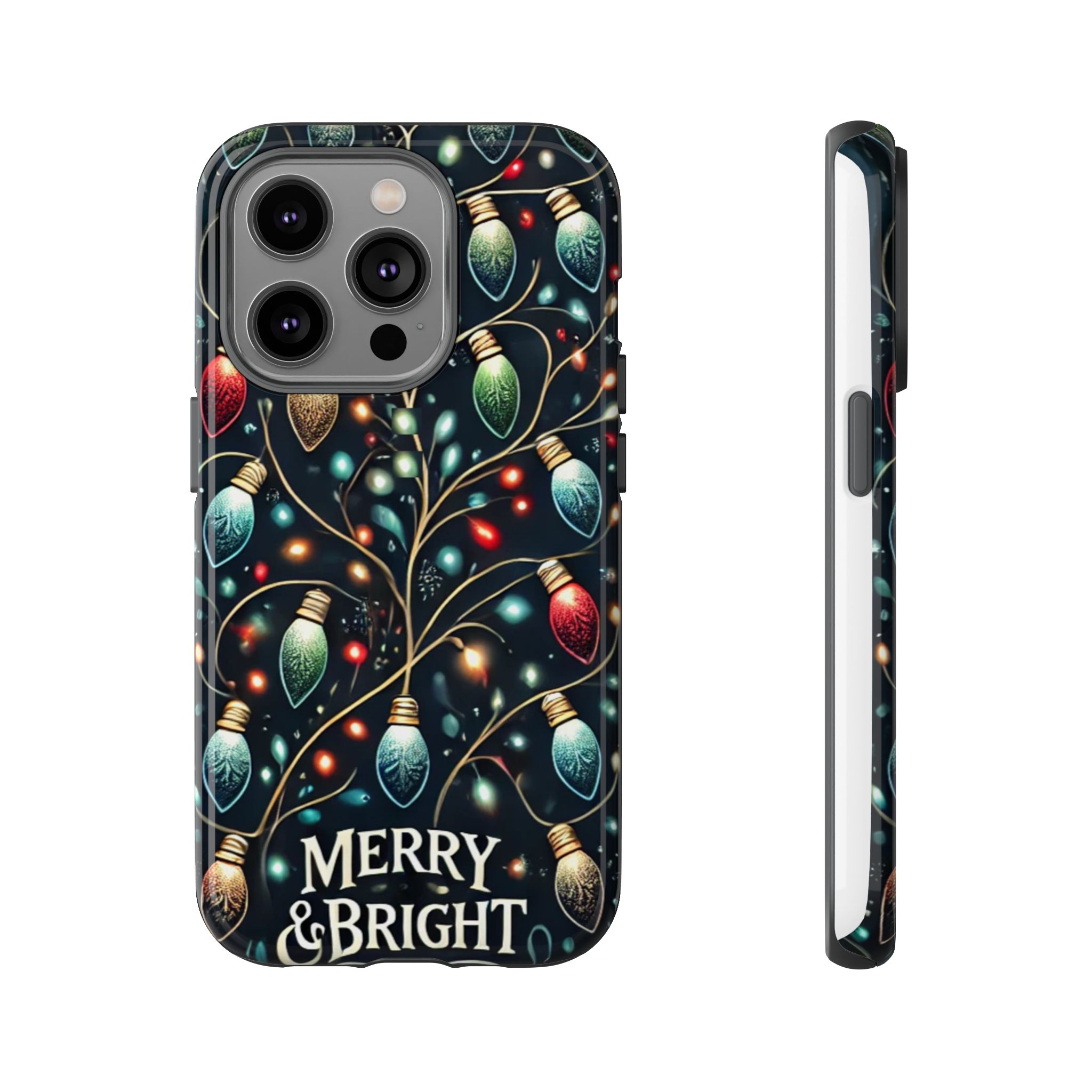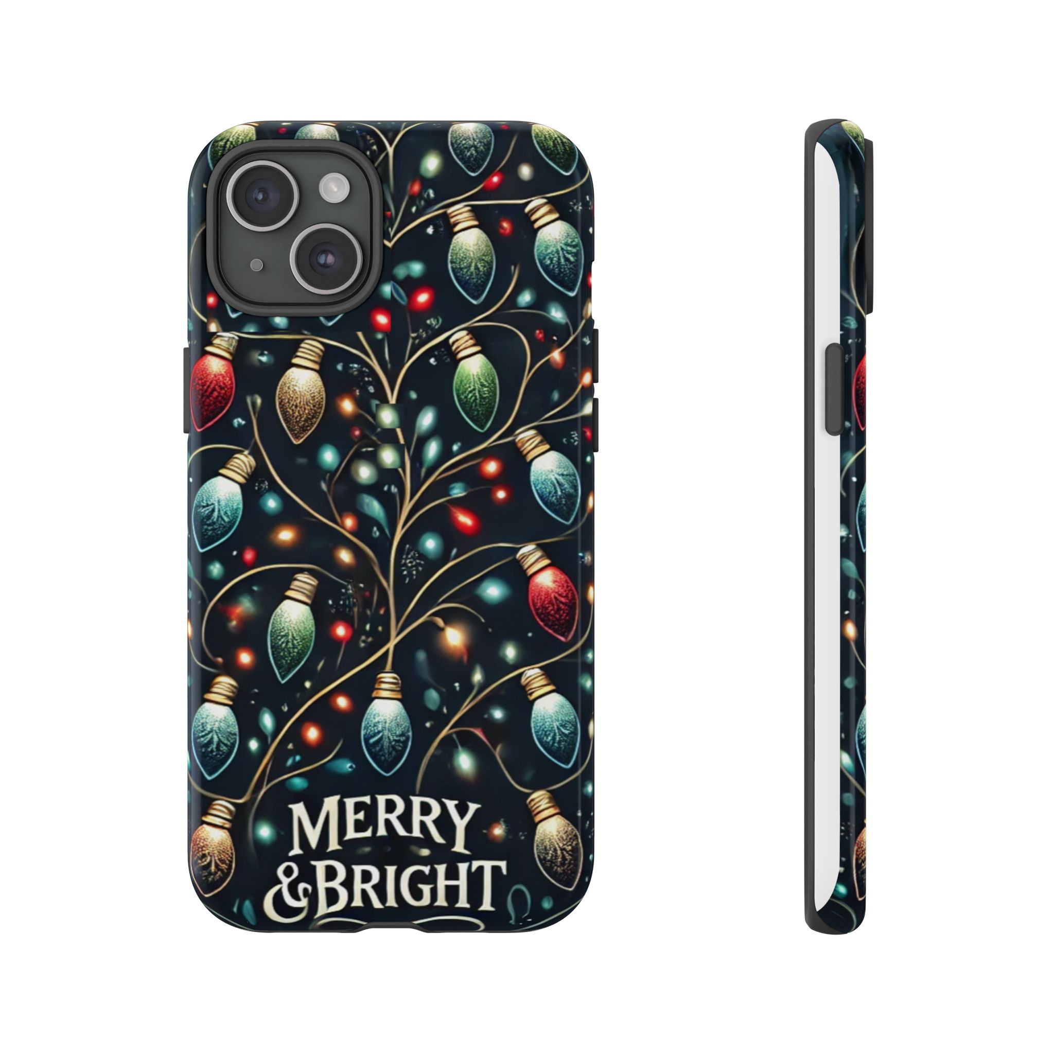 Vibrant Festive Lights Phone Cover featuring a colorful Christmas lights pattern on a dark background with a twinkling effect, adding a touch of holiday sparkle. Made of durable and impact-resistant materials, this phone case provides excellent protection against drops and tears. Ideal for adults looking to add a festive touch to their phone during the holiday season.
