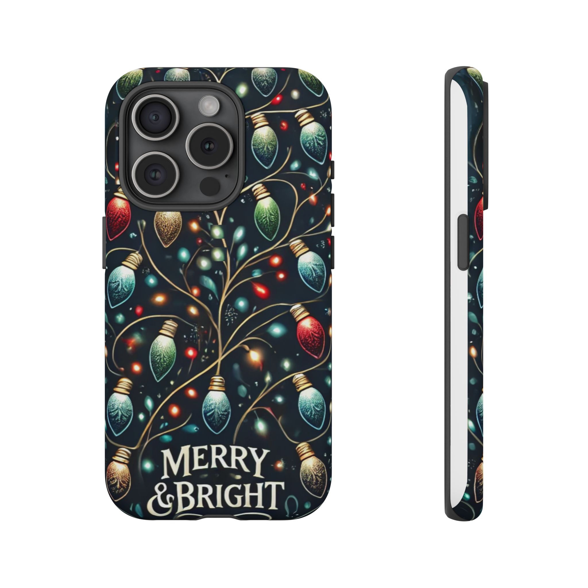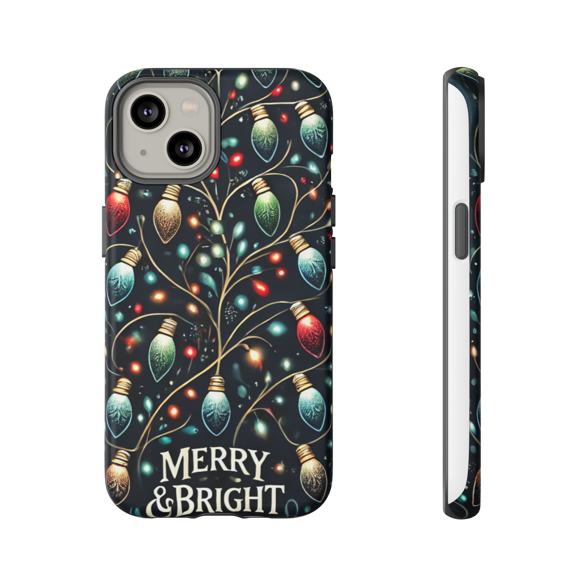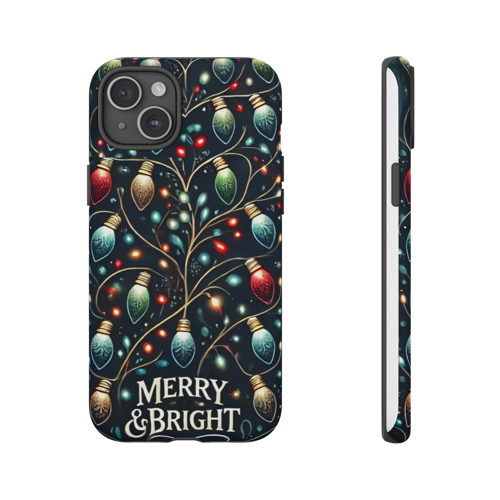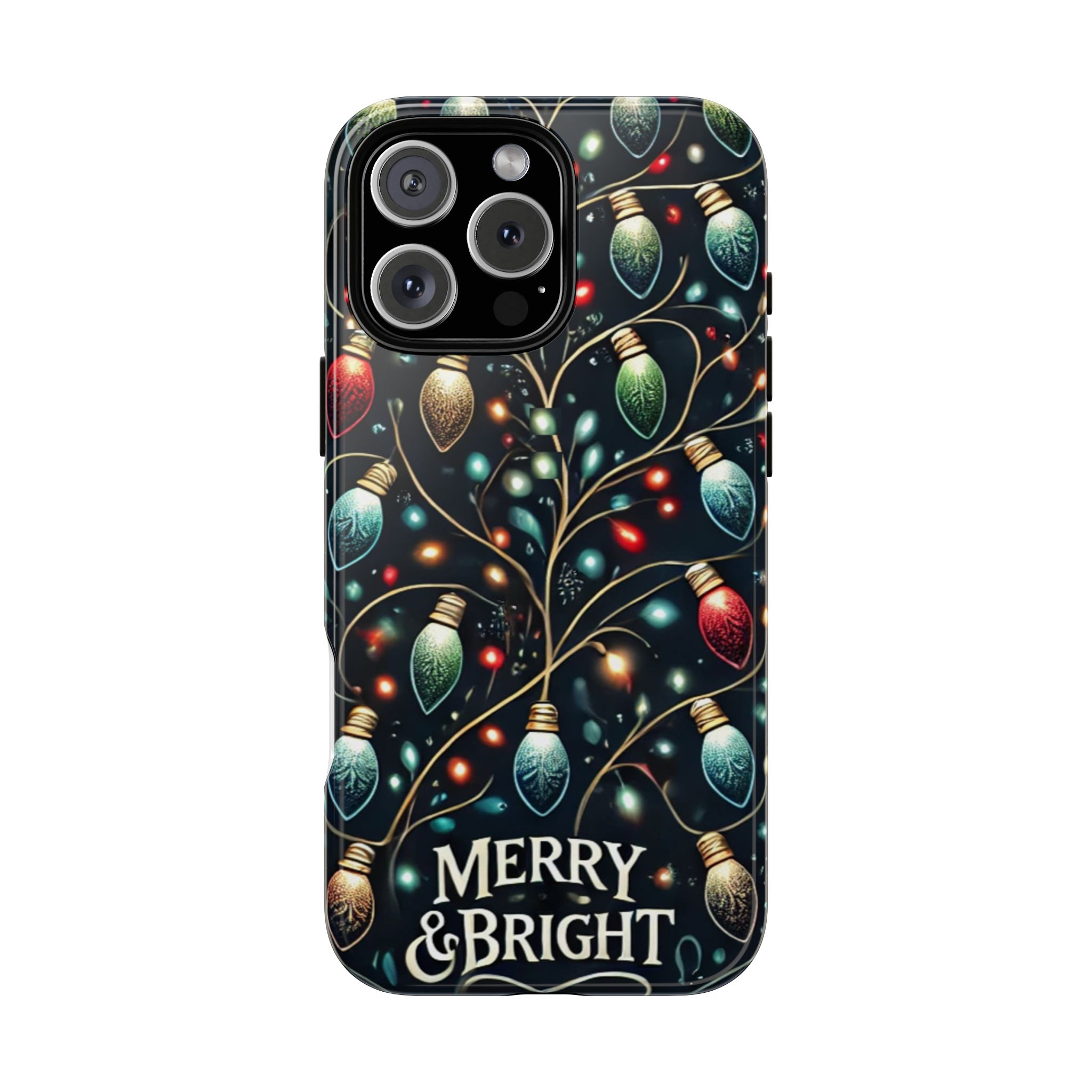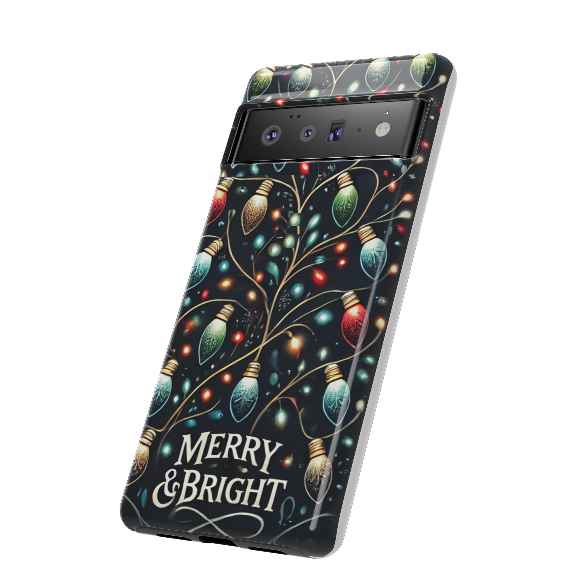 Vibrant Festive Lights Phone Cover featuring a colorful Christmas lights pattern on a dark background with a twinkling effect, adding a touch of holiday sparkle. Made of durable and impact-resistant materials, this phone case provides excellent protection against drops and tears. Ideal for adults looking to add a festive touch to their phone during the holiday season.
