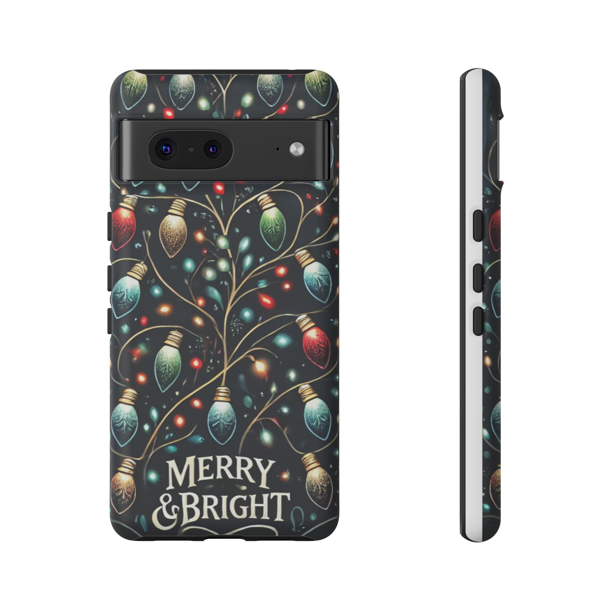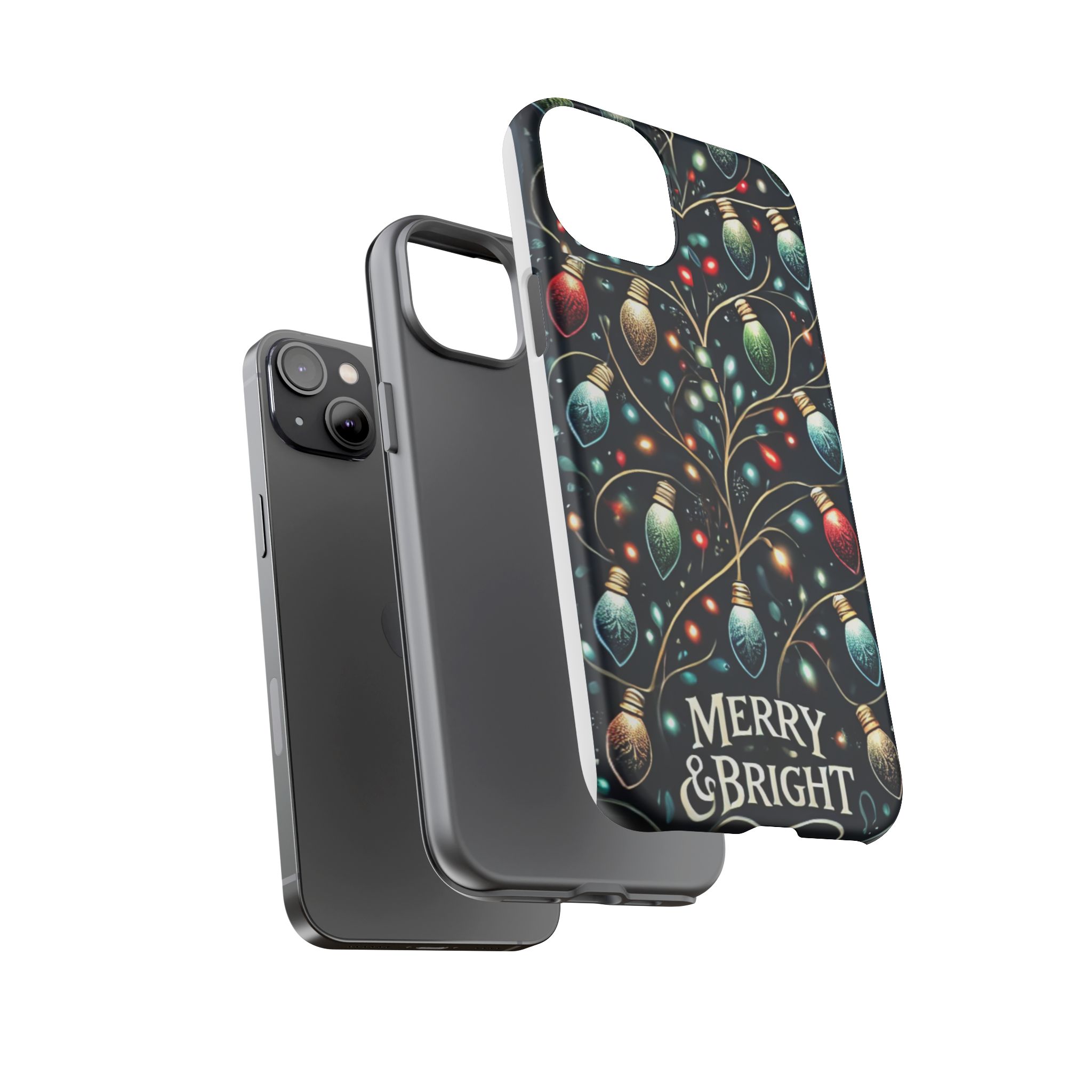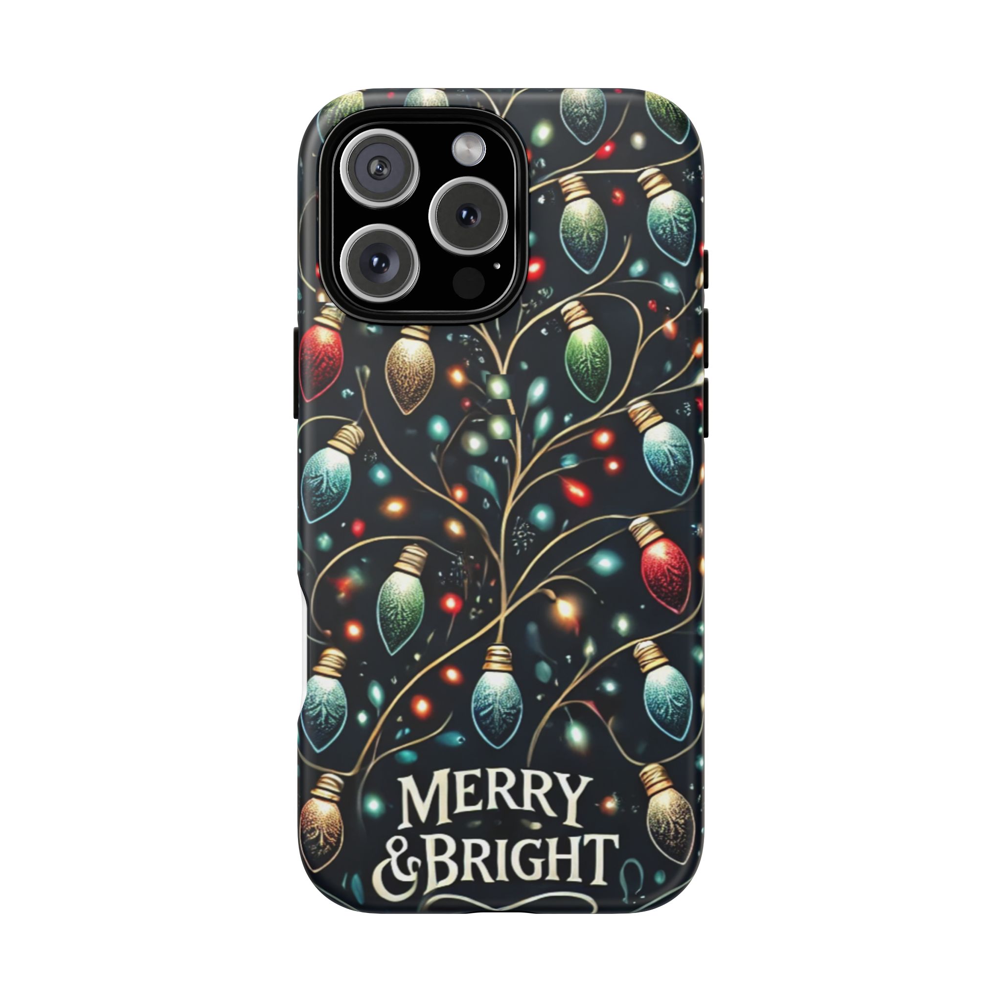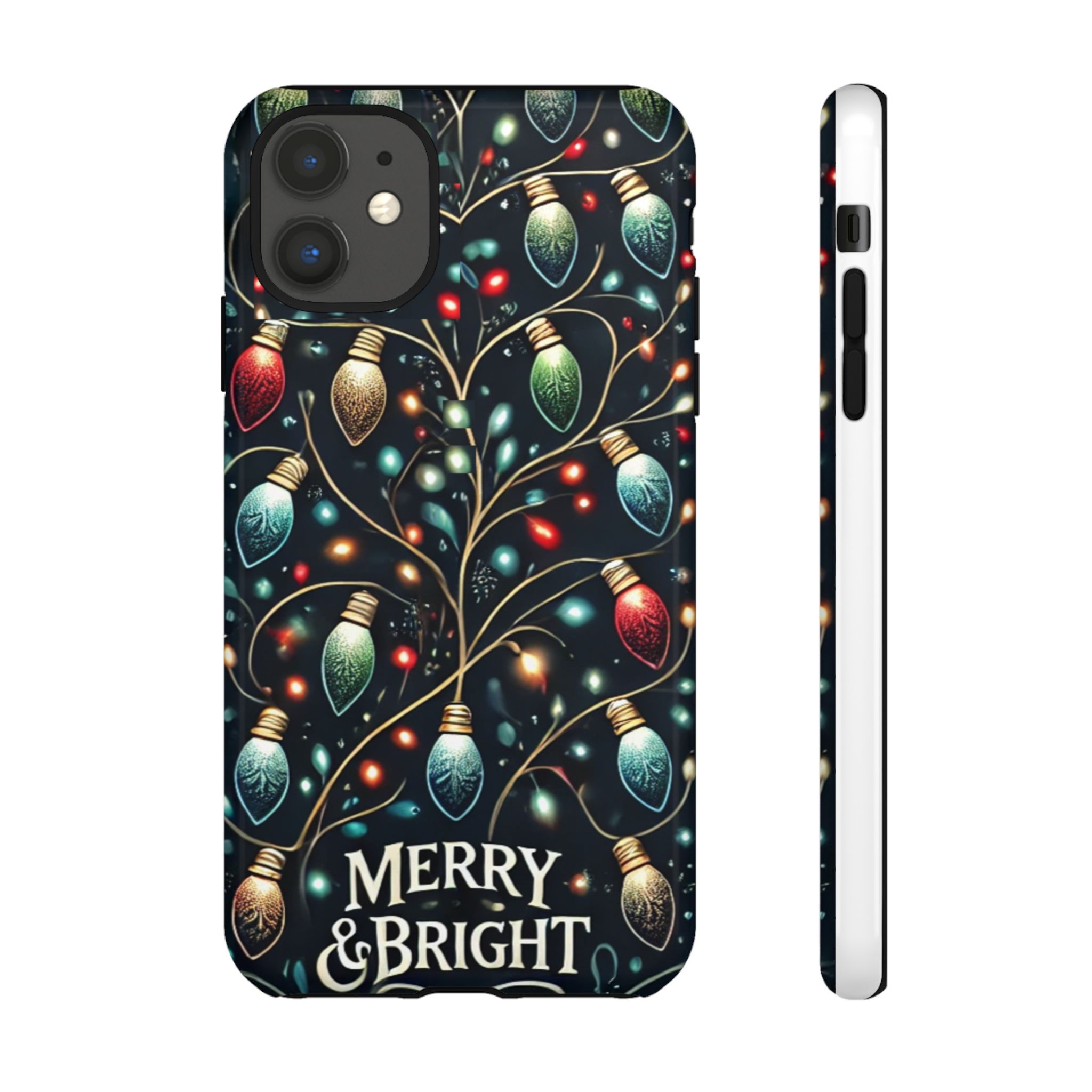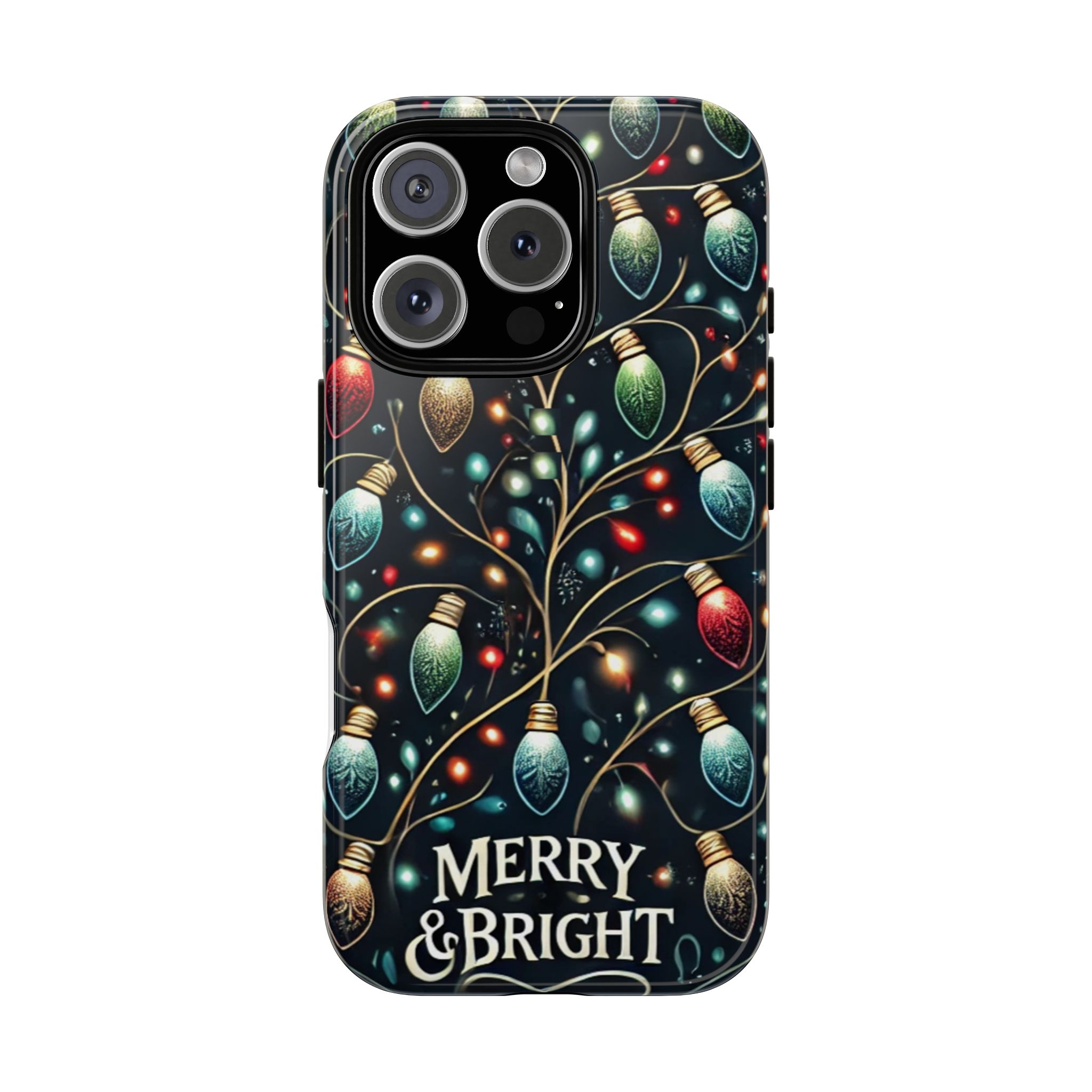 Vibrant Festive Lights Phone Cover featuring a colorful Christmas lights pattern on a dark background with a twinkling effect, adding a touch of holiday sparkle. Made of durable and impact-resistant materials, this phone case provides excellent protection against drops and tears. Ideal for adults looking to add a festive touch to their phone during the holiday season.