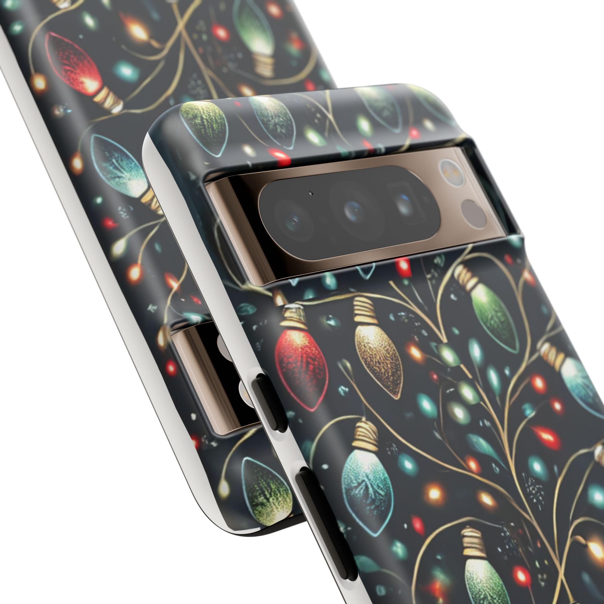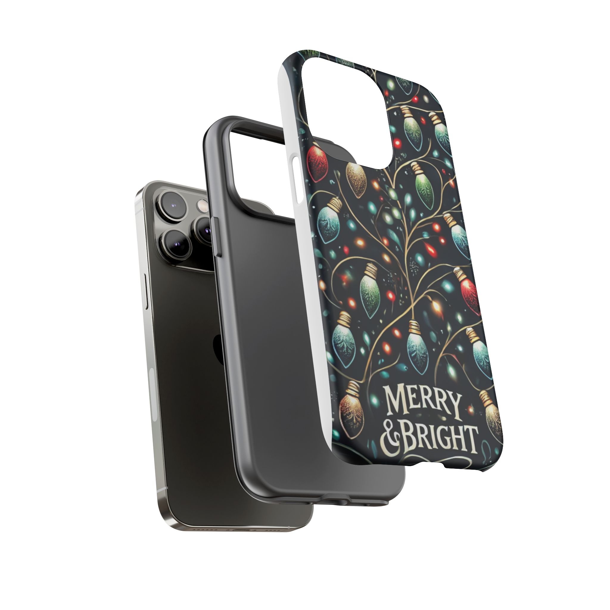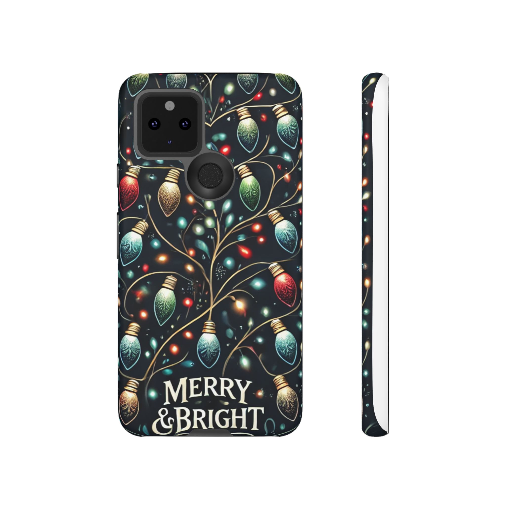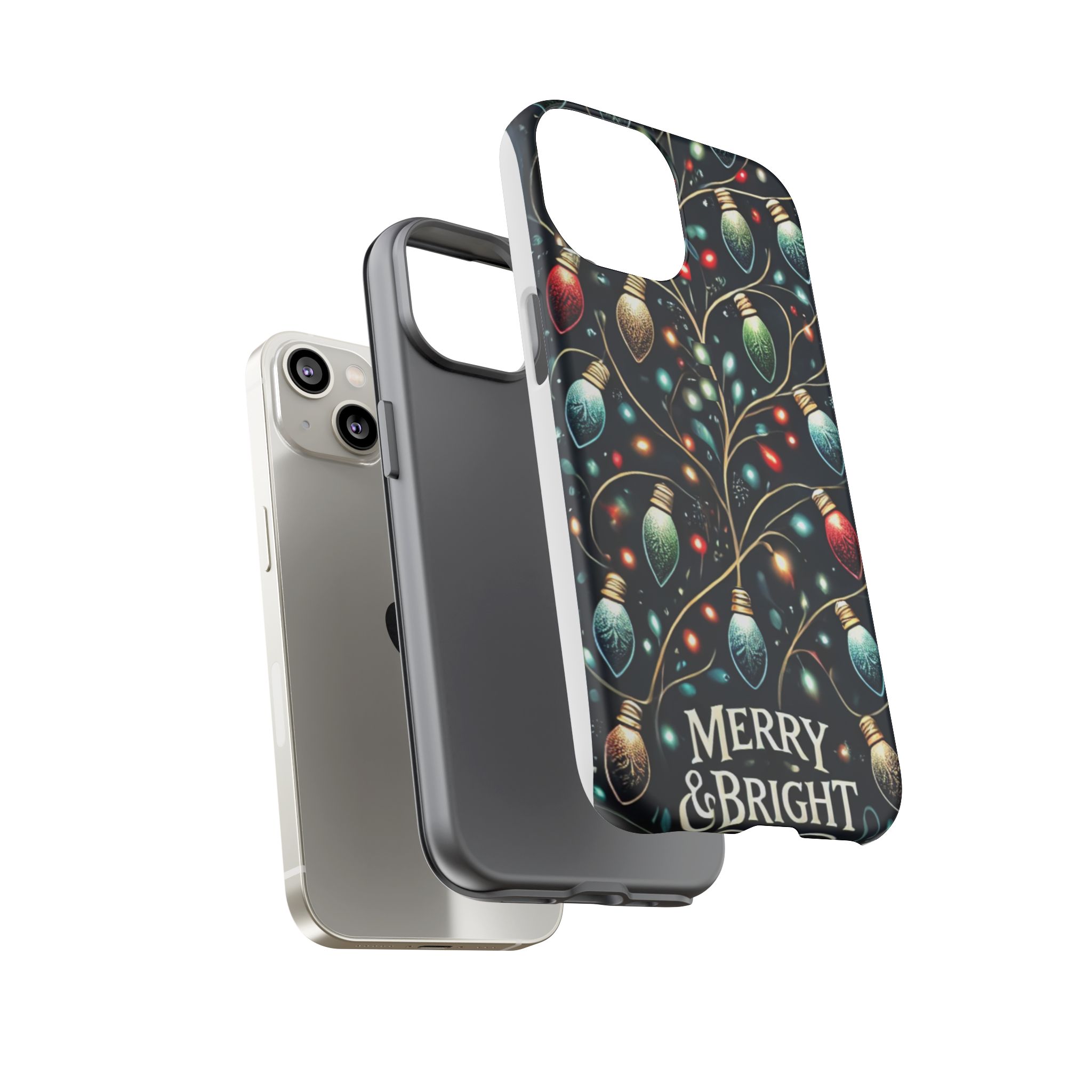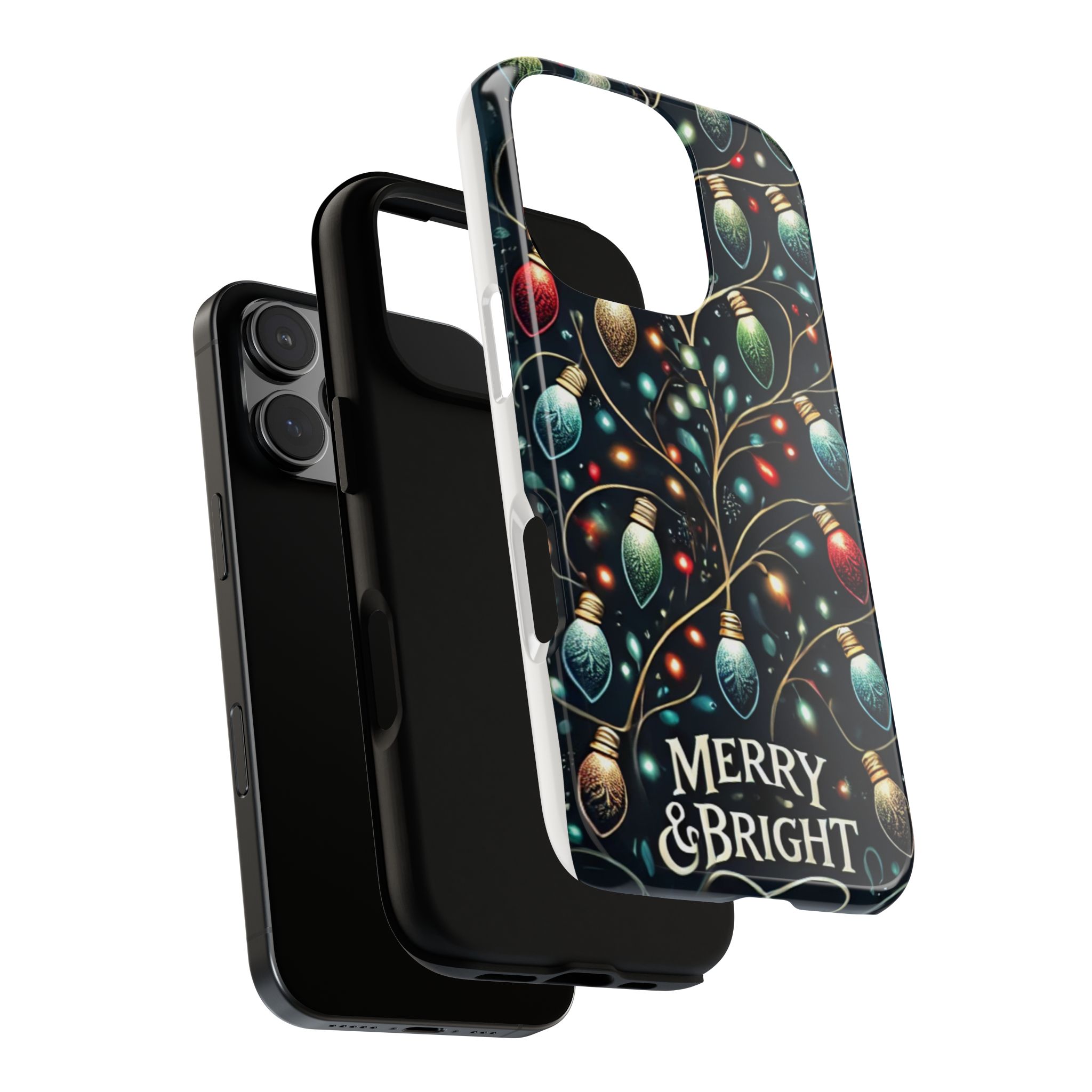 Vibrant Festive Lights Phone Cover featuring a colorful Christmas lights pattern on a dark background with a twinkling effect, adding a touch of holiday sparkle. Made of durable and impact-resistant materials, this phone case provides excellent protection against drops and tears. Ideal for adults looking to add a festive touch to their phone during the holiday season.