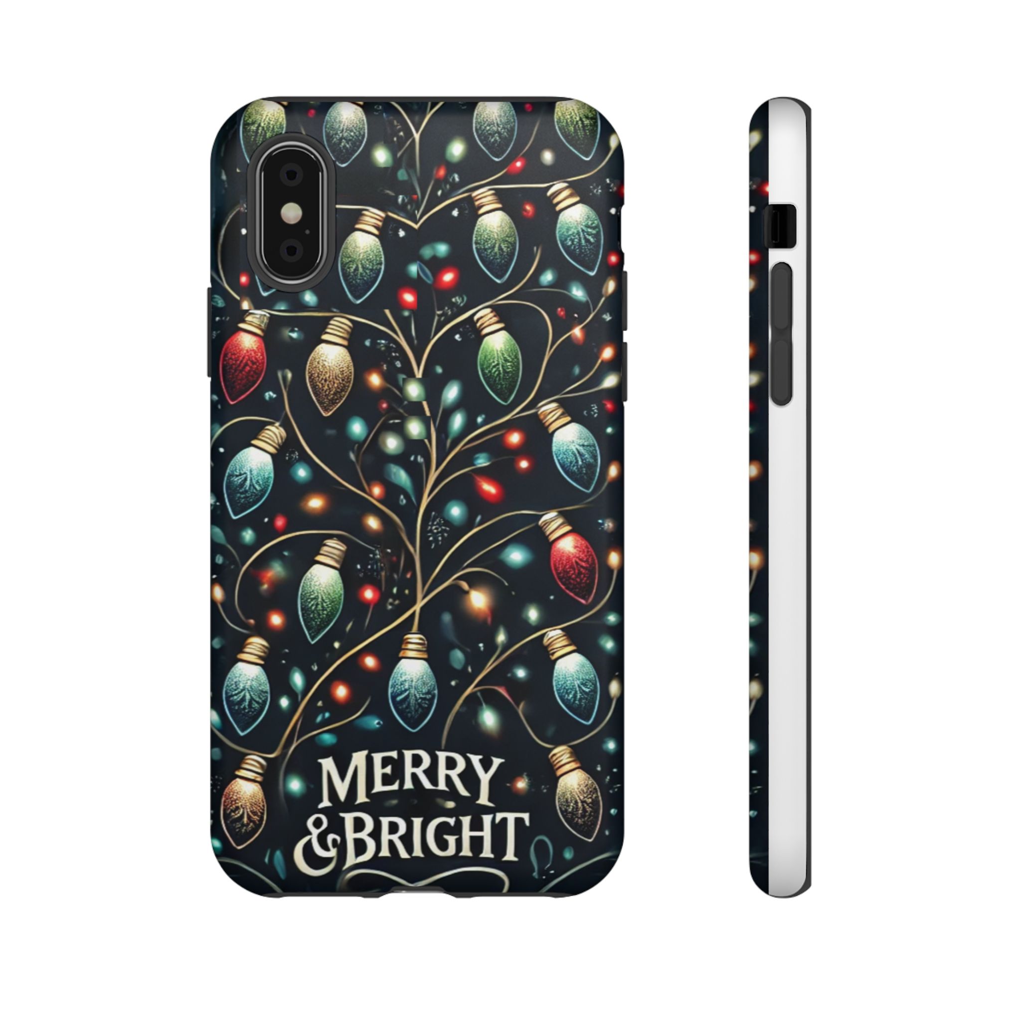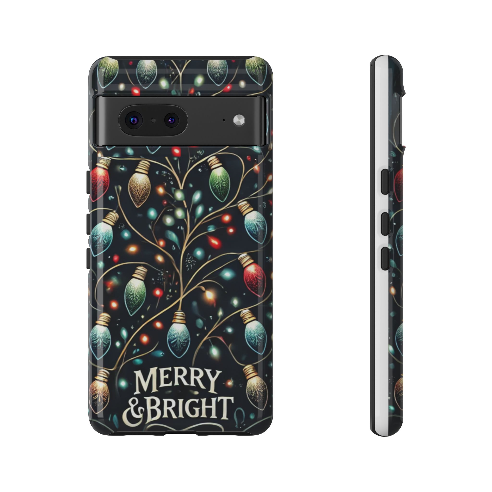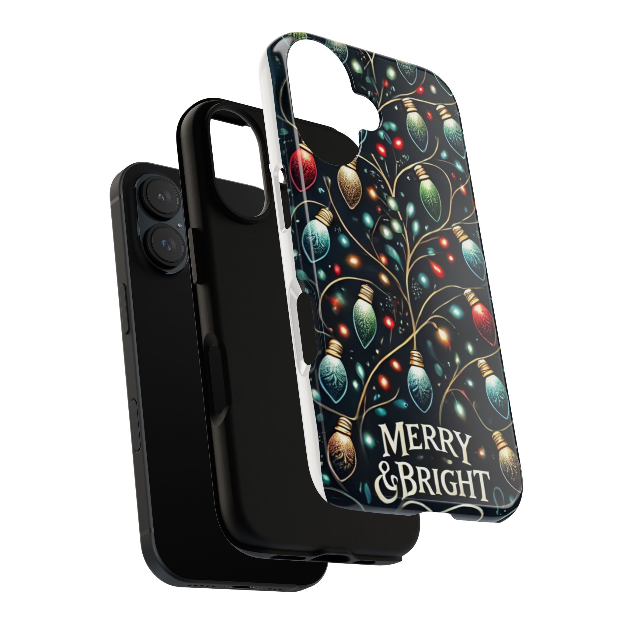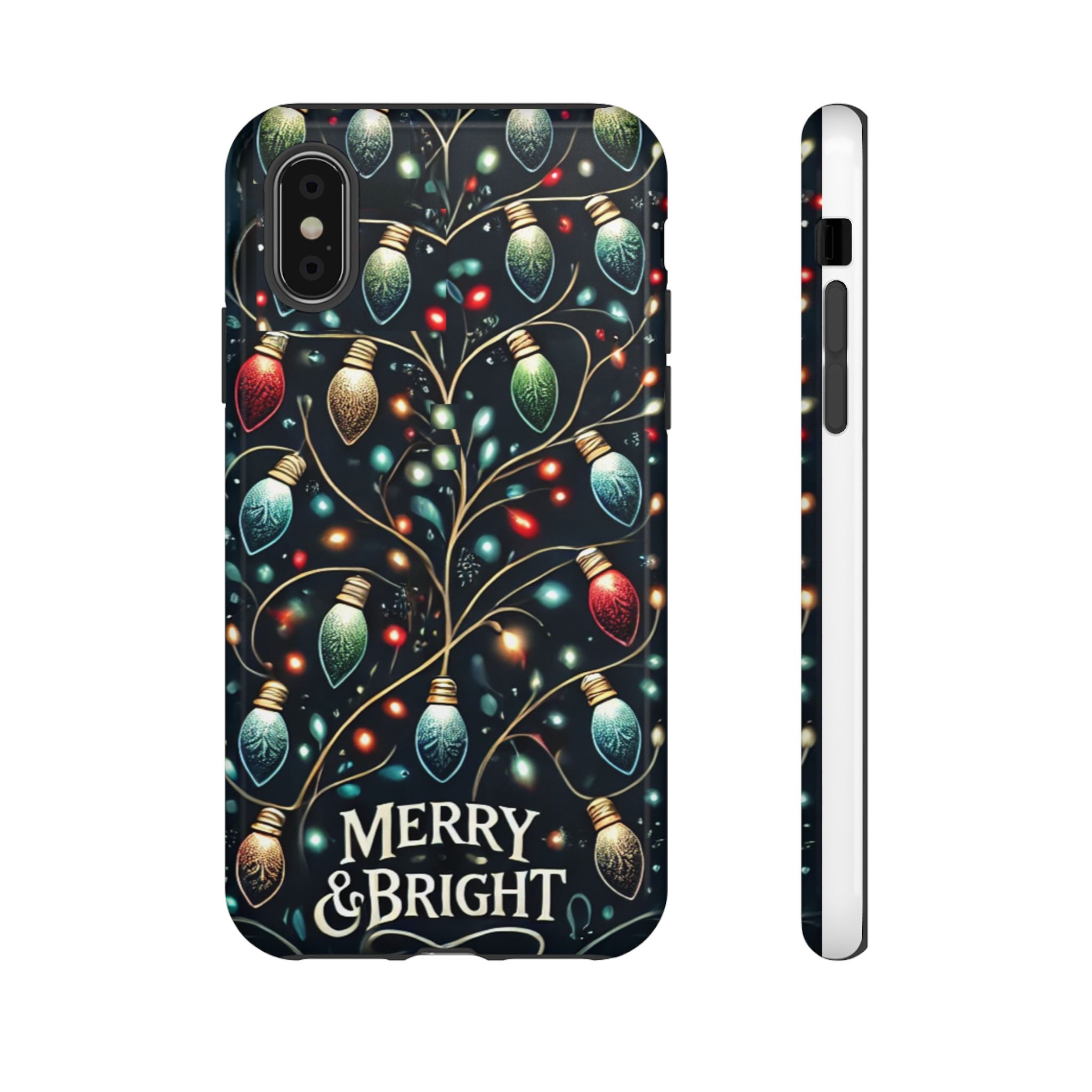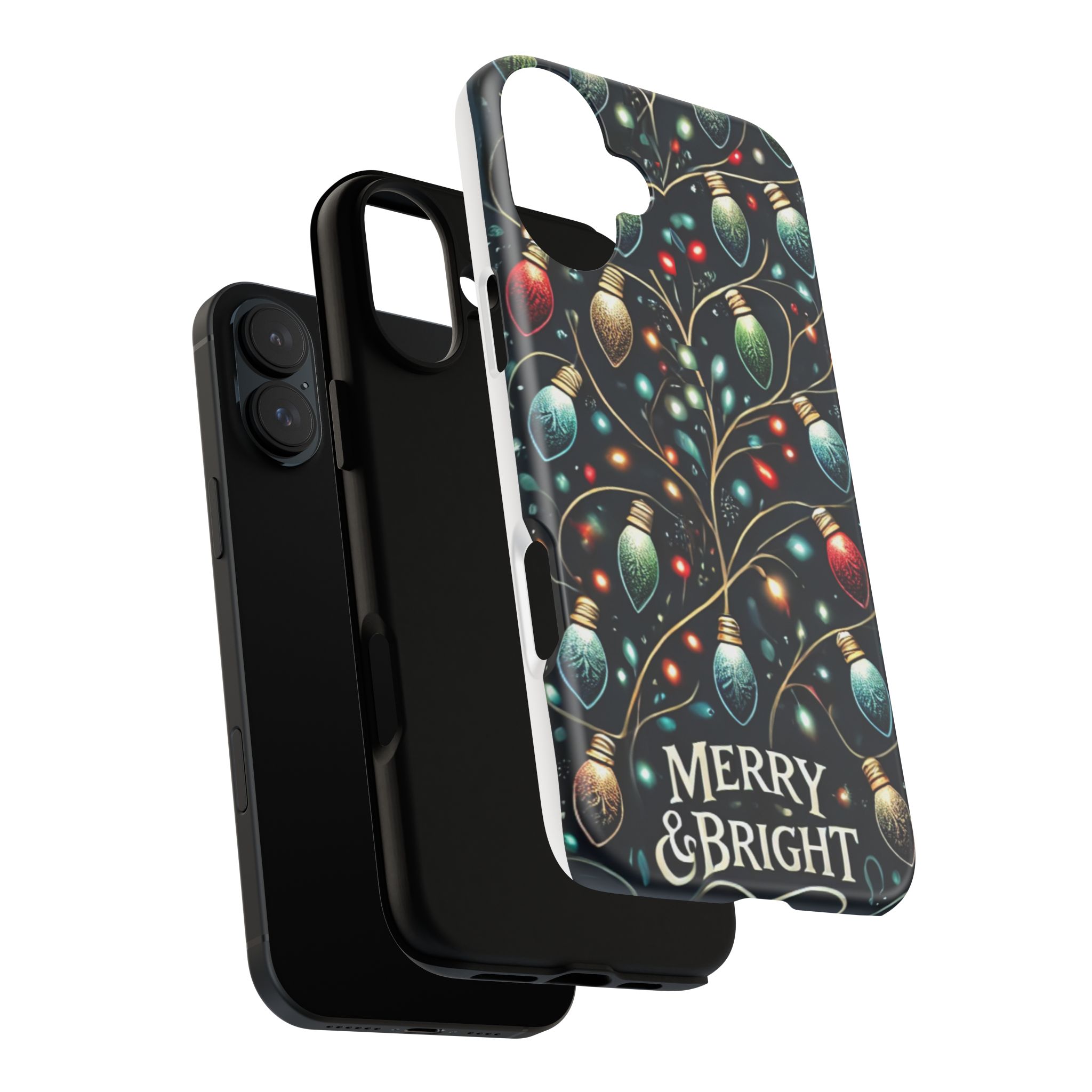 Vibrant Festive Lights Phone Cover featuring a colorful Christmas lights pattern on a dark background with a twinkling effect, adding a touch of holiday sparkle. Made of durable and impact-resistant materials, this phone case provides excellent protection against drops and tears. Ideal for adults looking to add a festive touch to their phone during the holiday season.