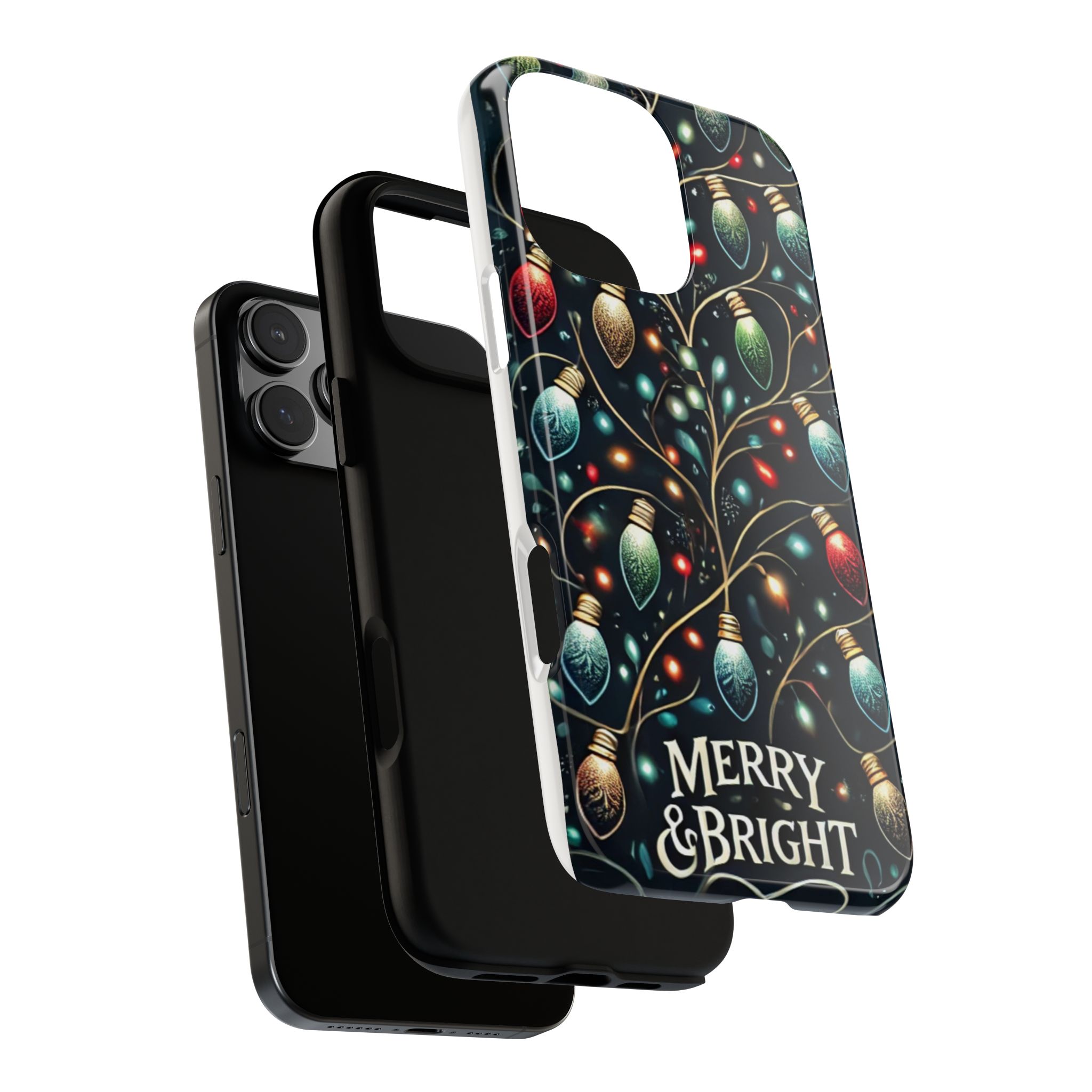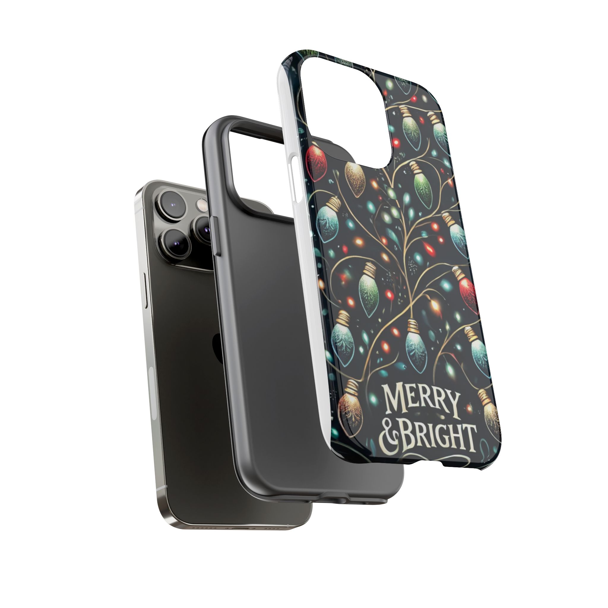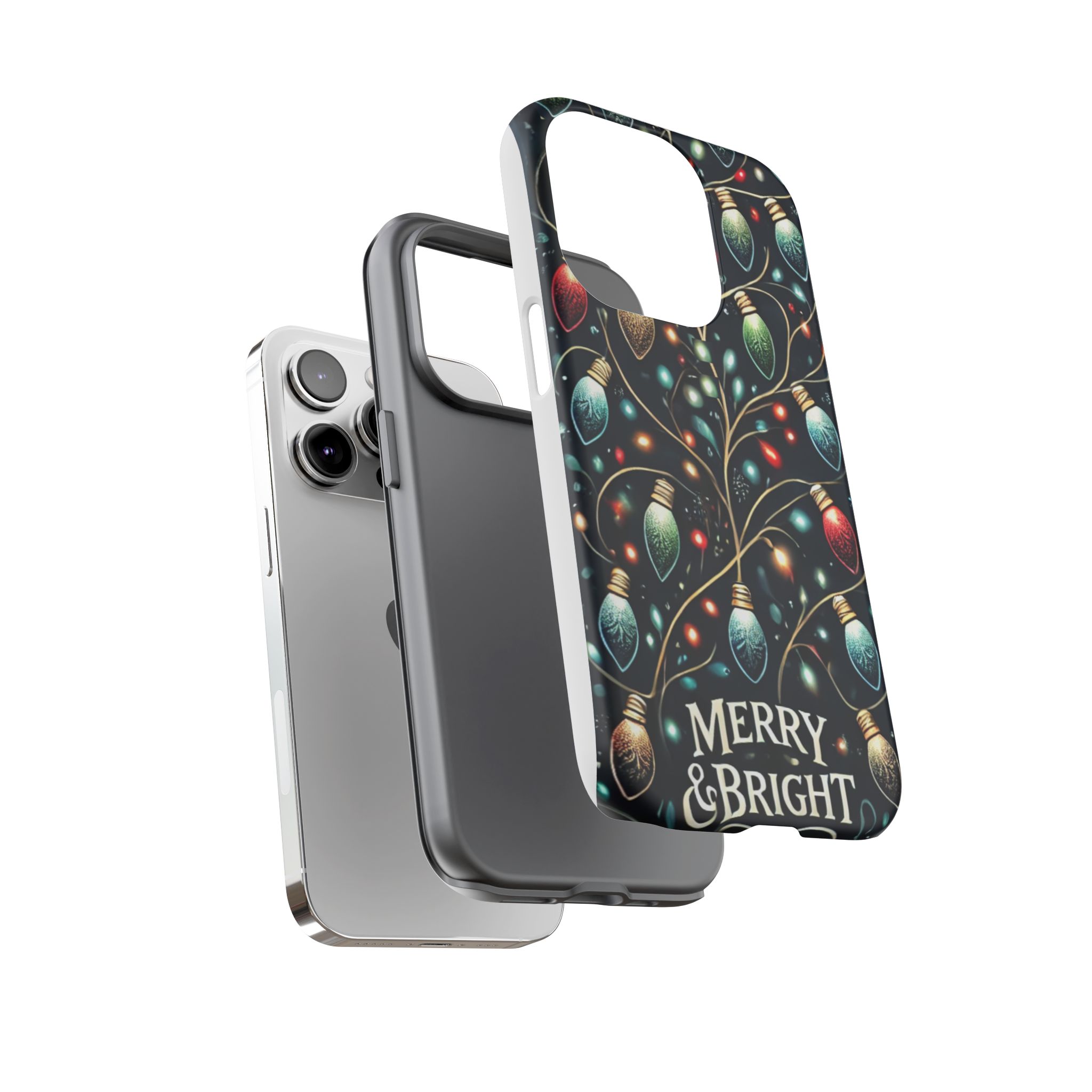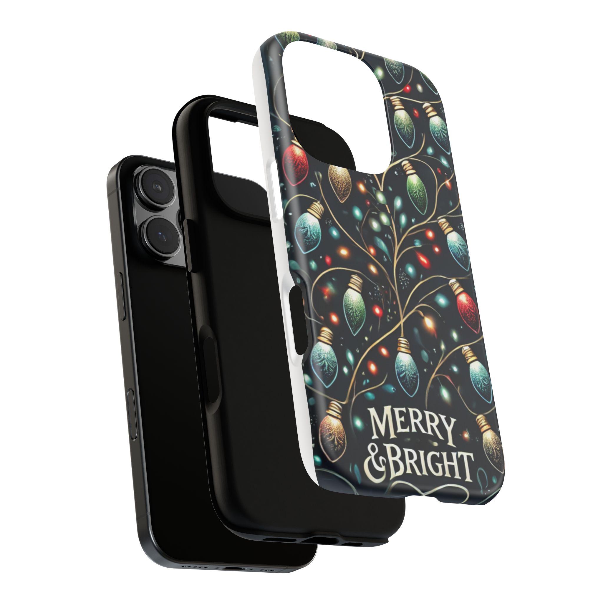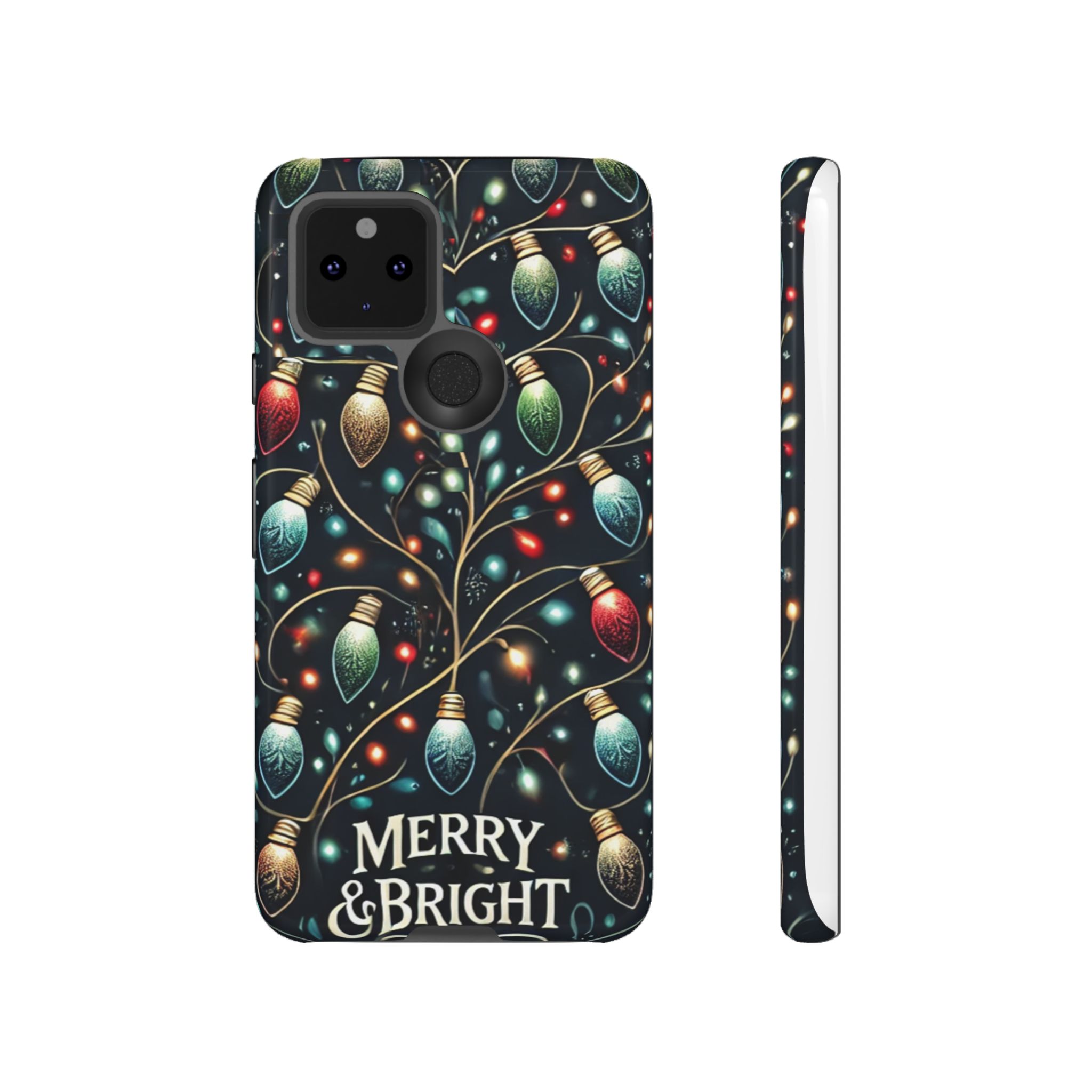 Vibrant Festive Lights Phone Cover featuring a colorful Christmas lights pattern on a dark background with a twinkling effect, adding a touch of holiday sparkle. Made of durable and impact-resistant materials, this phone case provides excellent protection against drops and tears. Ideal for adults looking to add a festive touch to their phone during the holiday season.