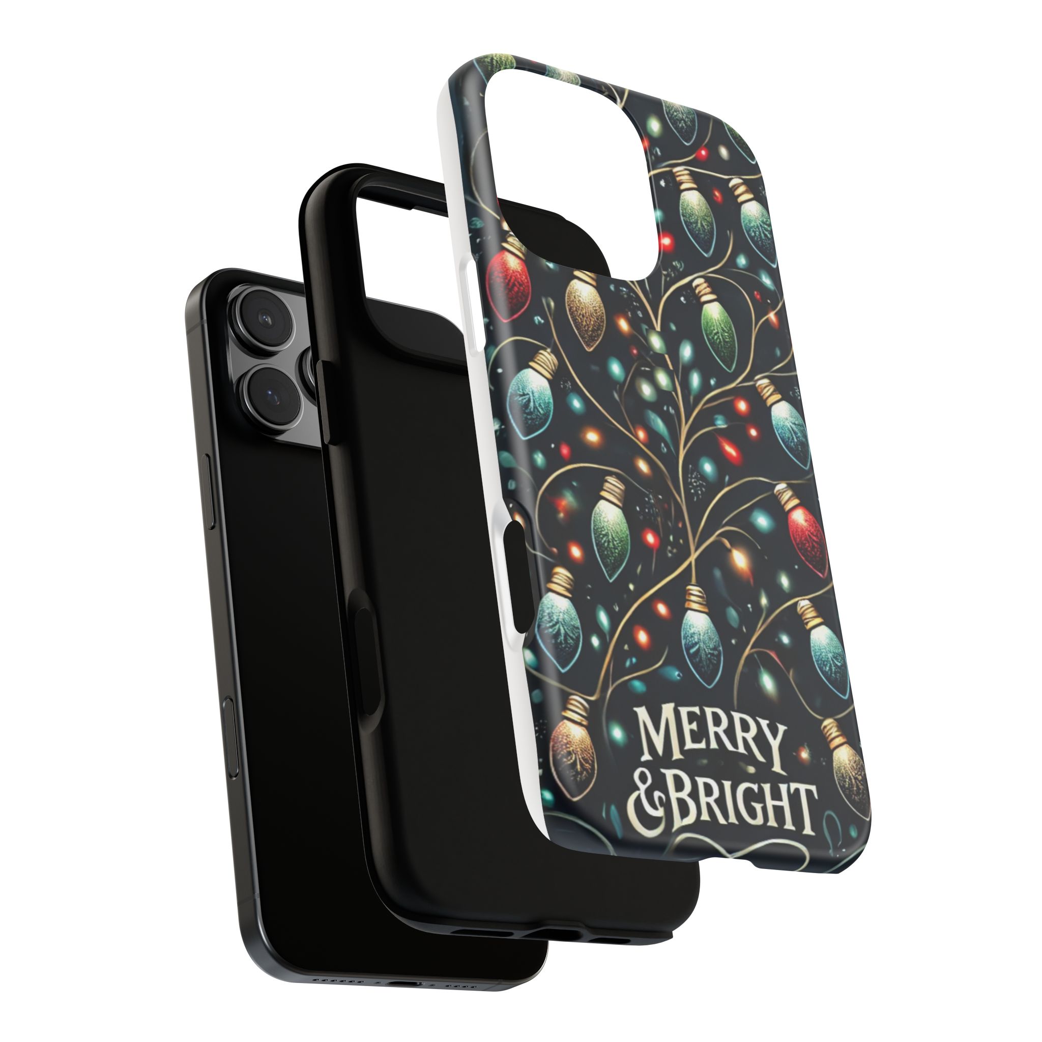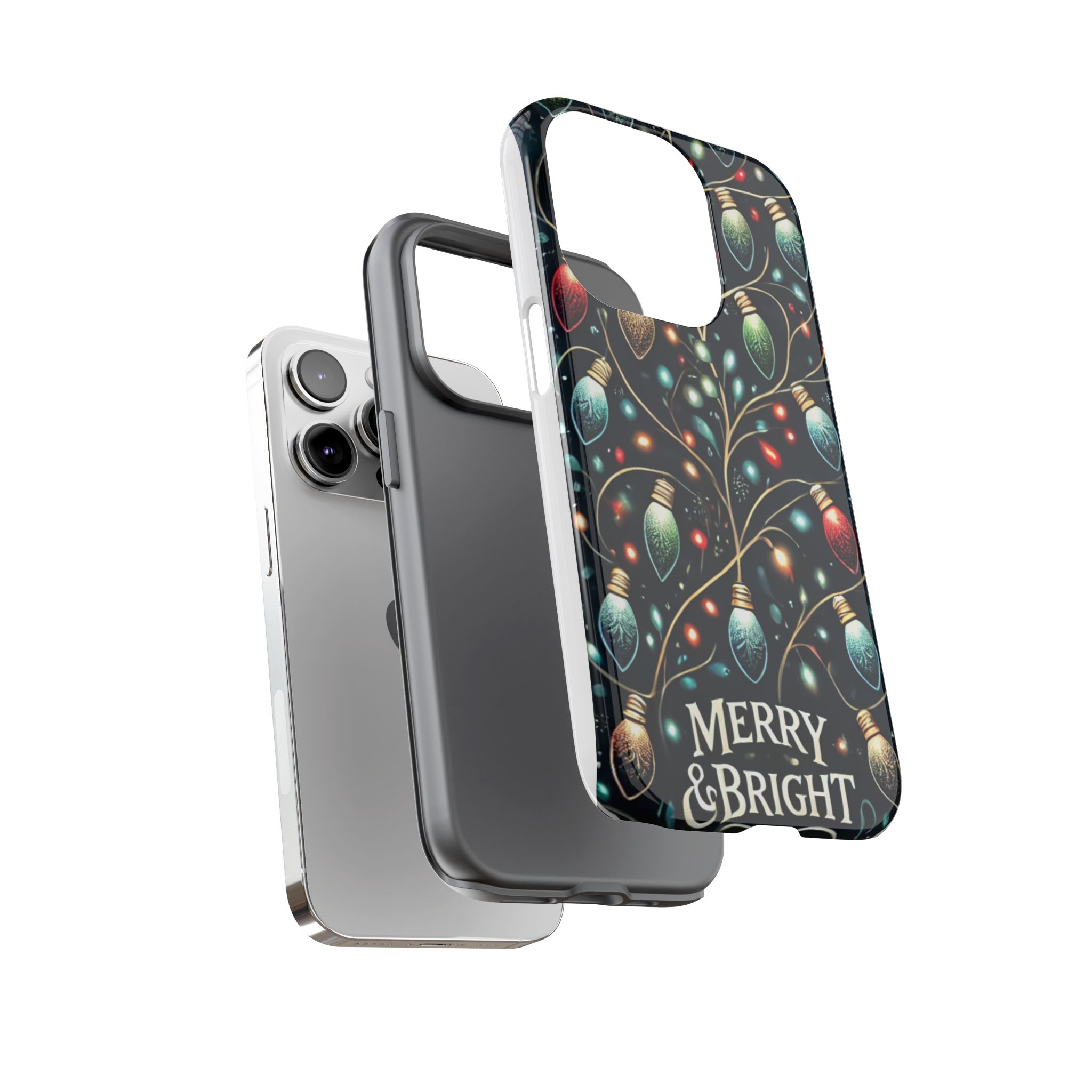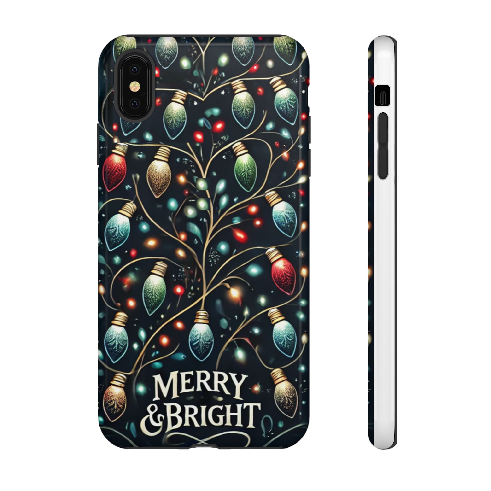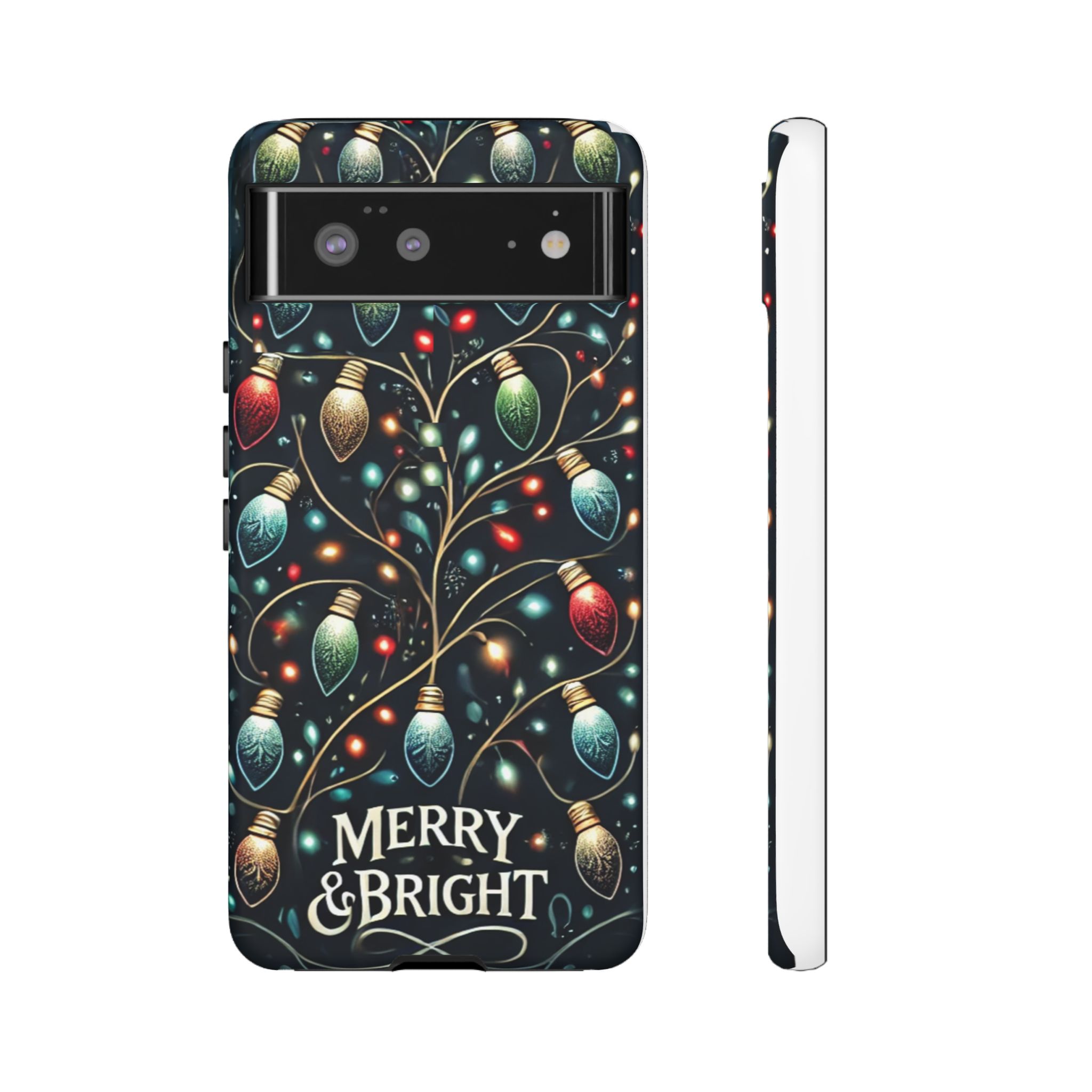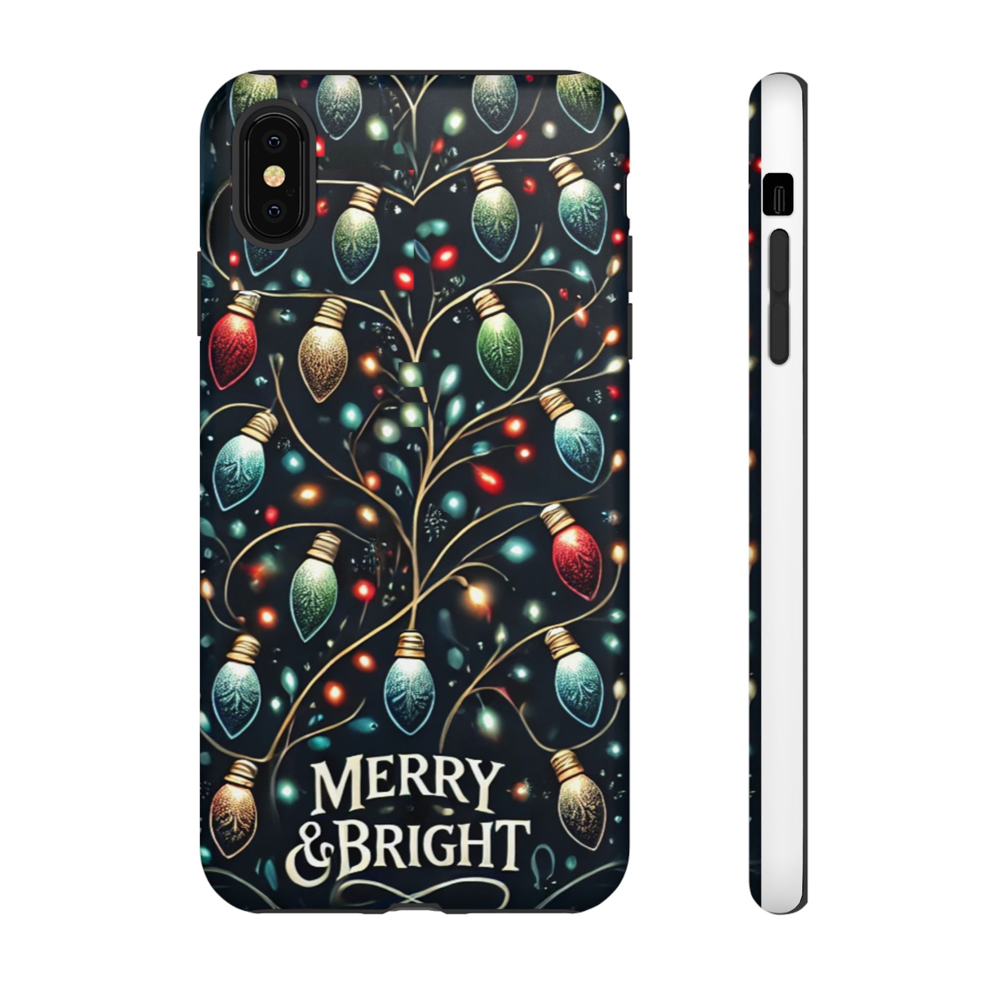 Vibrant Festive Lights Phone Cover featuring a colorful Christmas lights pattern on a dark background with a twinkling effect, adding a touch of holiday sparkle. Made of durable and impact-resistant materials, this phone case provides excellent protection against drops and tears. Ideal for adults looking to add a festive touch to their phone during the holiday season.