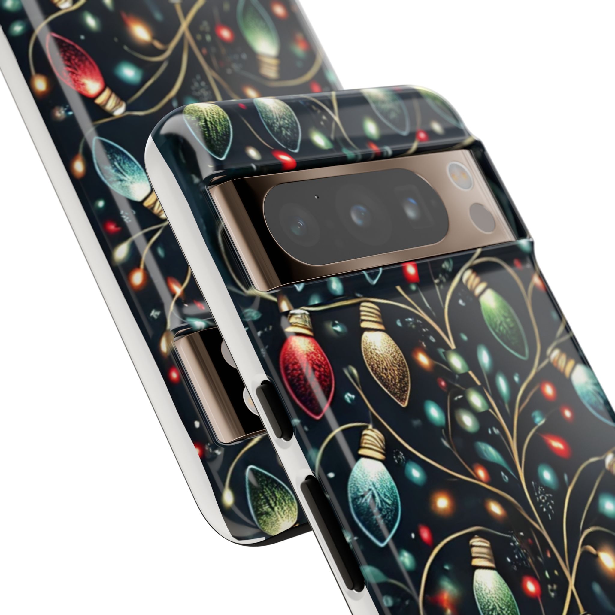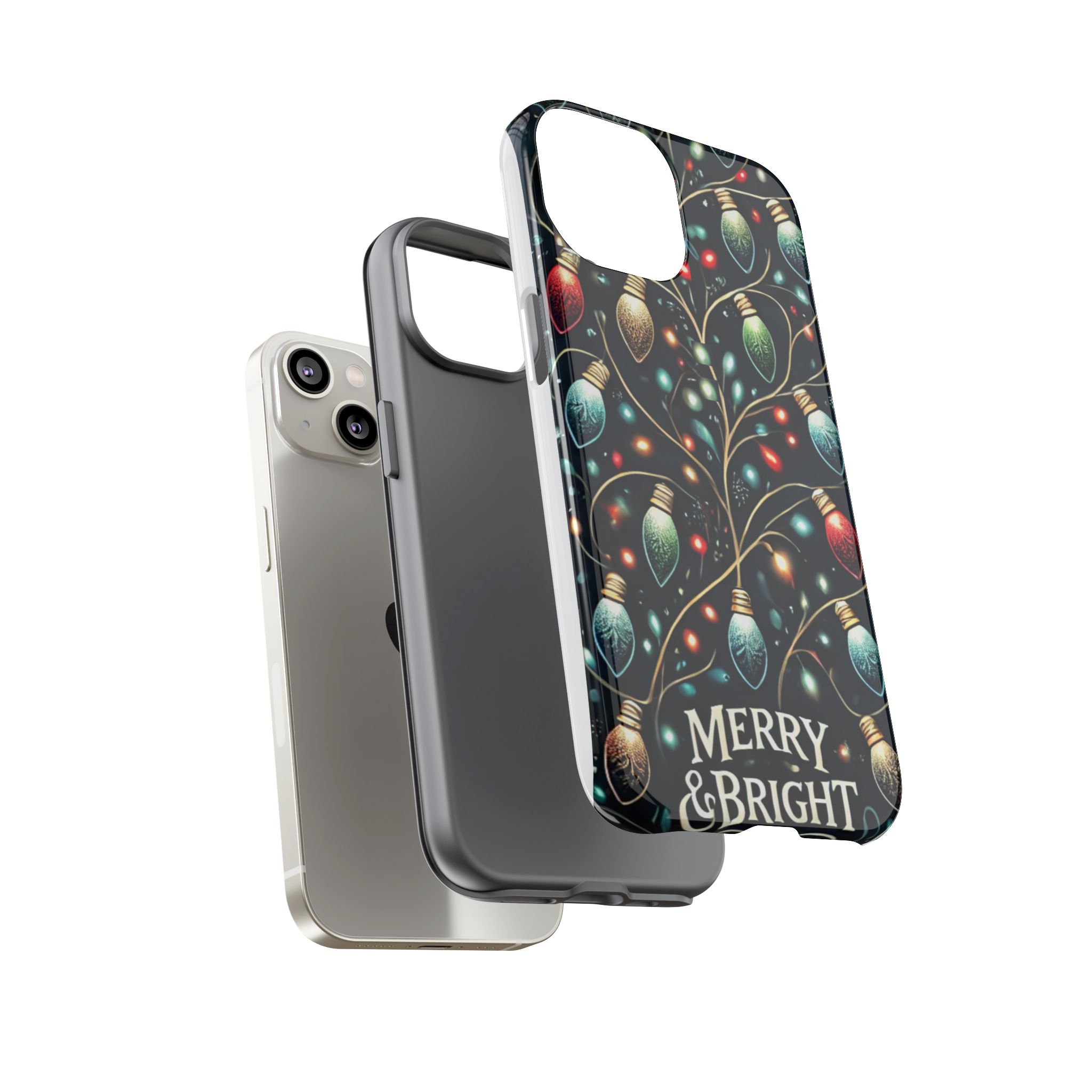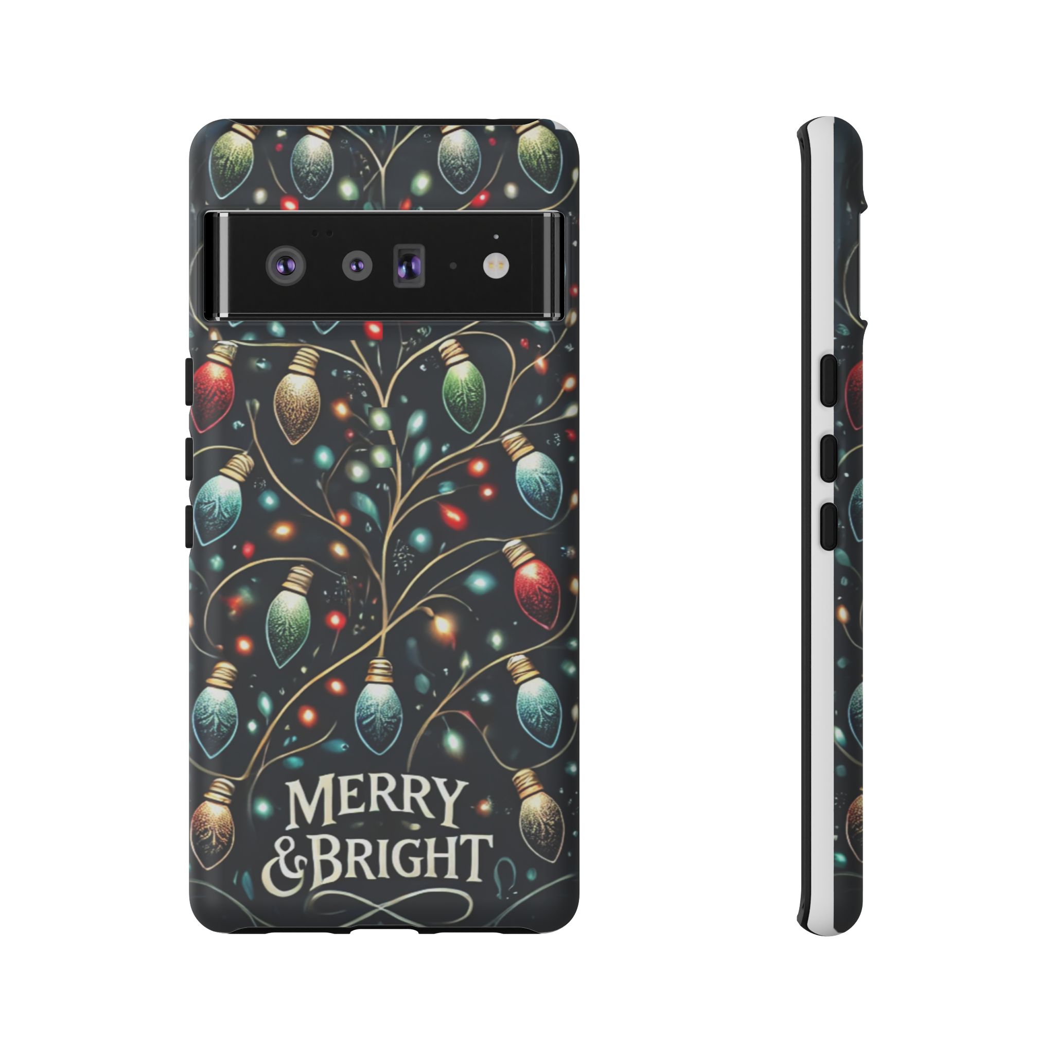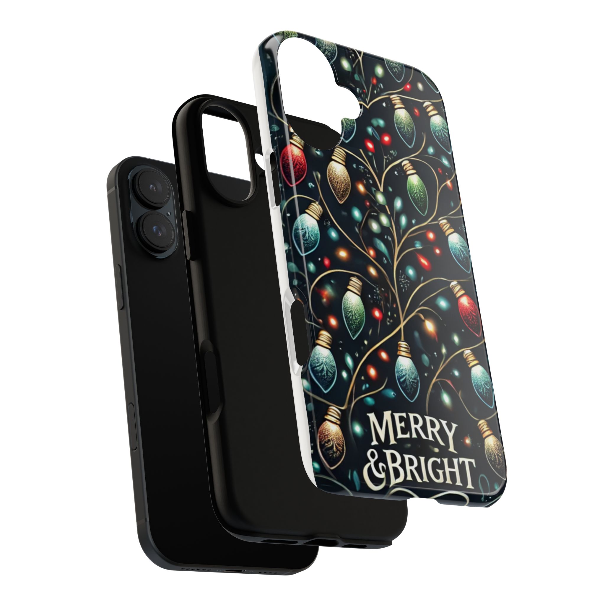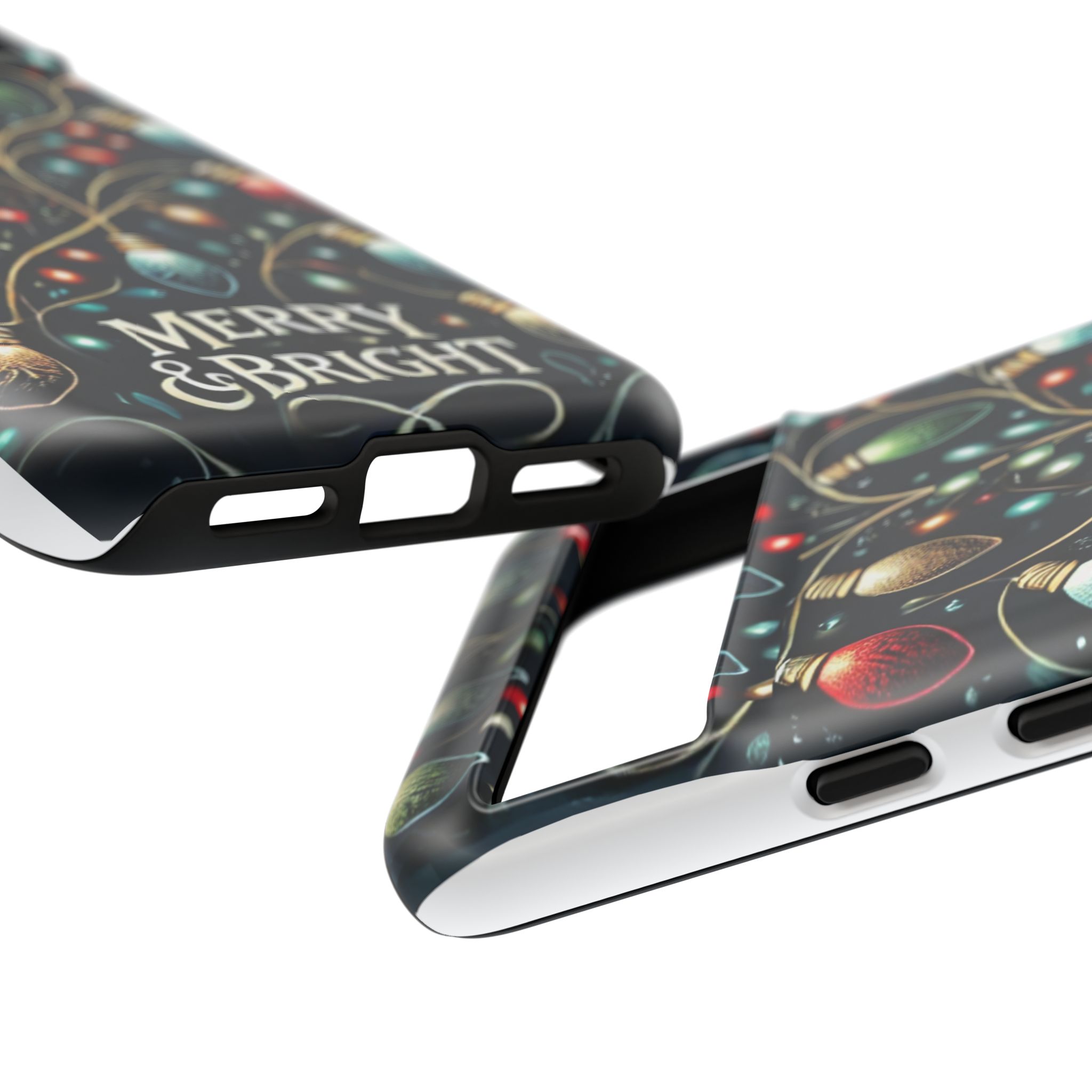 Vibrant Festive Lights Phone Cover featuring a colorful Christmas lights pattern on a dark background with a twinkling effect, adding a touch of holiday sparkle. Made of durable and impact-resistant materials, this phone case provides excellent protection against drops and tears. Ideal for adults looking to add a festive touch to their phone during the holiday season.