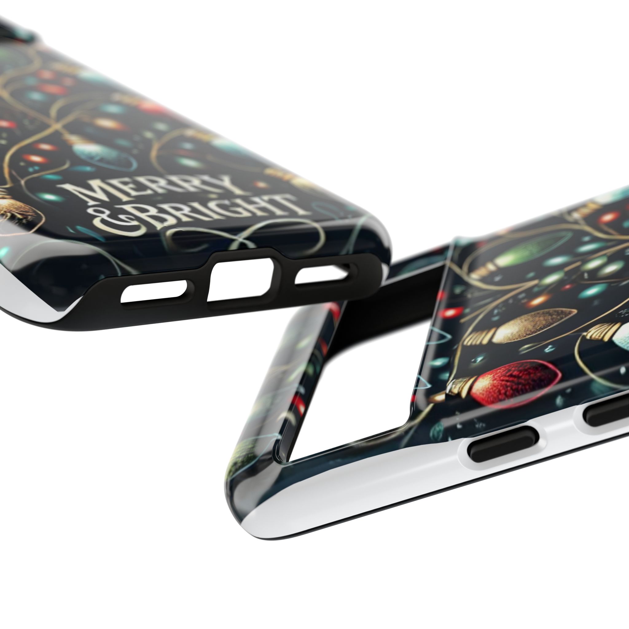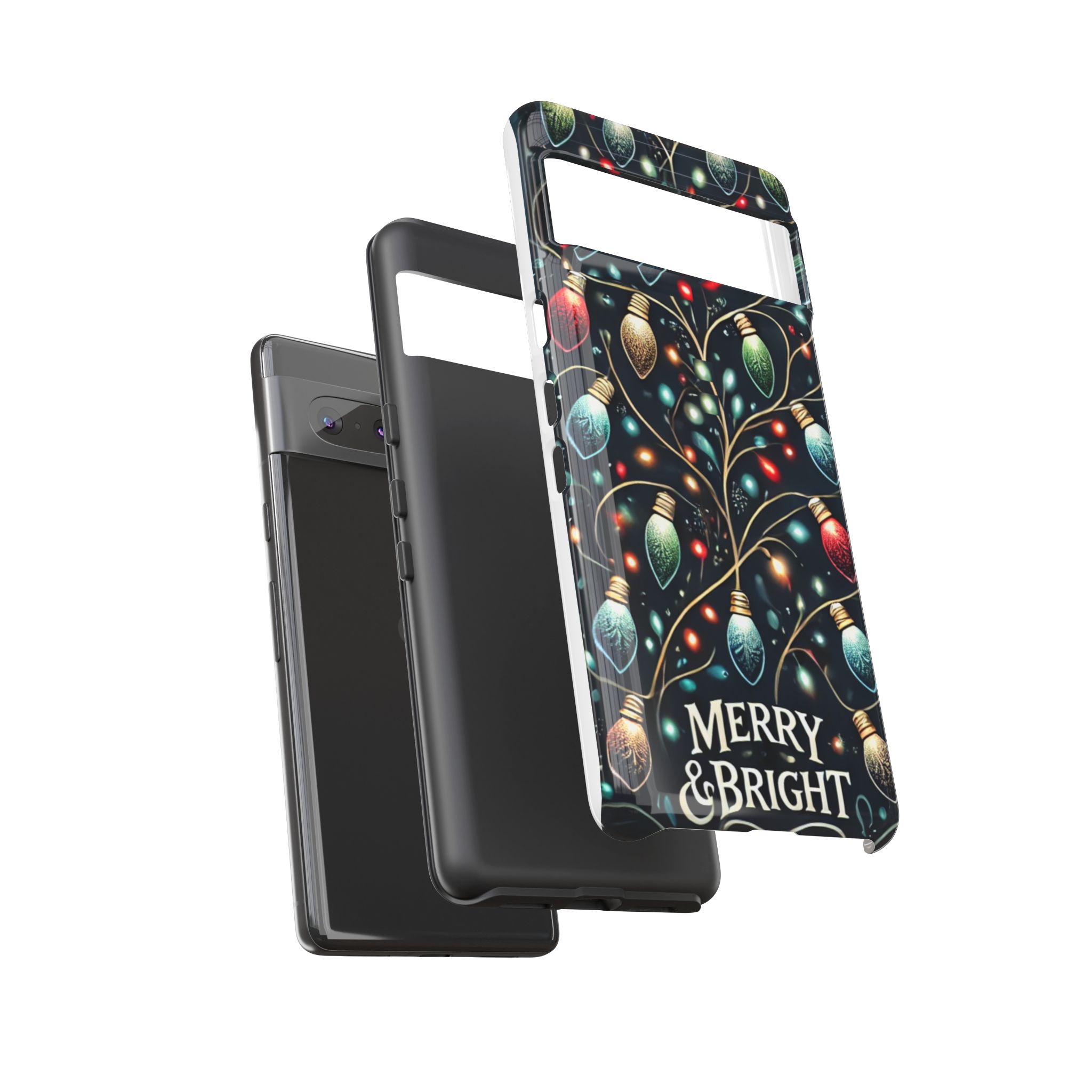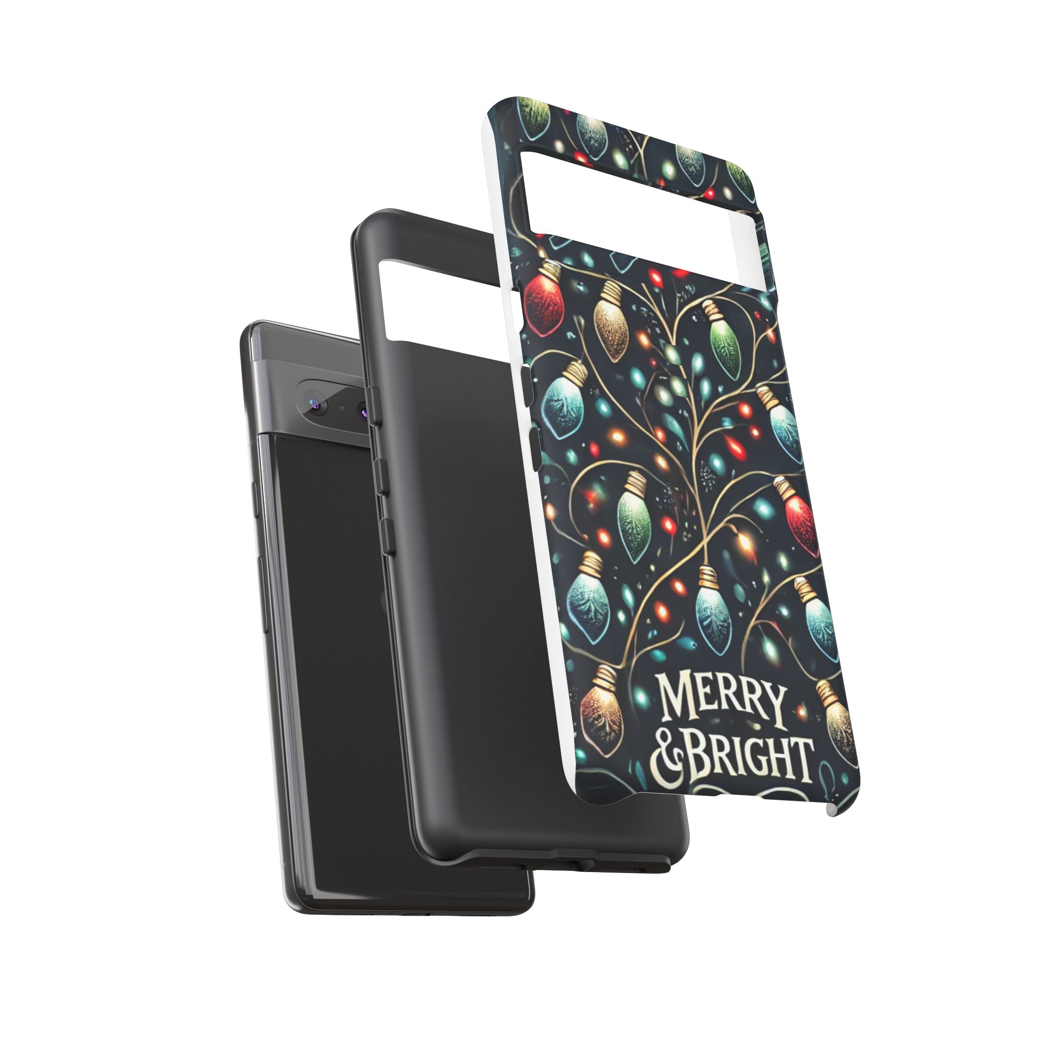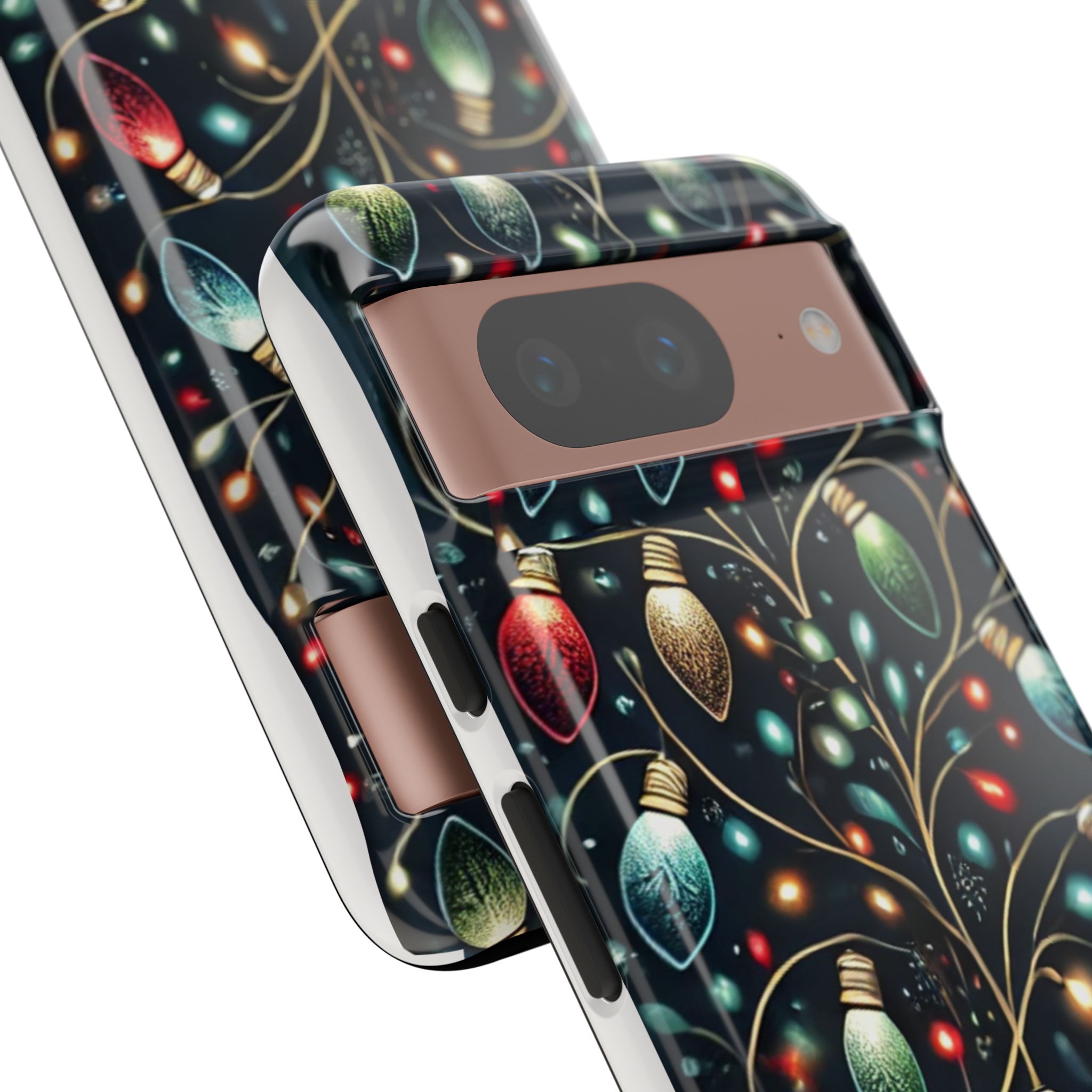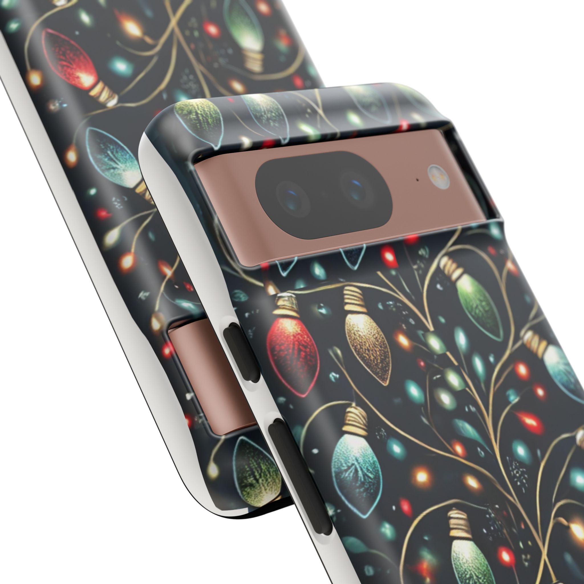 Vibrant Festive Lights Phone Cover featuring a colorful Christmas lights pattern on a dark background with a twinkling effect, adding a touch of holiday sparkle. Made of durable and impact-resistant materials, this phone case provides excellent protection against drops and tears. Ideal for adults looking to add a festive touch to their phone during the holiday season.