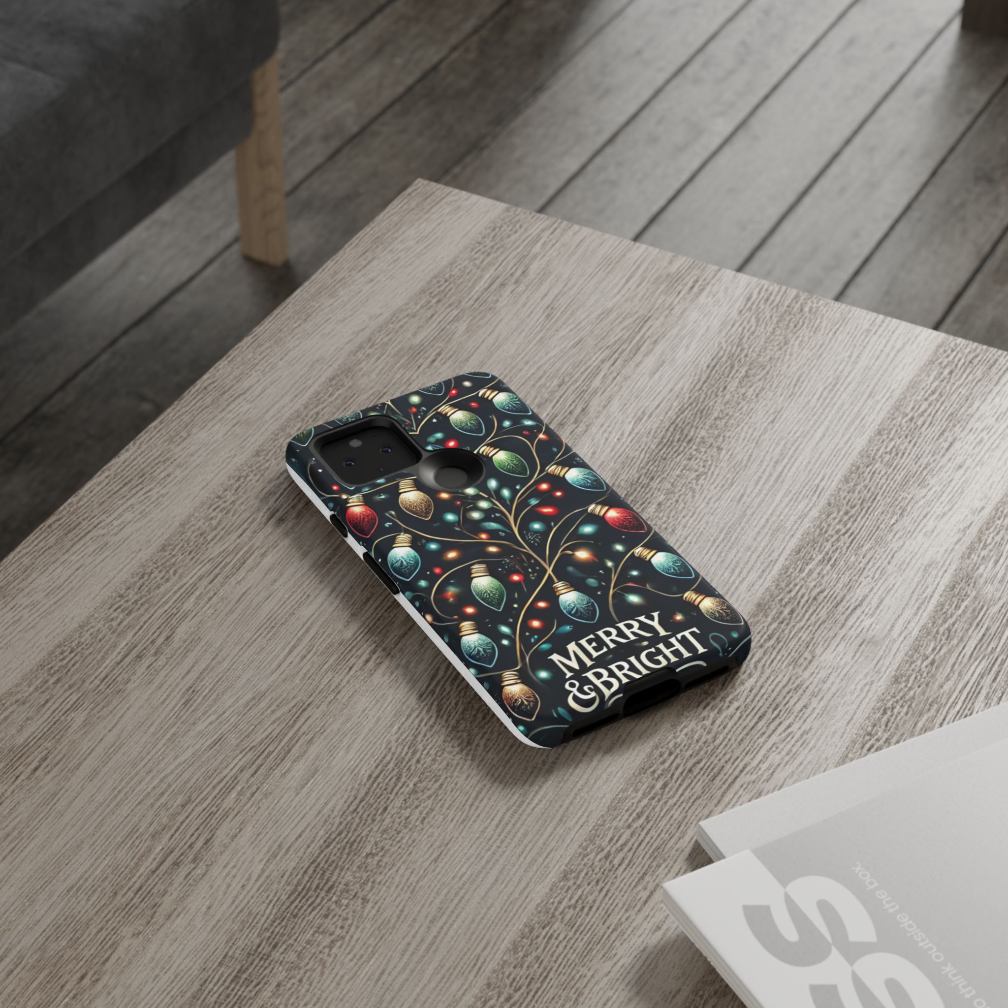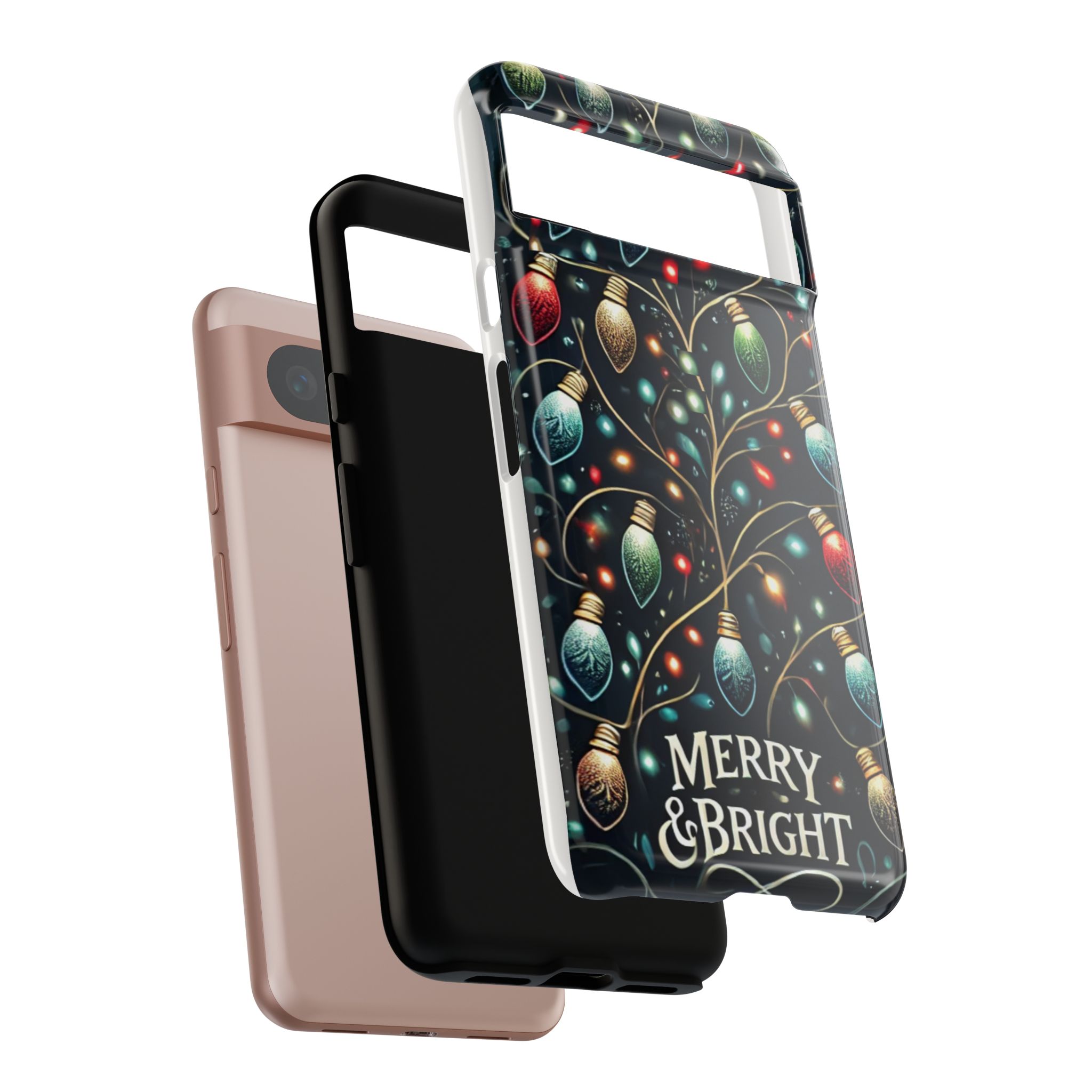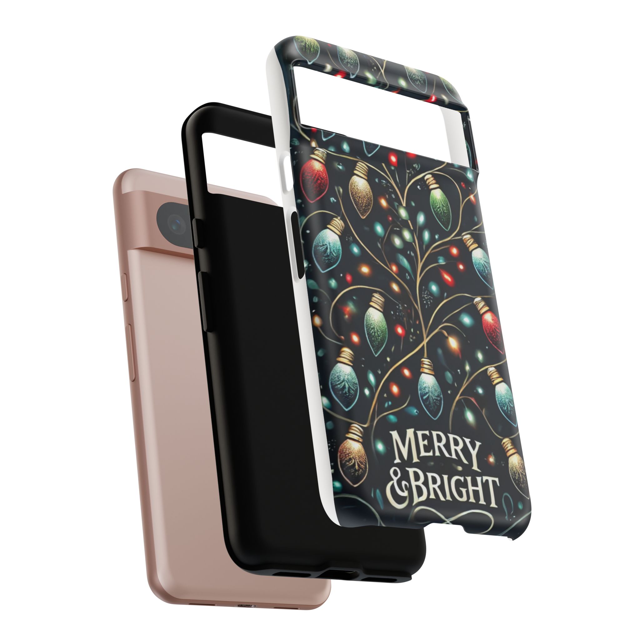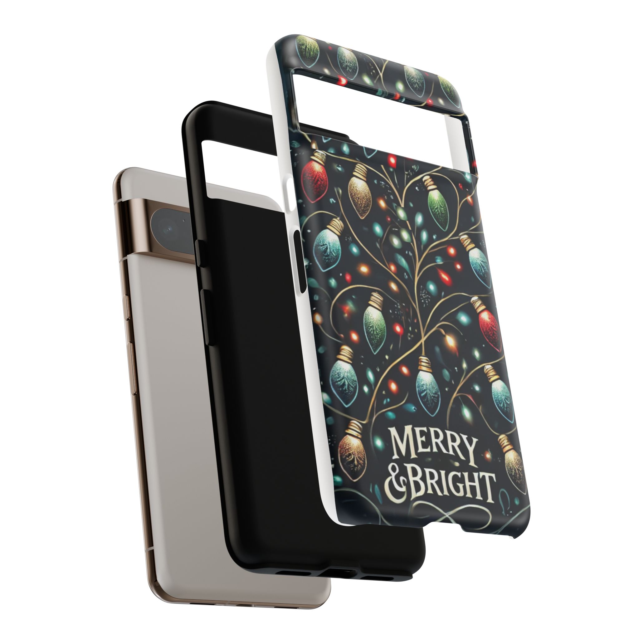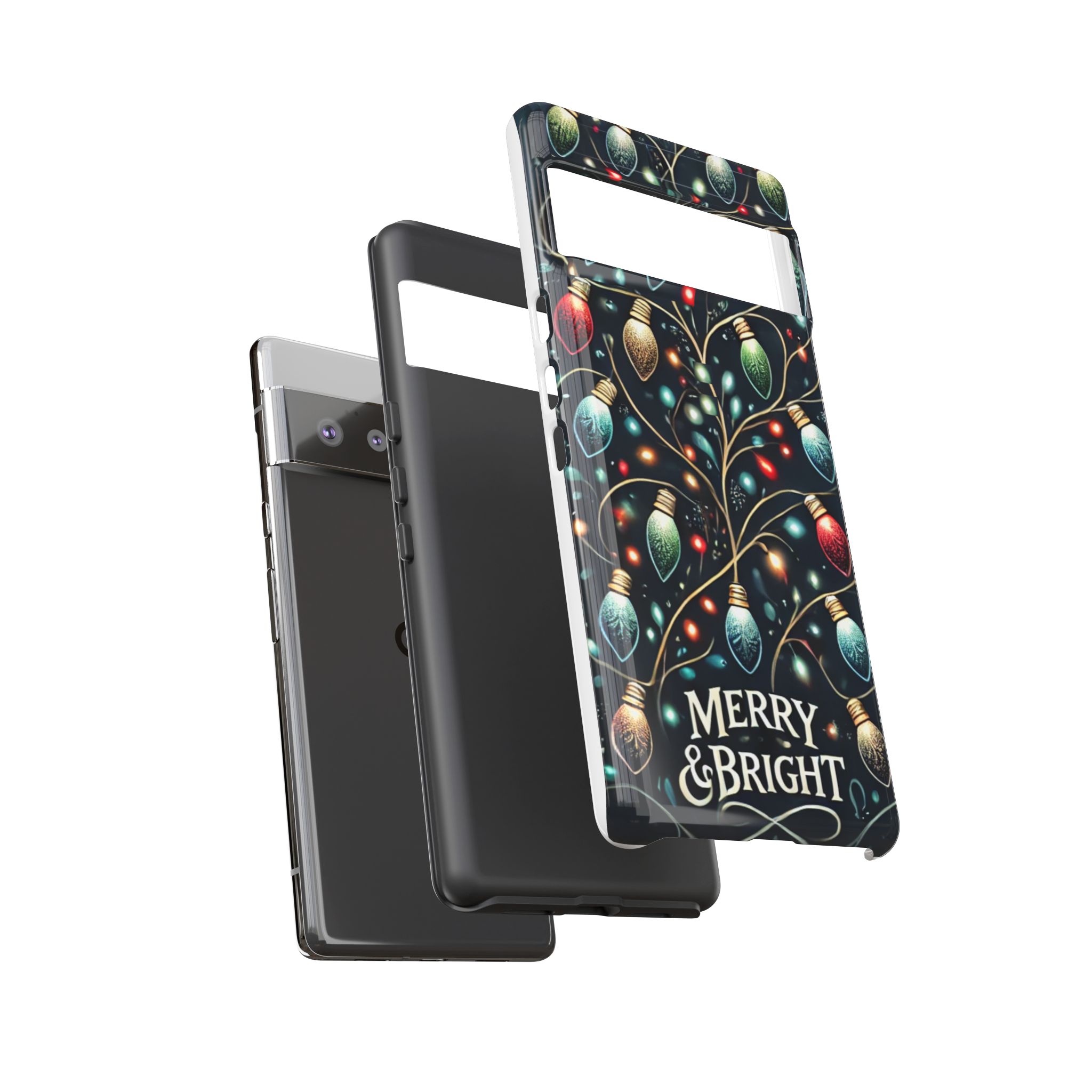 Vibrant Festive Lights Phone Cover featuring a colorful Christmas lights pattern on a dark background with a twinkling effect, adding a touch of holiday sparkle. Made of durable and impact-resistant materials, this phone case provides excellent protection against drops and tears. Ideal for adults looking to add a festive touch to their phone during the holiday season.