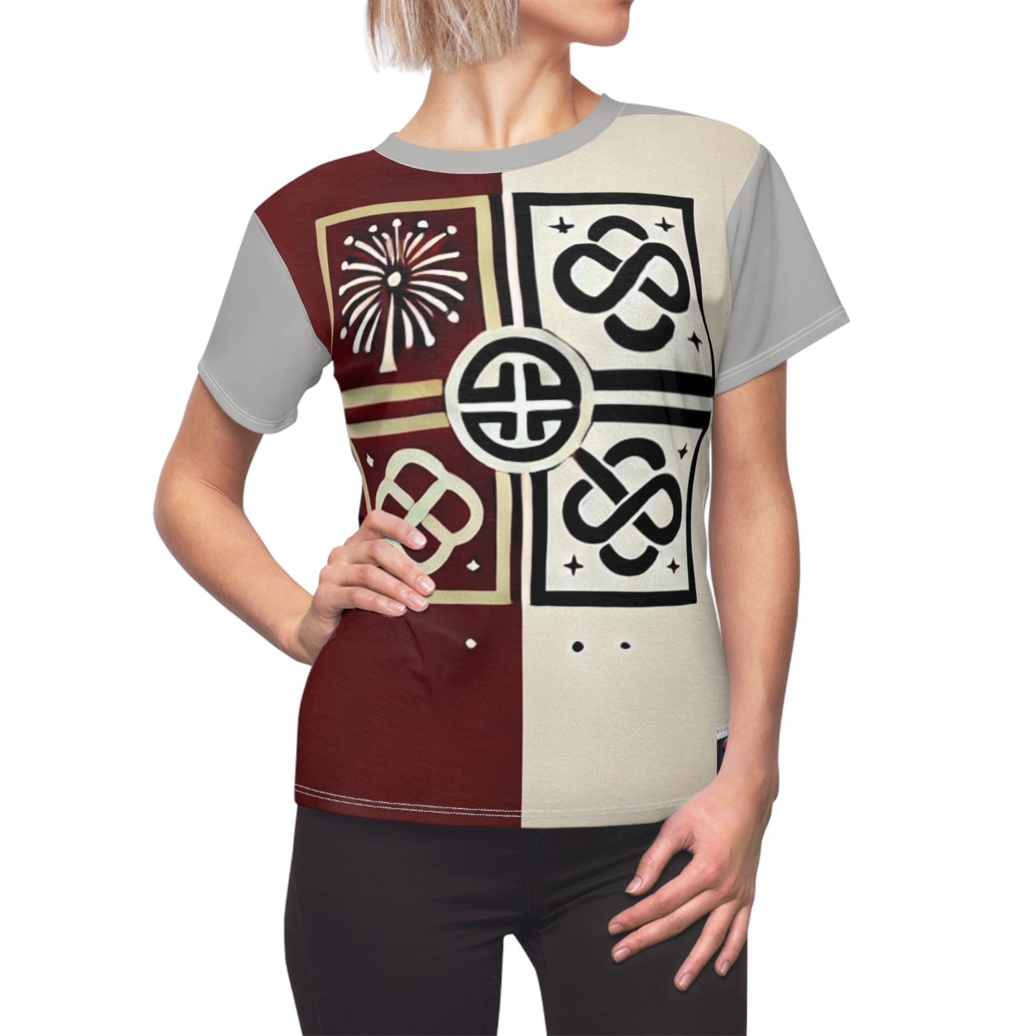 Celebrate the Lunar New Year with this elegantly designed tee shirt that beautifully captures the essence of both tradition and contemporary style. The front of the shirt is a vivid canvas of cultural symbolism, featuring modern abstract art mixed with traditional Chinese elements, all rendered in a palette of red and gold to symbolize prosperity and good fortune. Perfect for those looking to add a touch of cultural celebration to their wardrobe during Lunar New Year.