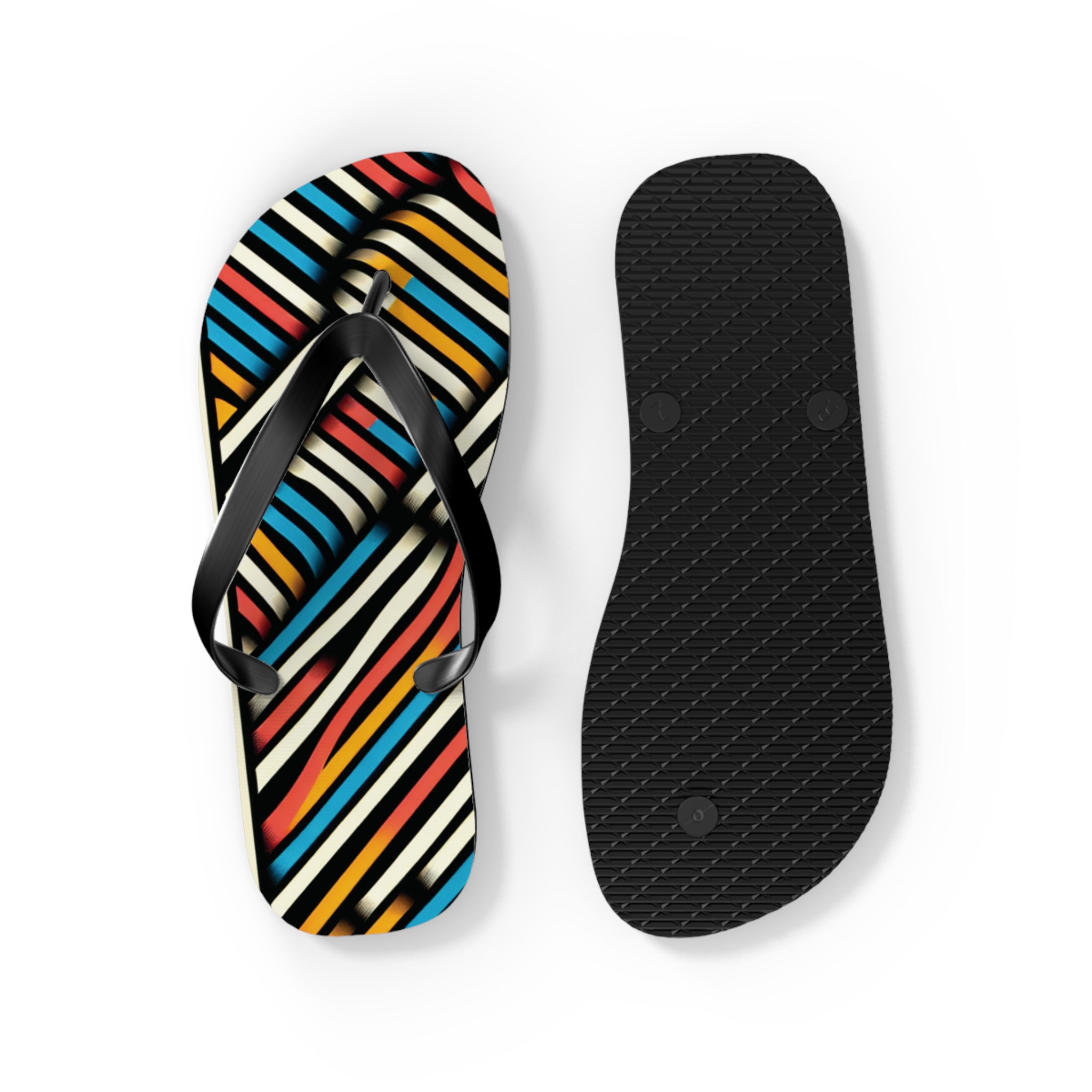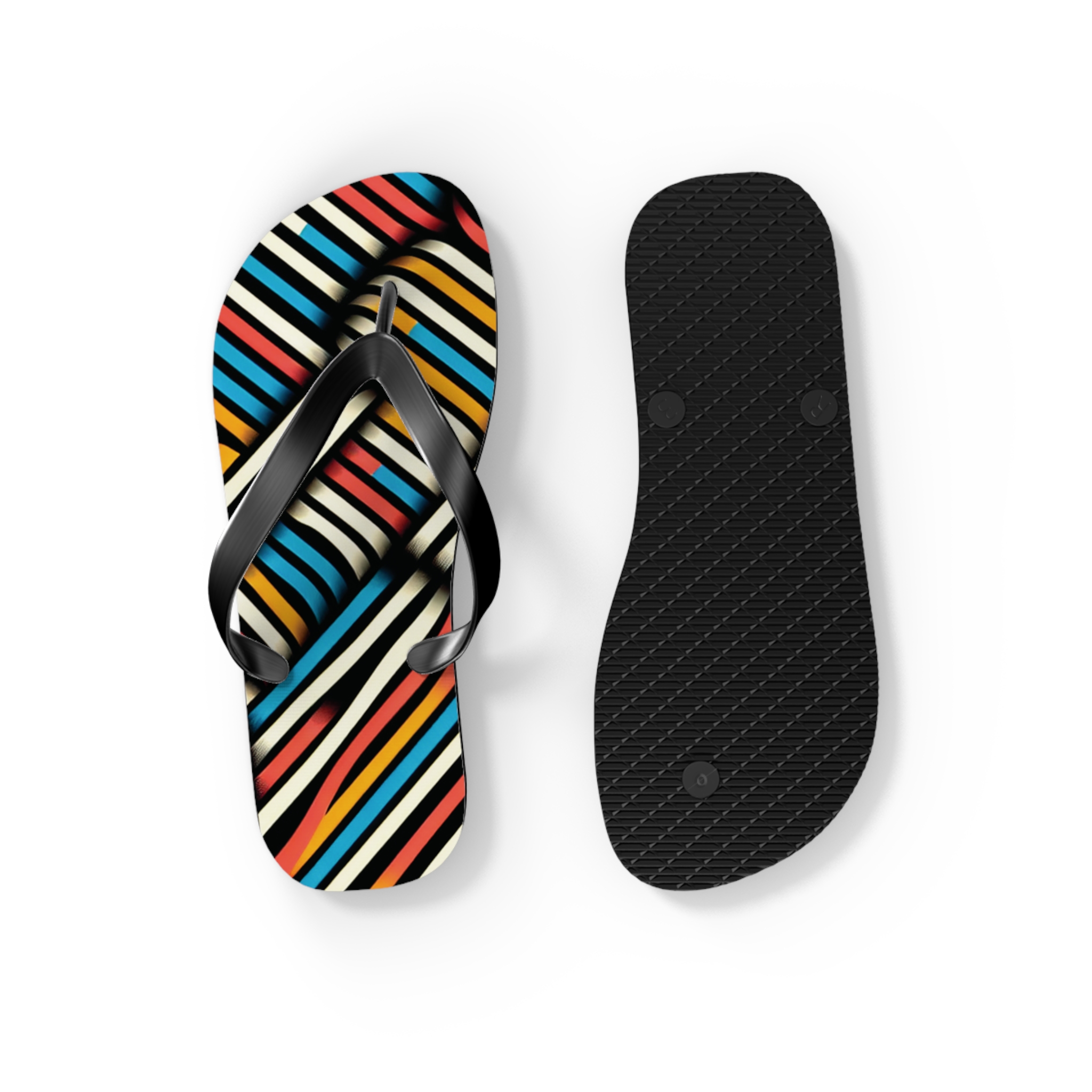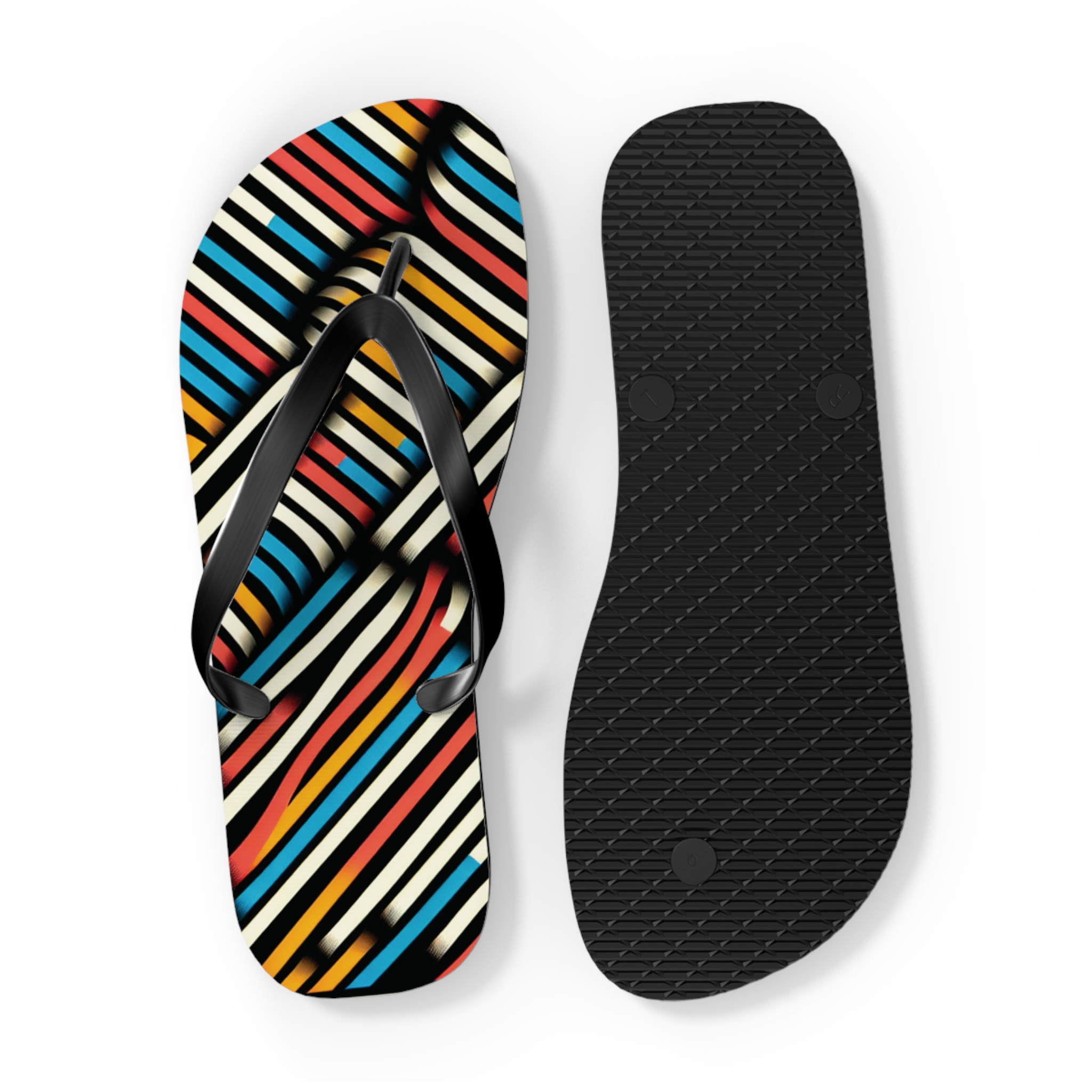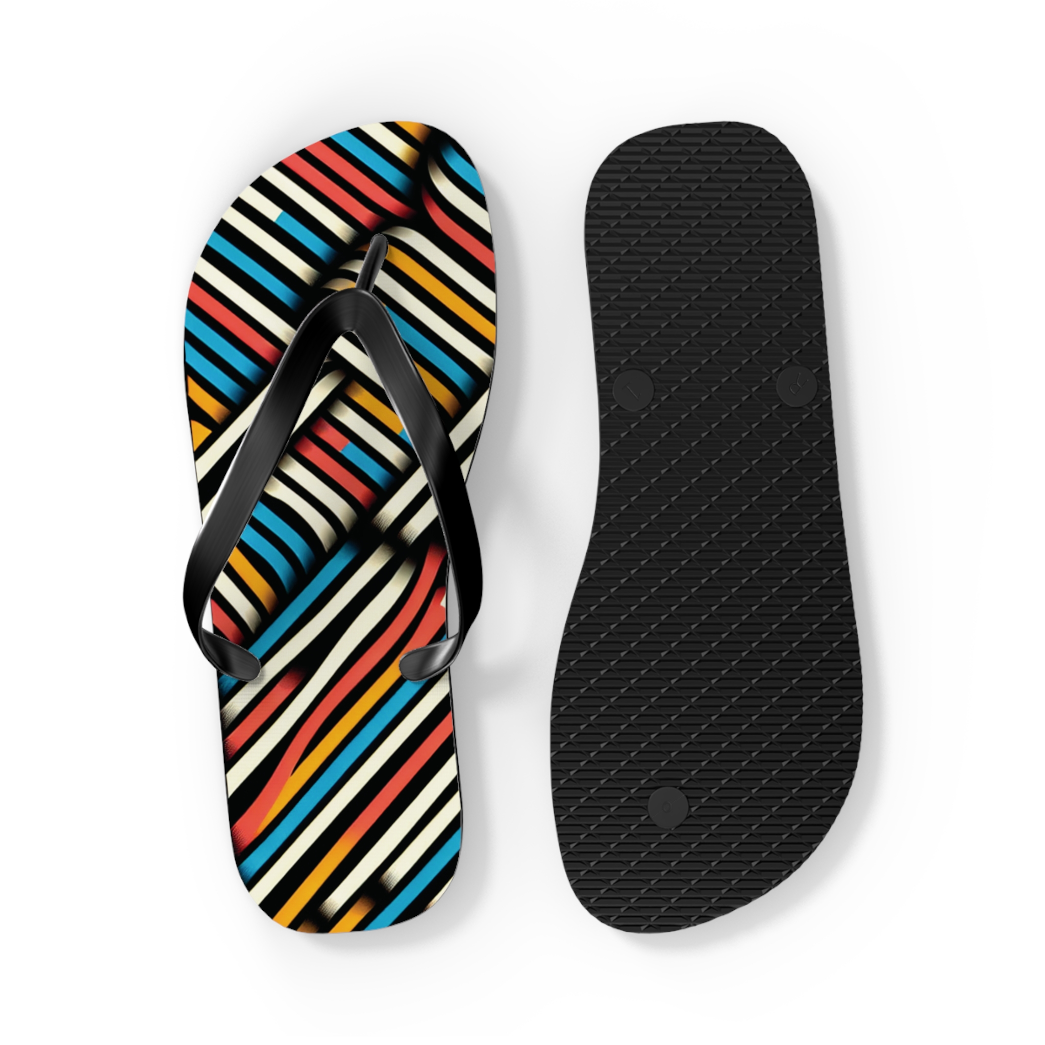 Step into style with these Vibrant Striped Flip-Flops, designed for those who love bold patterns and effortless comfort. Featuring a striking diagonal stripe design in a mix of colours, these flip-flops bring energy and flair to any casual outfit. With an easy slip-on design, a cushioned footbed, and top-tier printing fidelity, these flip flops are a guaranteed summer hit.