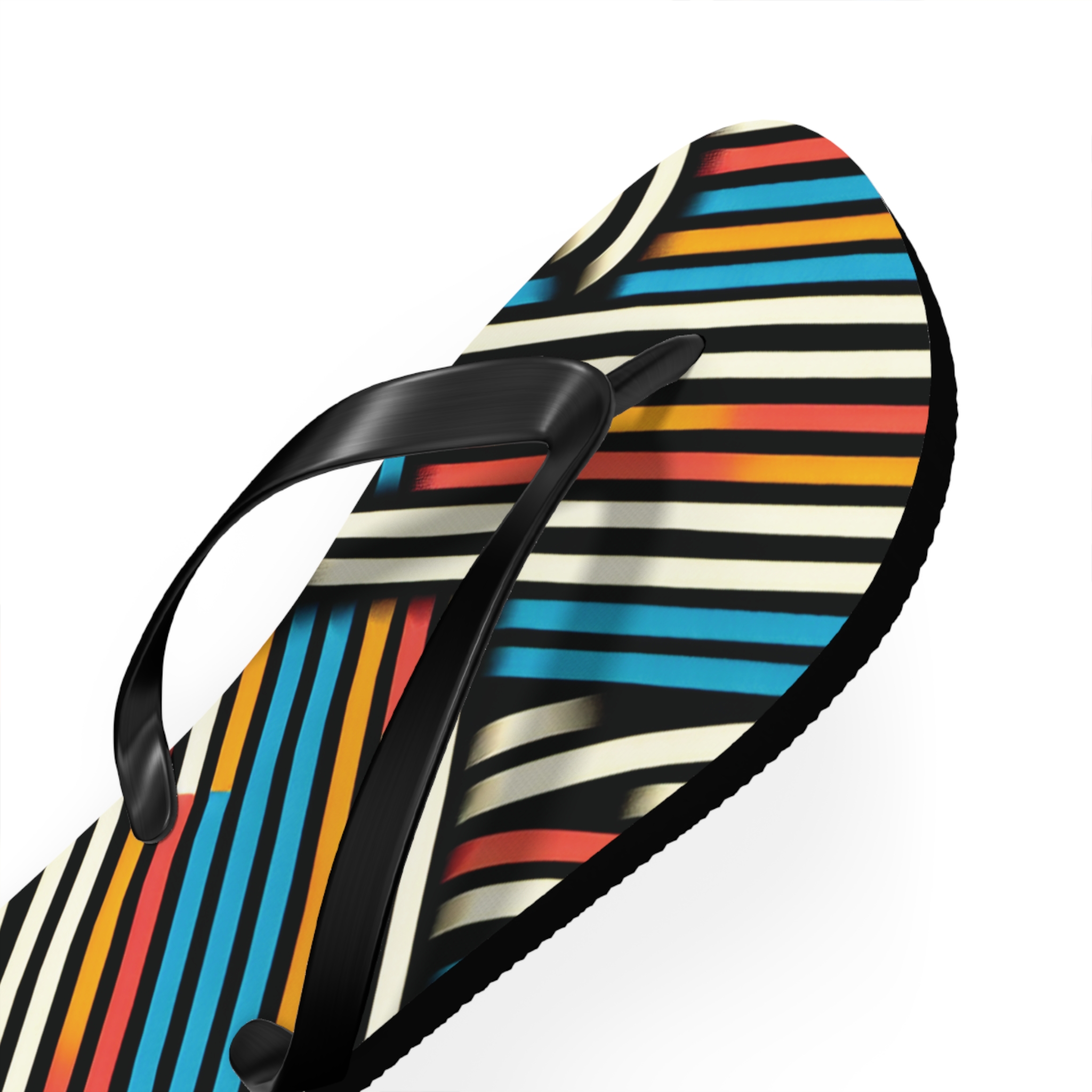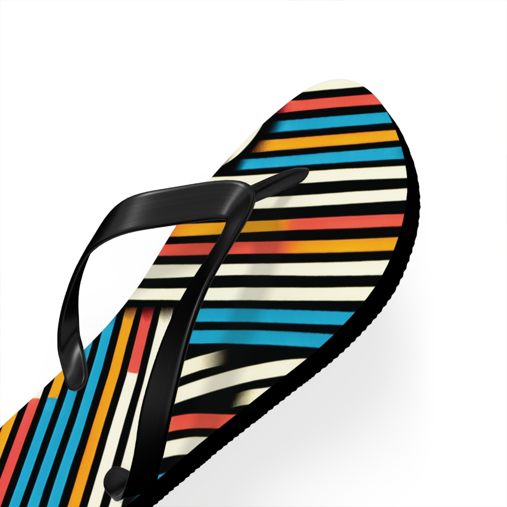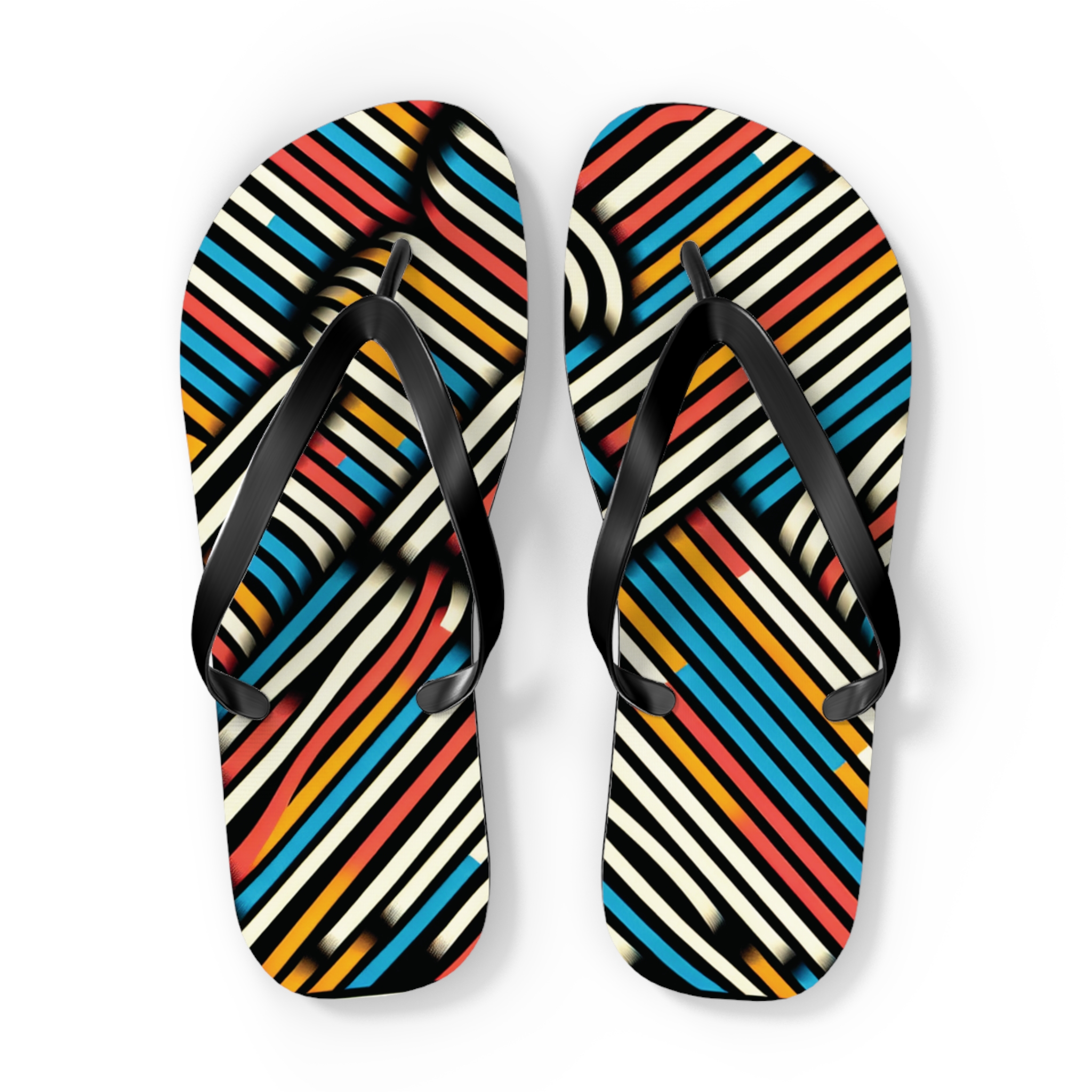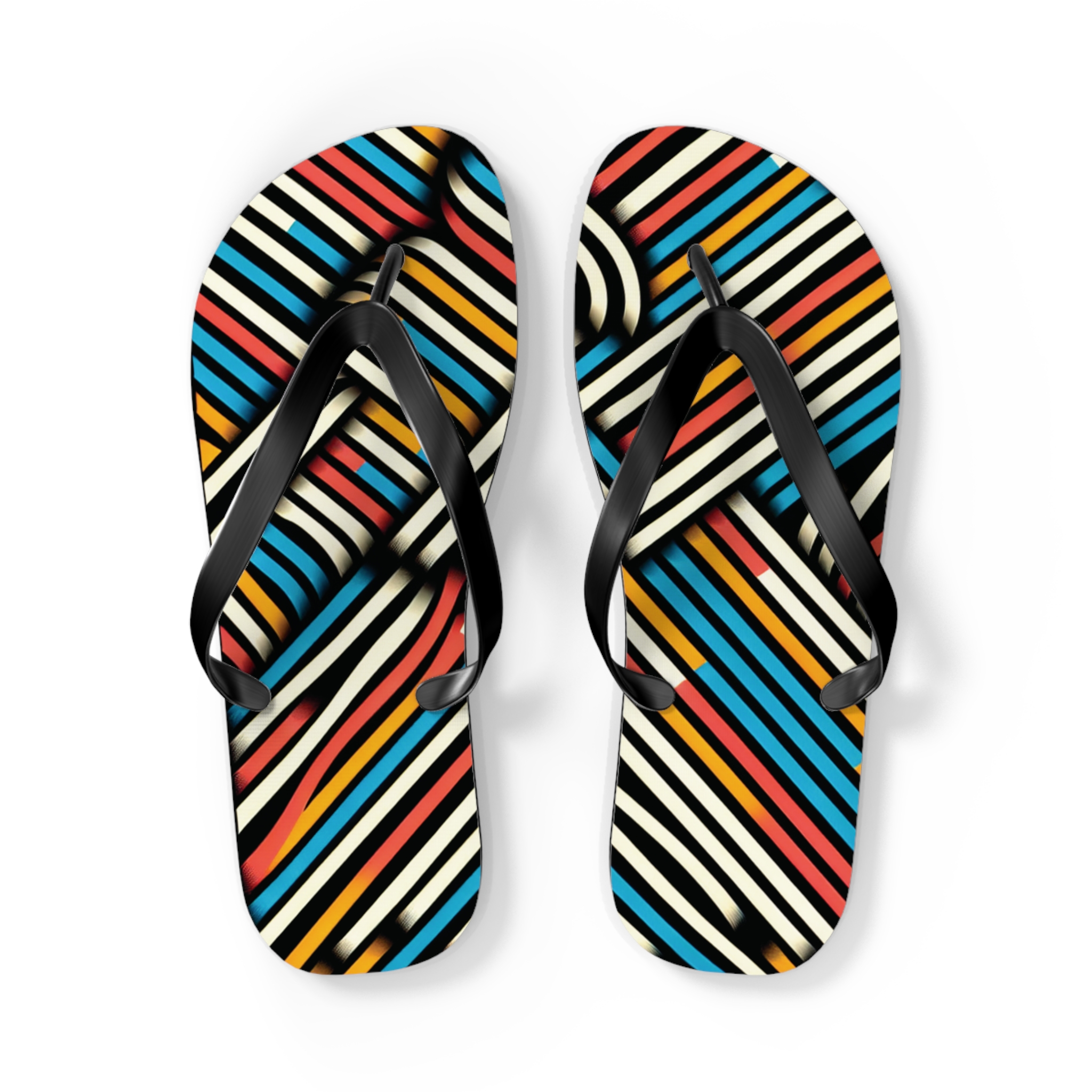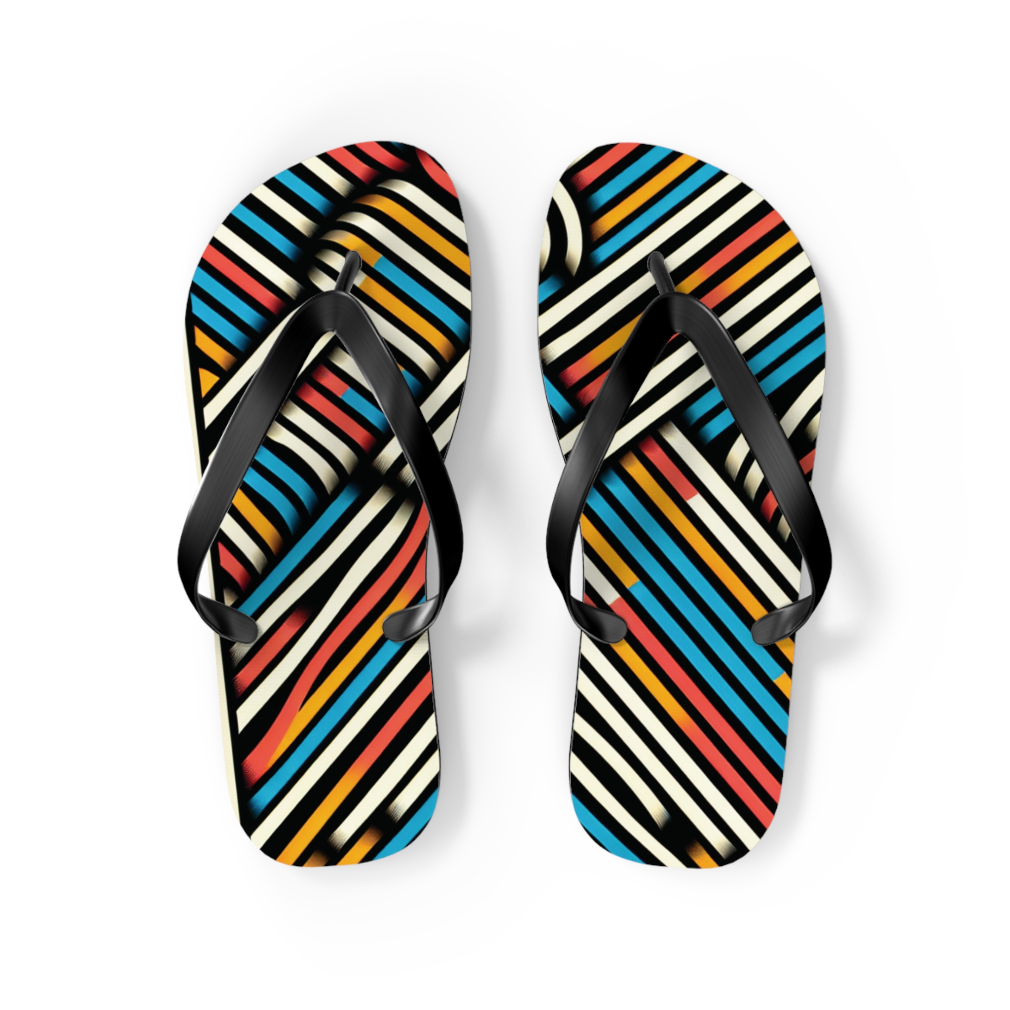 Step into style with these Vibrant Striped Flip-Flops, designed for those who love bold patterns and effortless comfort. Featuring a striking diagonal stripe design in a mix of colours, these flip-flops bring energy and flair to any casual outfit. With an easy slip-on design, a cushioned footbed, and top-tier printing fidelity, these flip flops are a guaranteed summer hit.