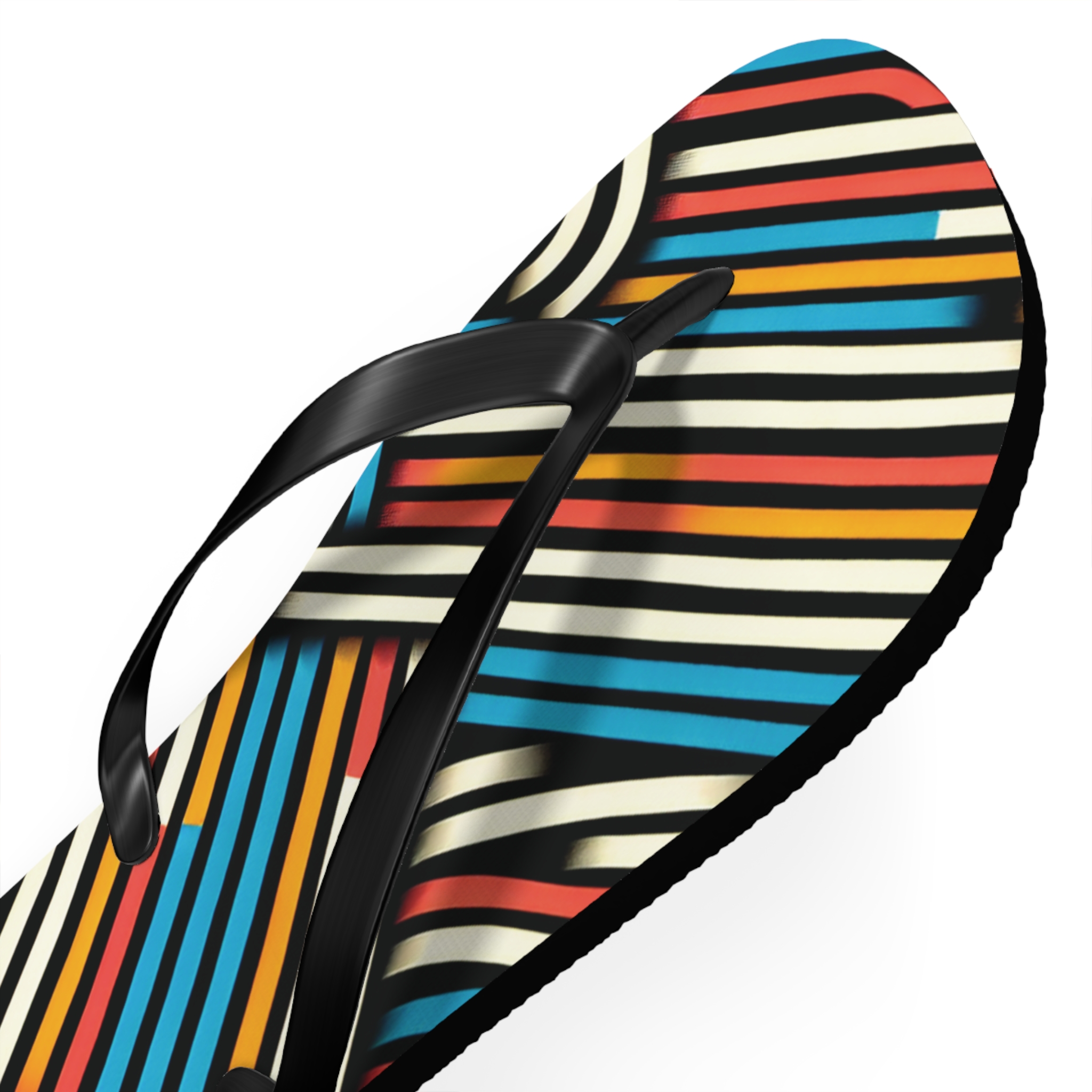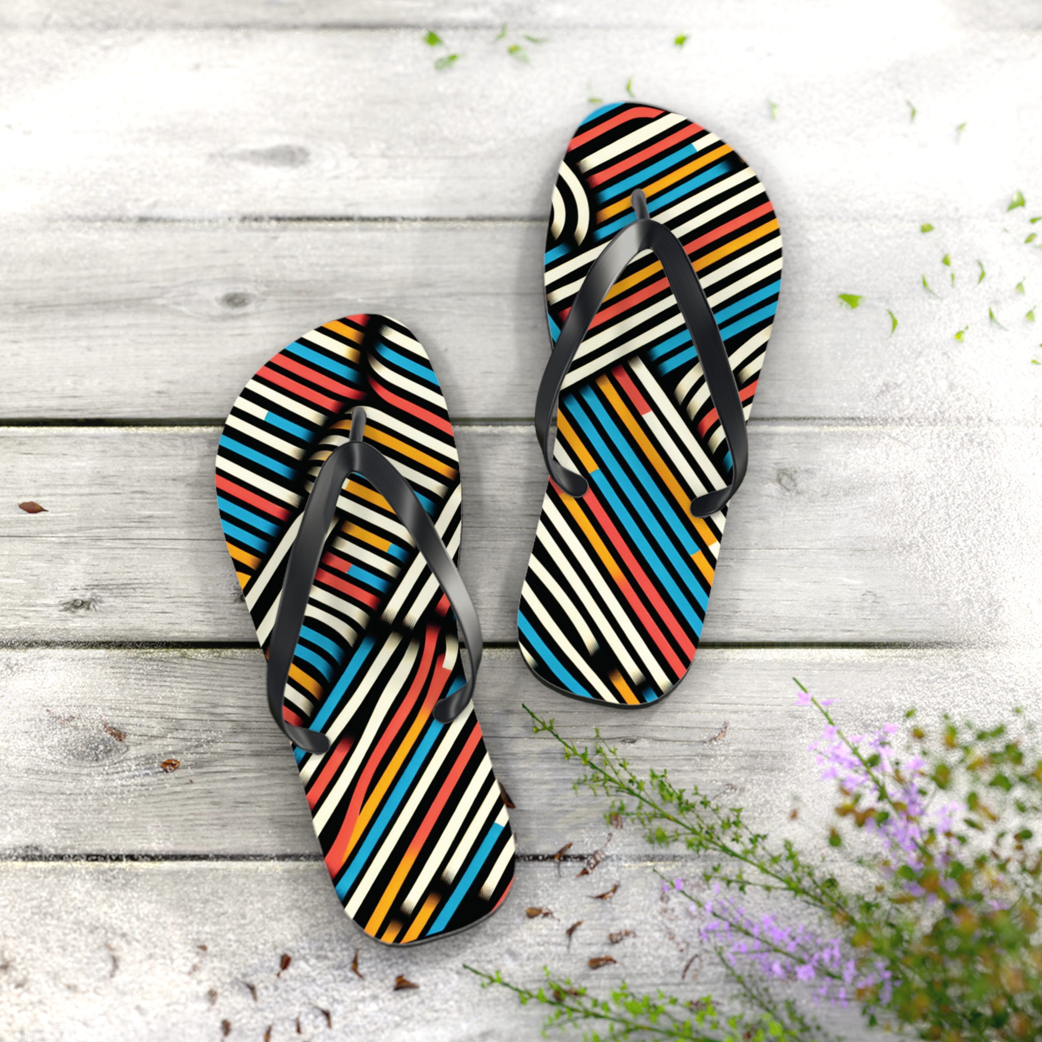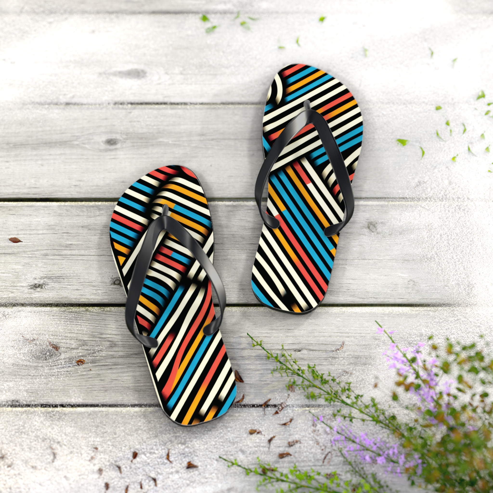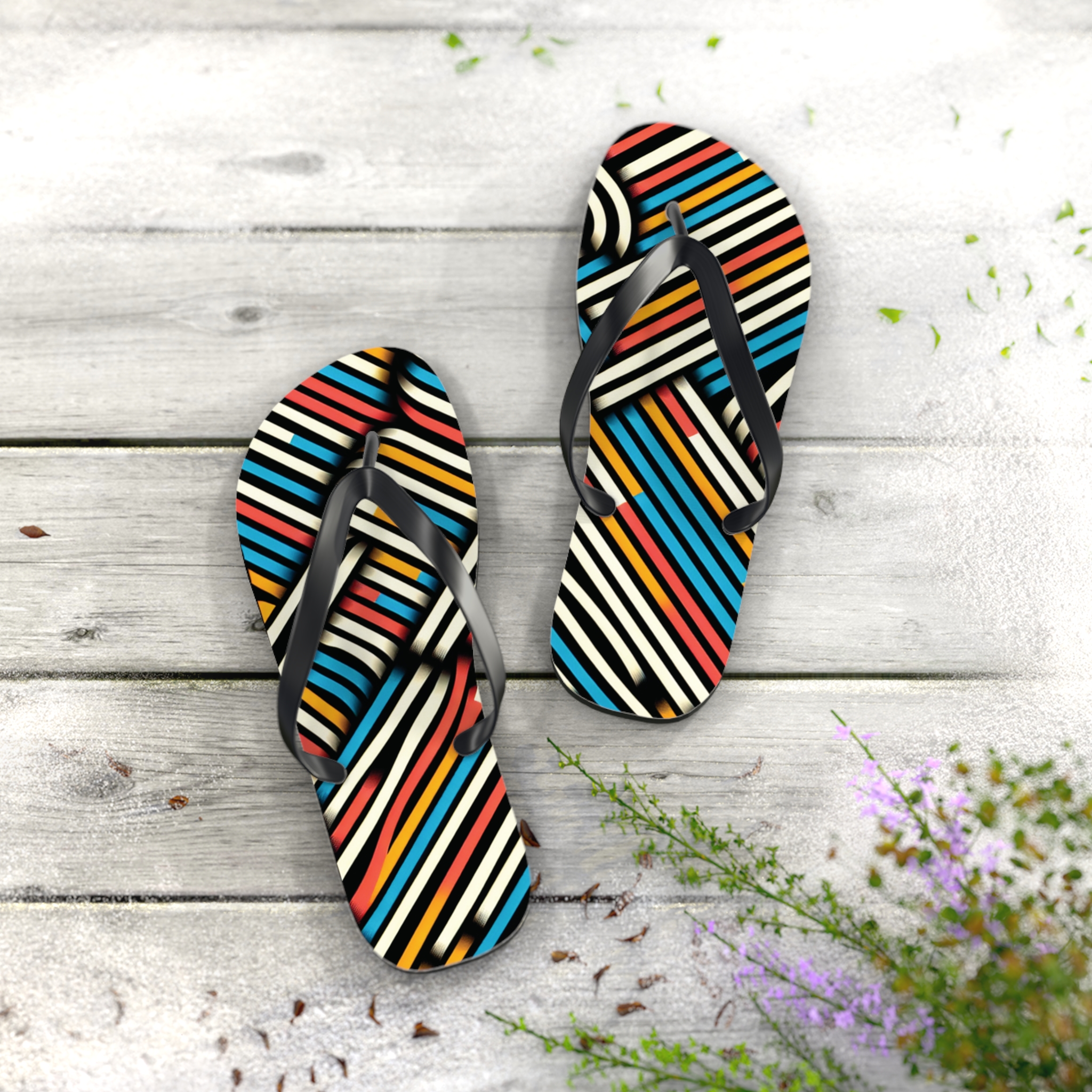 Step into style with these Vibrant Striped Flip-Flops, designed for those who love bold patterns and effortless comfort. Featuring a striking diagonal stripe design in a mix of colours, these flip-flops bring energy and flair to any casual outfit. With an easy slip-on design, a cushioned footbed, and top-tier printing fidelity, these flip flops are a guaranteed summer hit.