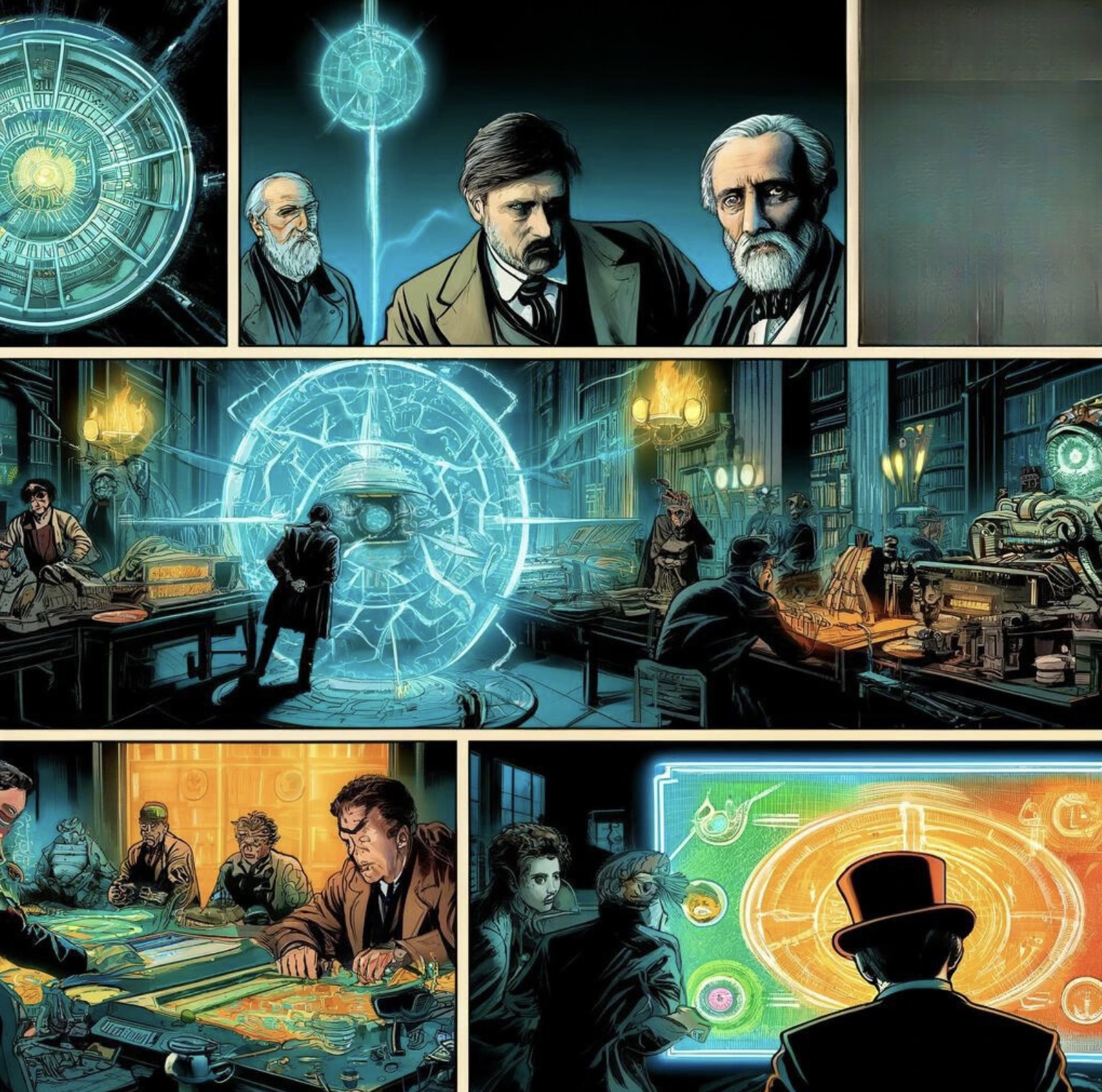And so, within the dimly lit confines of the ancient library, H.G. Wells and his newfound companions found not just a plan, but a family forged in the crucible of their shared struggle. As the candlelight flickered against the gathering shadows, their silhouettes cast long against the stacks of books, a silent vow was made—a commitment to each other and to the future they dared to dream was still possible.